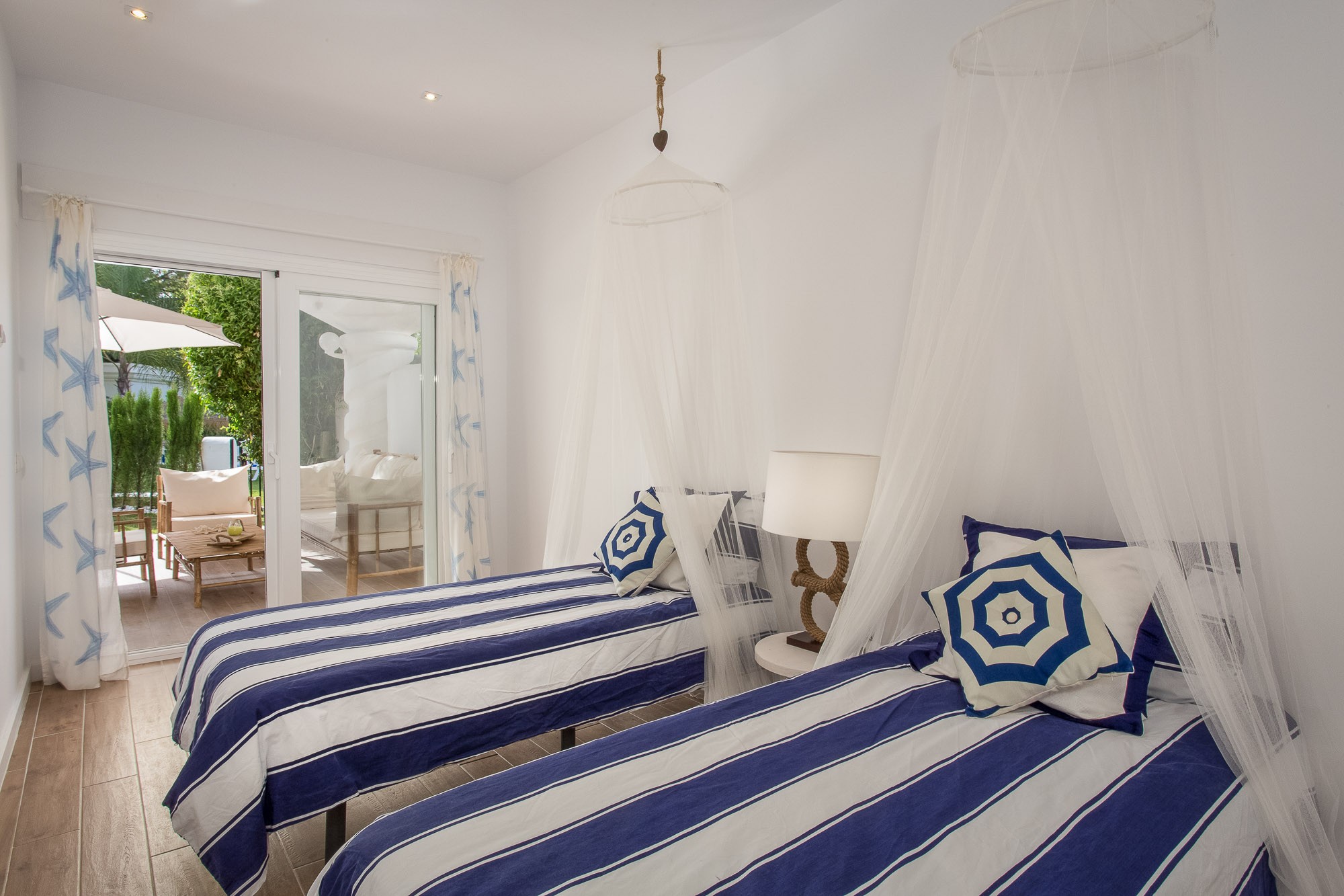 A short stroll will take you directly onto an unspoiled and uncrowded beach just 400m away, then the upmarket beach club La Cabane is conveniently close by, around 600m walk (partly along the sand). You also have another Spanish fish restaurant in the other direction, again around 600m away.