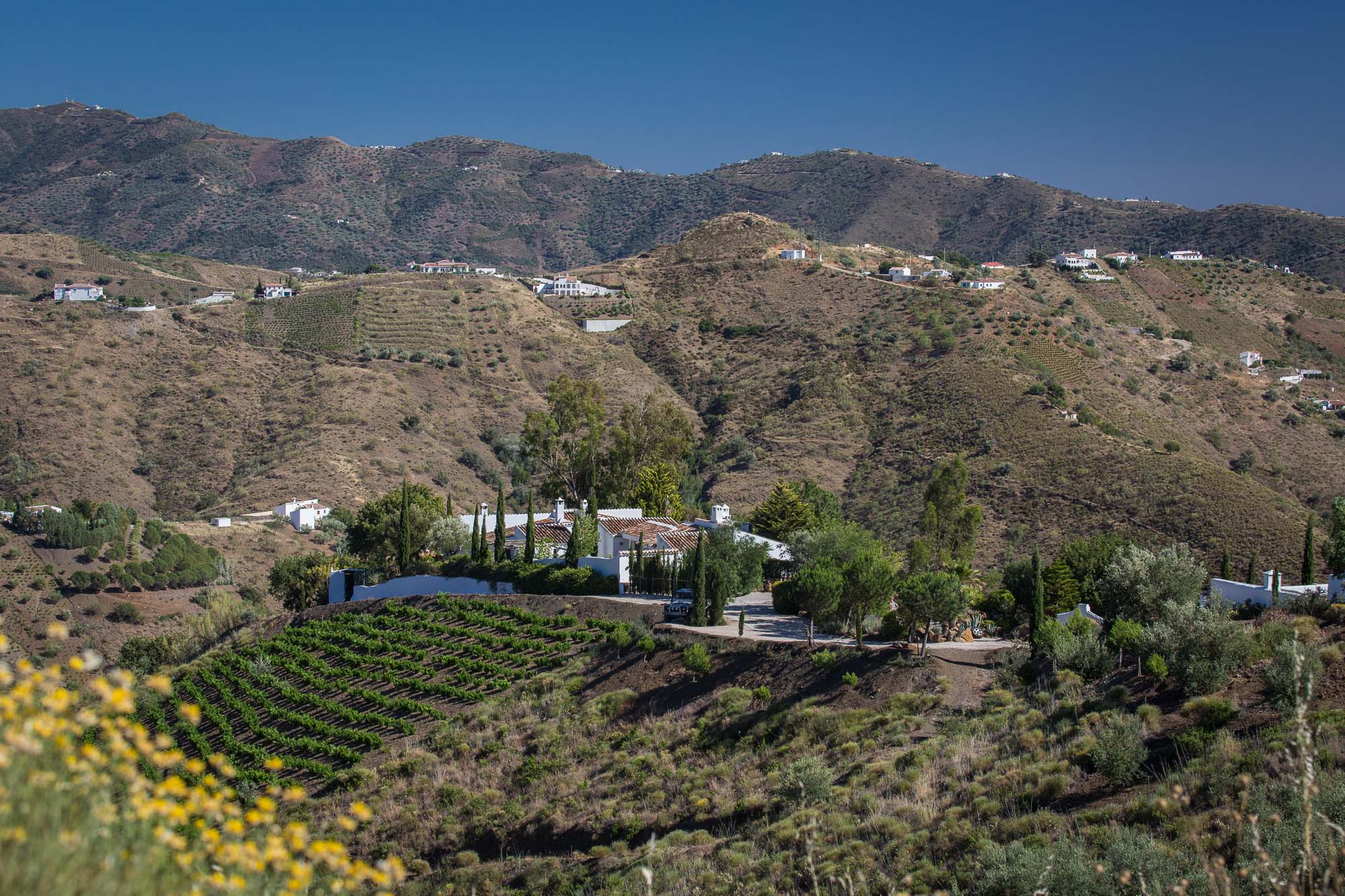 El Mirador Lodge is located inland above Lake Vinuela, close to the charming white villages of Canillas de Aceituno and Alcaucin in one of Andalucia’s most unexplored yet accessible areas. This eastern part of Malaga province is known as the Axarquia and offers some breathtakingly spectacular landscapes whether it be turquoise sea and coastal coves or mountains reached by stunning, snaking mountain roads. This is real Spain.