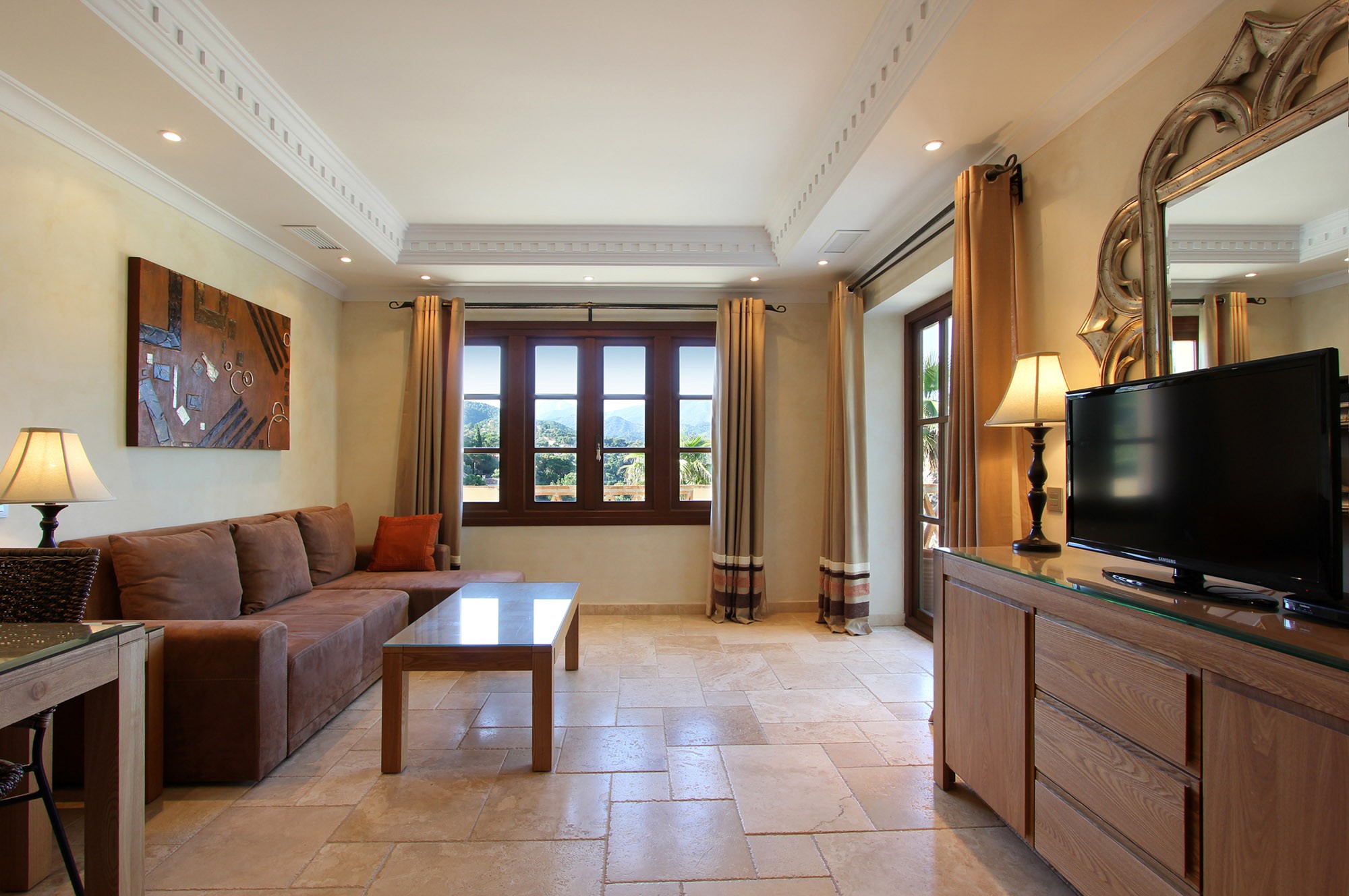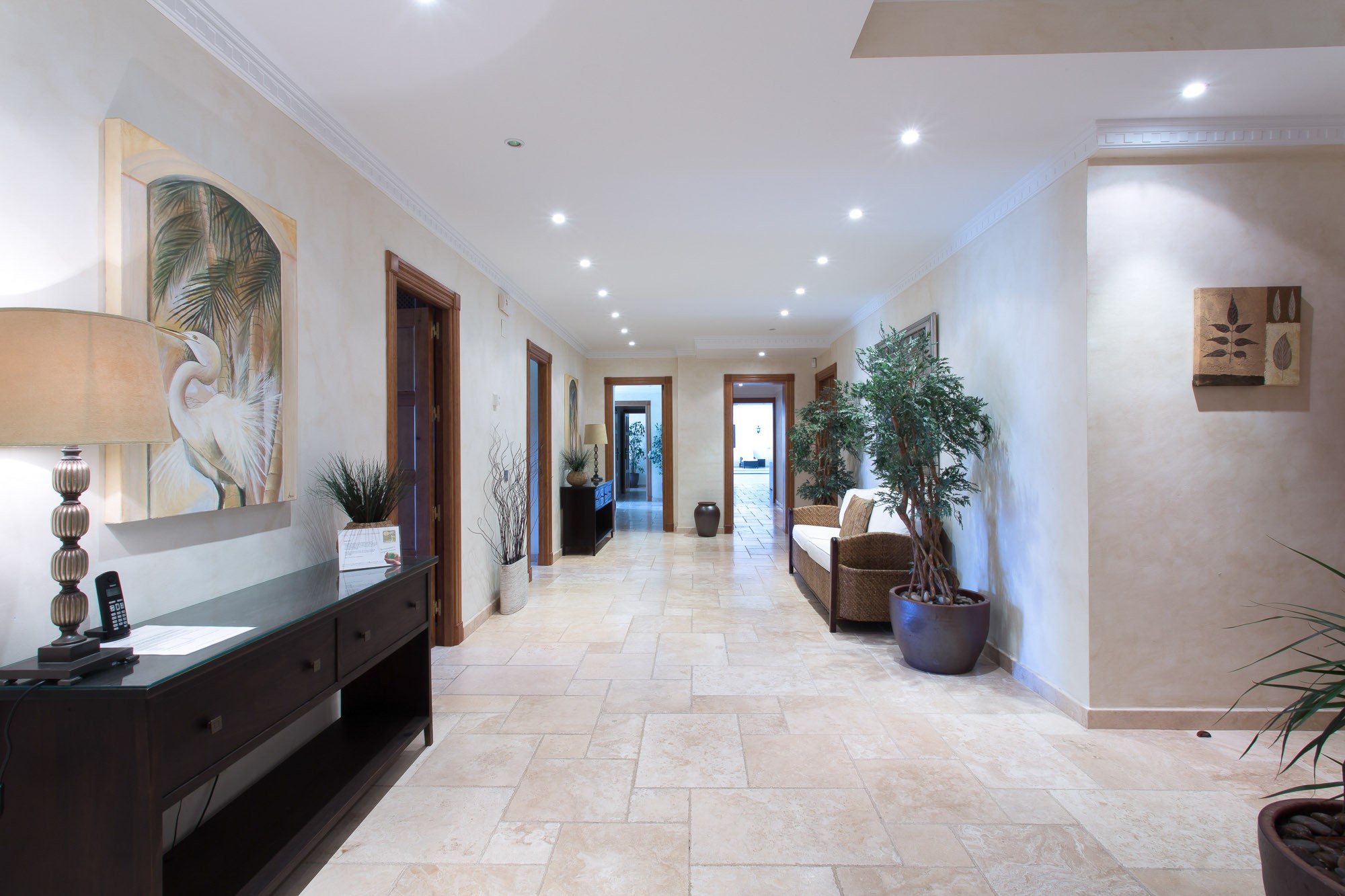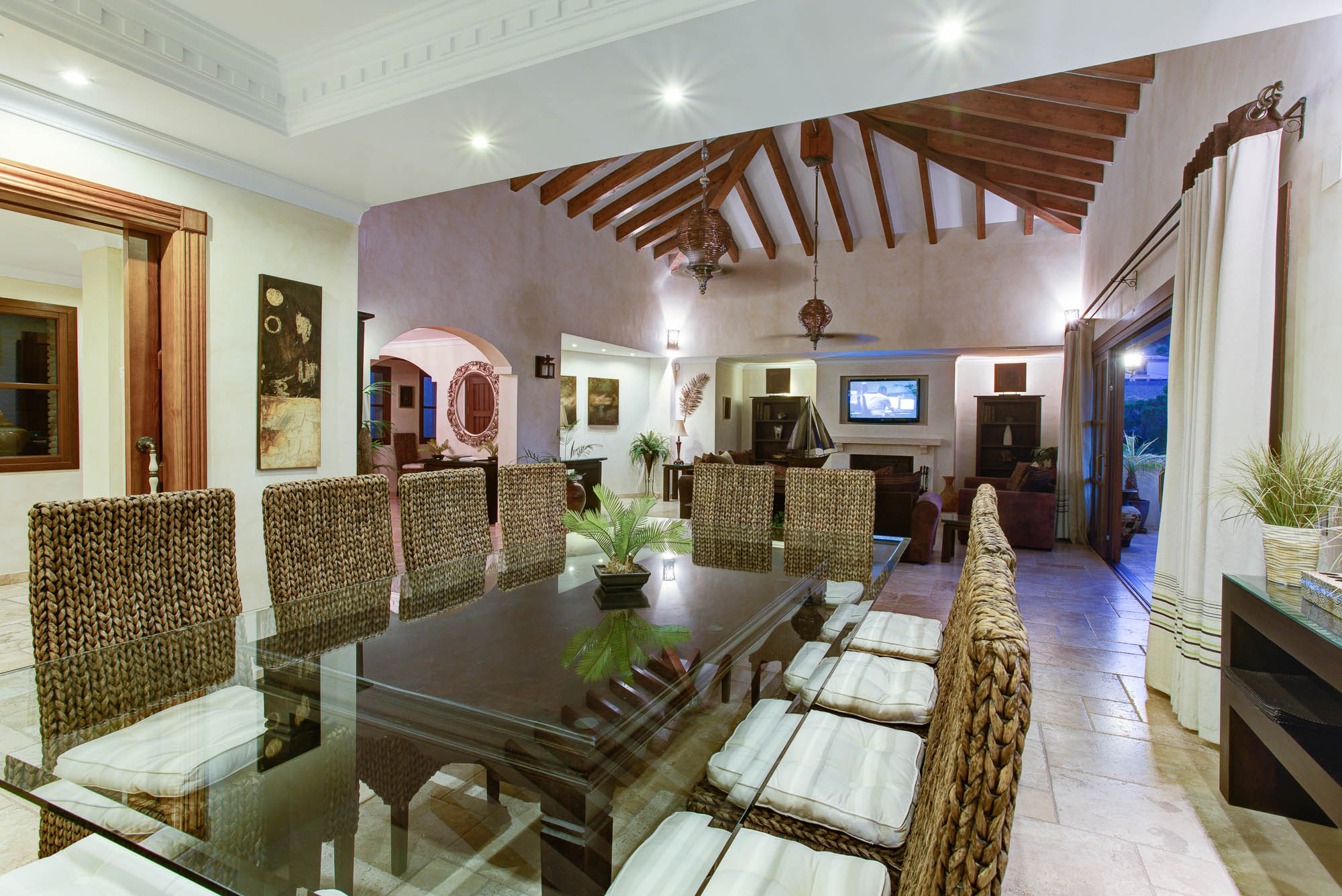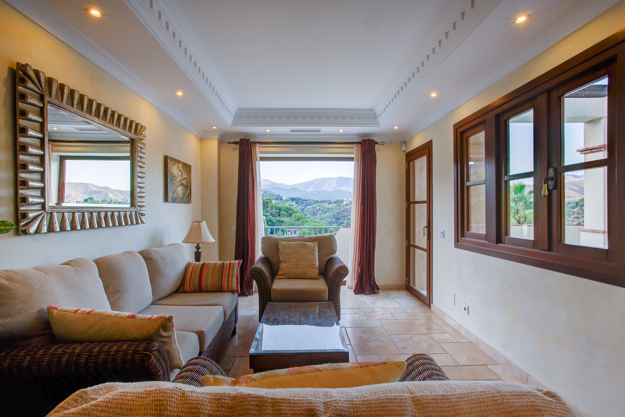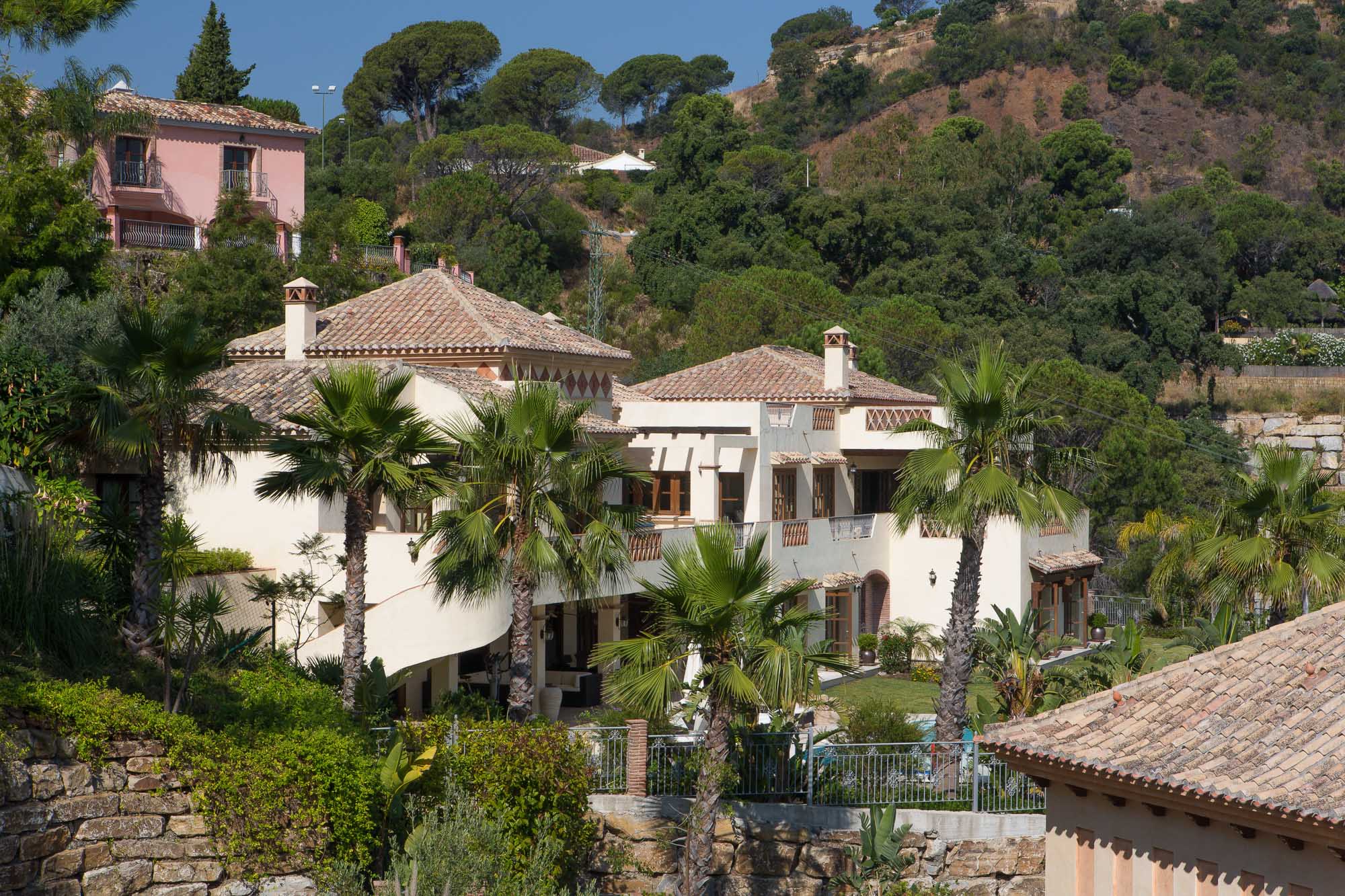 The standard is set by this ultra-luxury Spanish villa as soon as you walk through the huge 6m high entrance archway and into the house. The archway reveals a bright and airy living room which shows off a vaulted ceiling and far-reaching views across the valley.