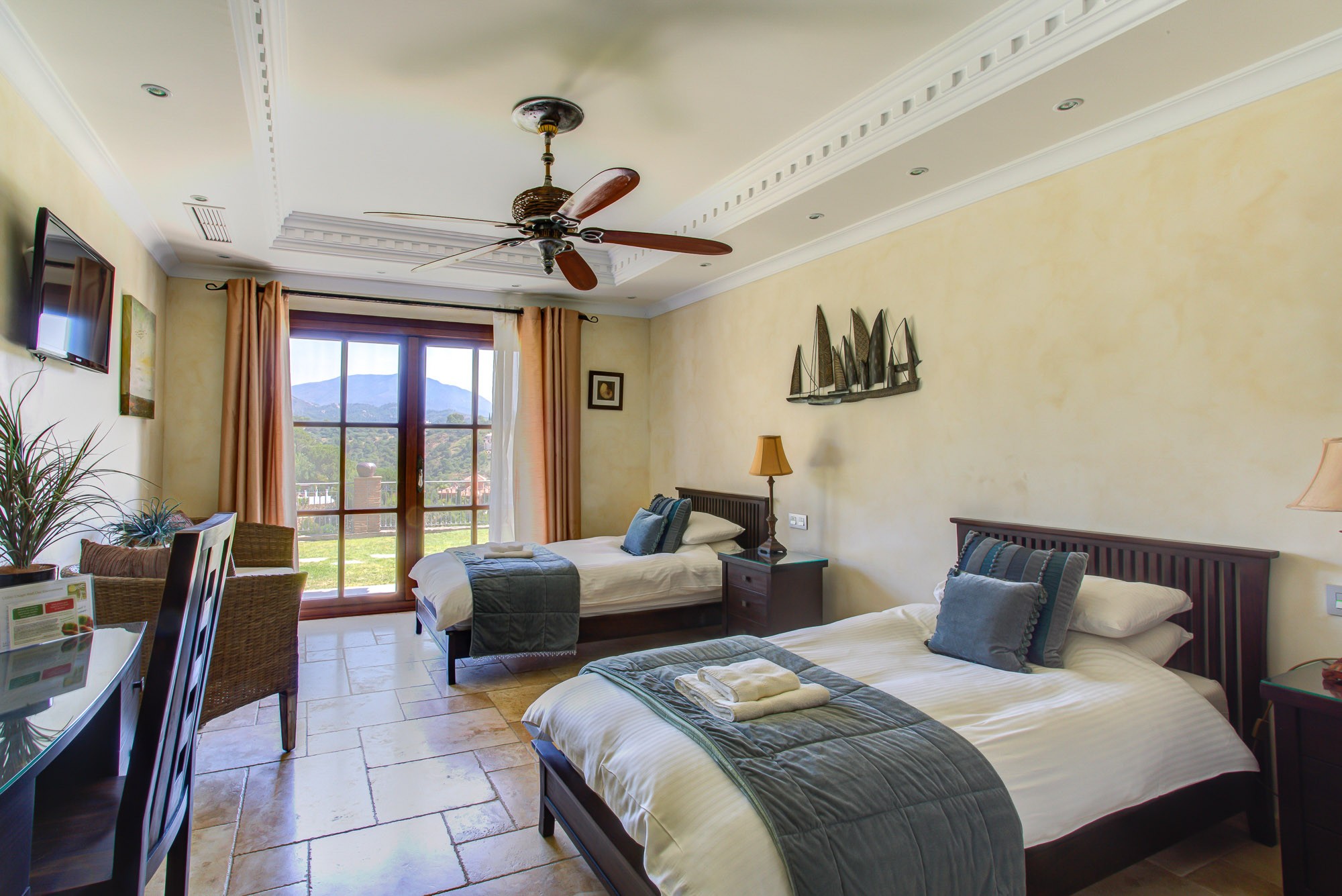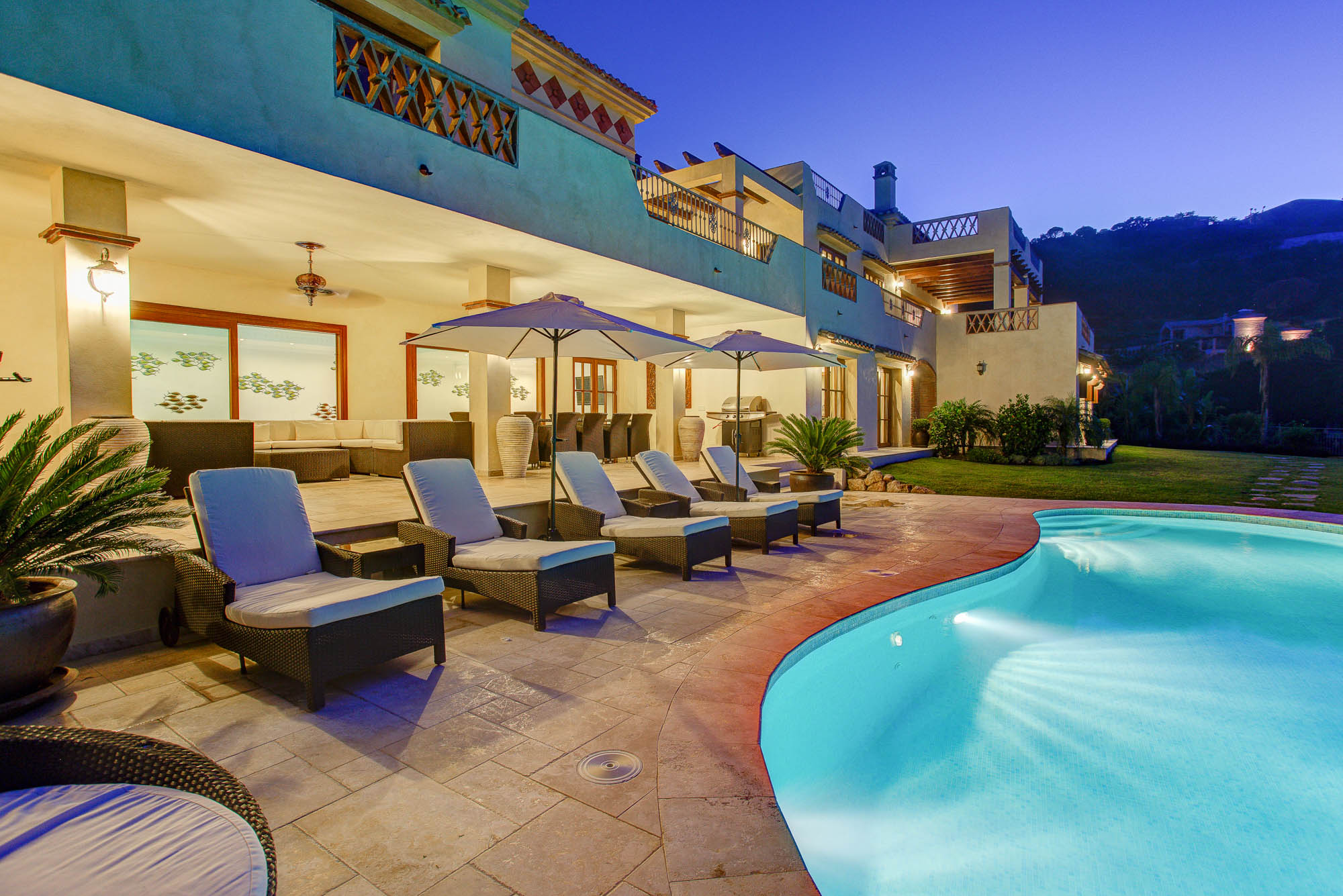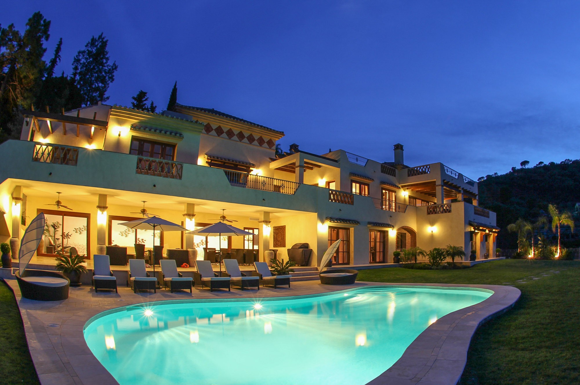 If you are organising a celebration there is room in the garden of Villa 3 next door for for a small marquee, as well as a Hollywood cinema and indoor disco, and by booking all three villas you can have space to entertain 48 guests.