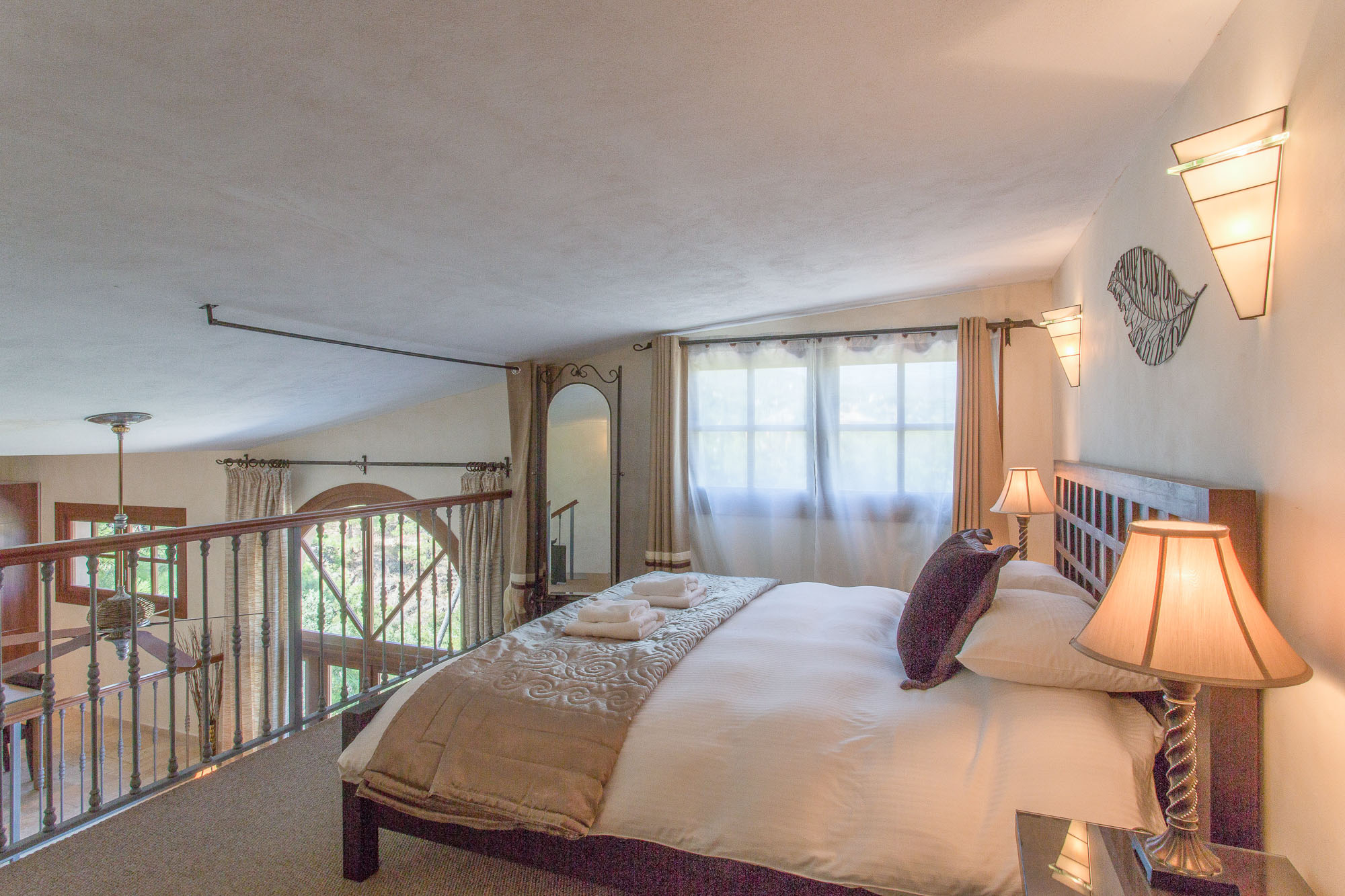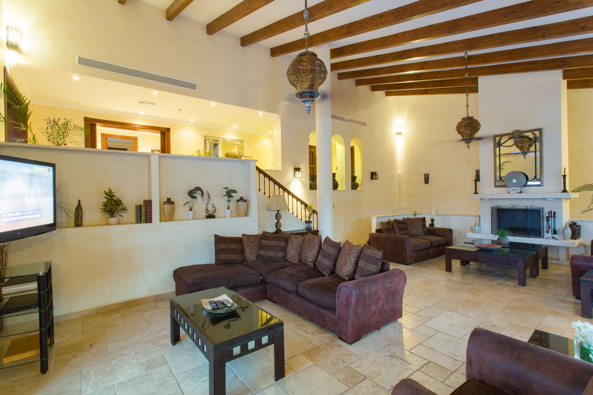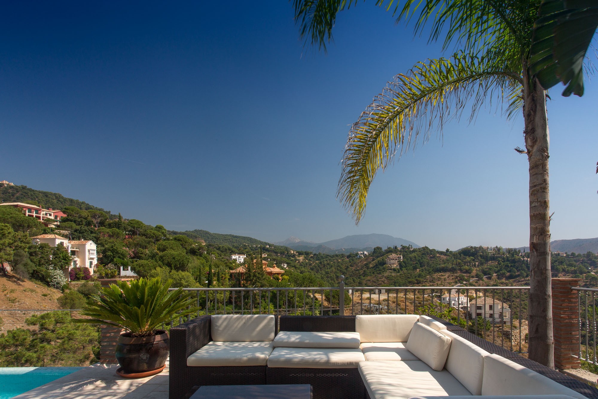 The quality of this villa will make an impact as soon as you walk through the huge antique front door and onto the stone walkway that forms a gallery above the main living room. With its 6m high ceiling and panoramic windows, the sense of space is magnificent, even at full capacity with 15 guests.