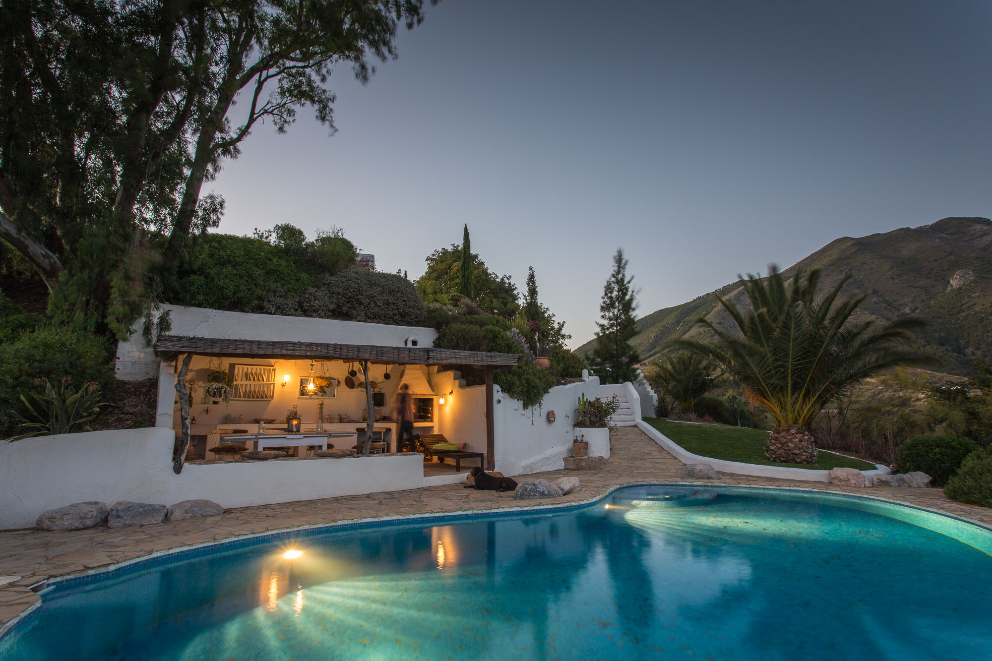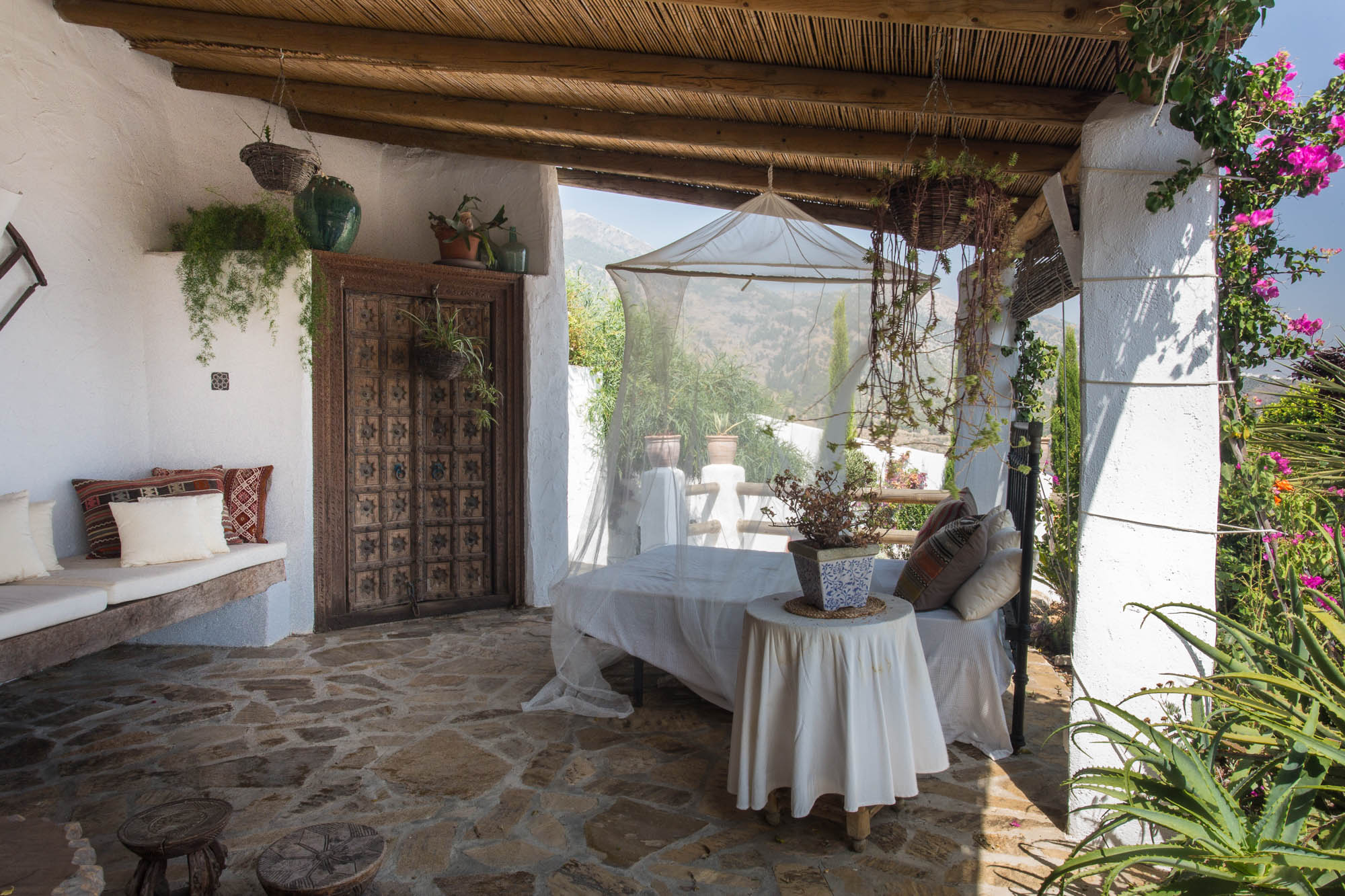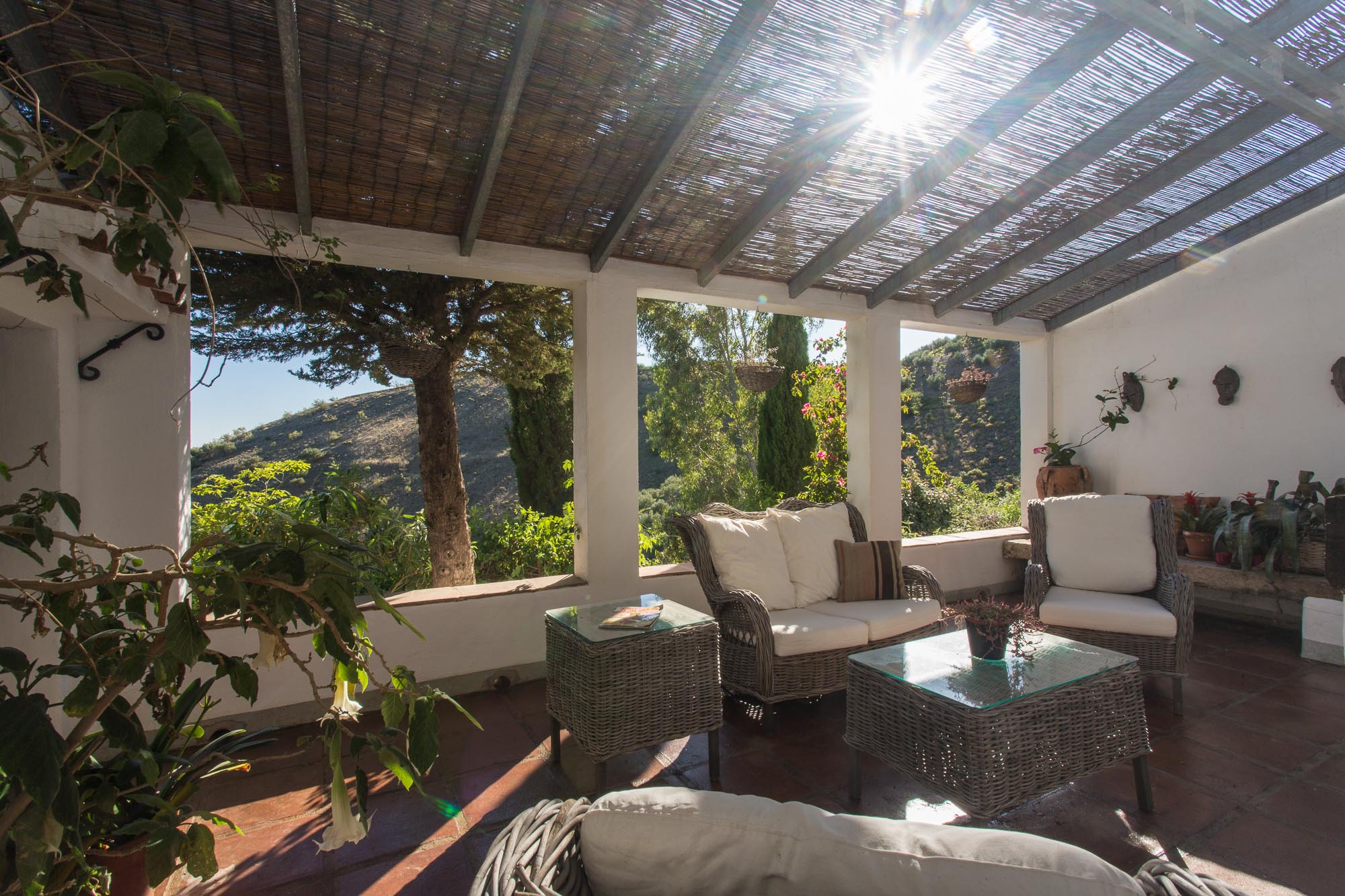 A short stroll up the lane to Casa Miravista and you will find a bright, open-plan living room with woodburner fire and mountain views, plus and an expansive patio complete with sunken seating area piled with cushions and an oversize hammock.