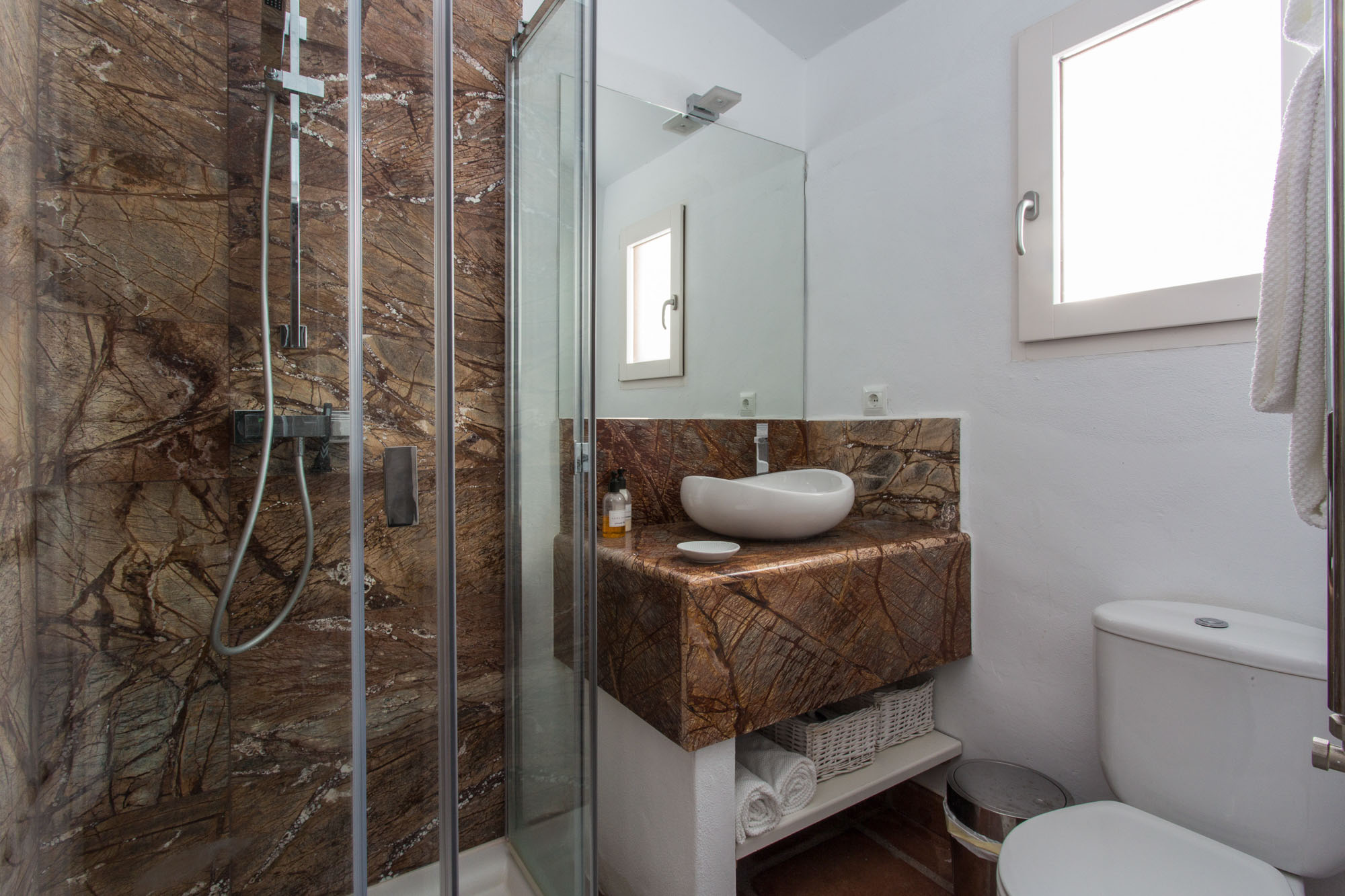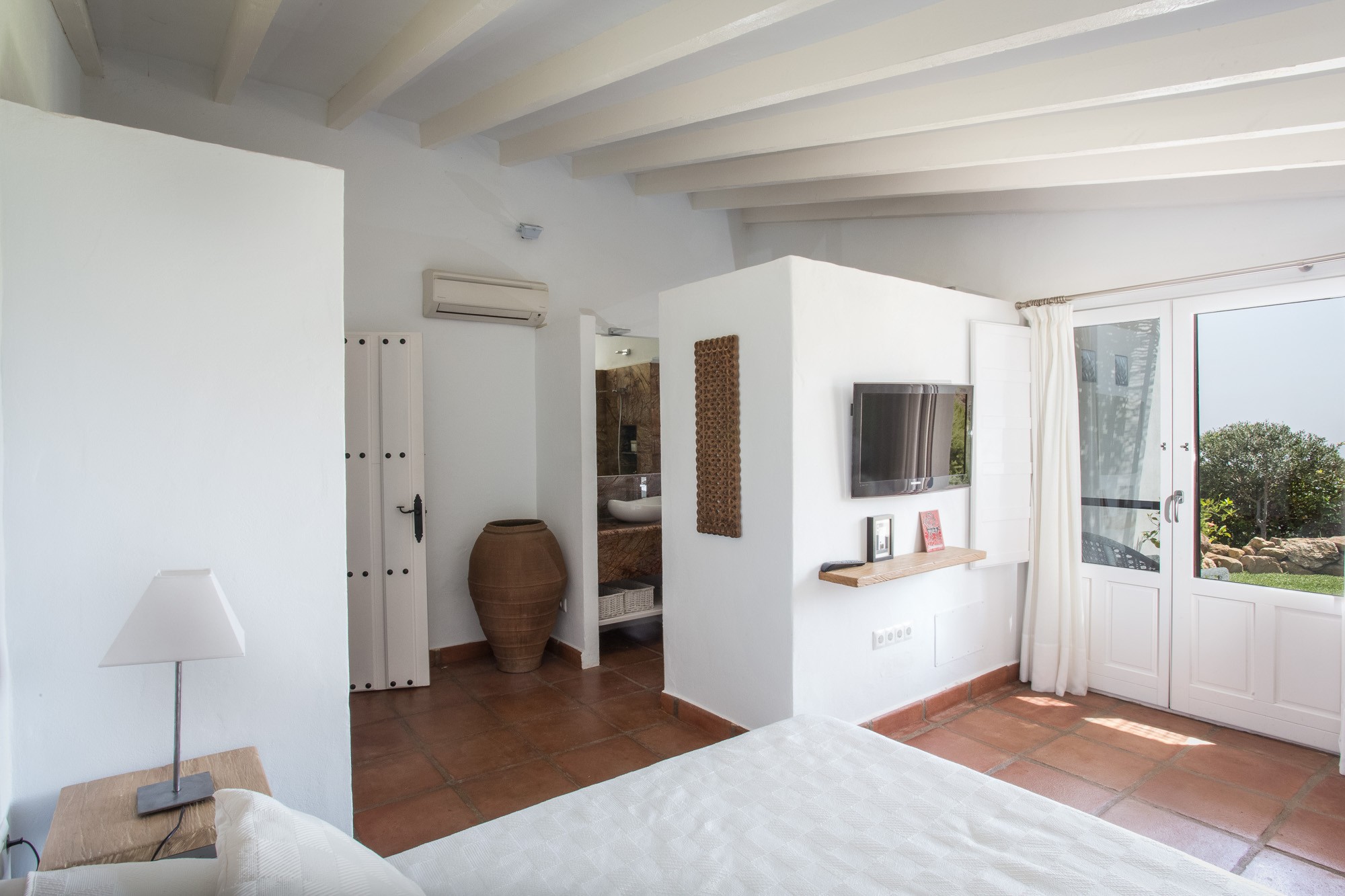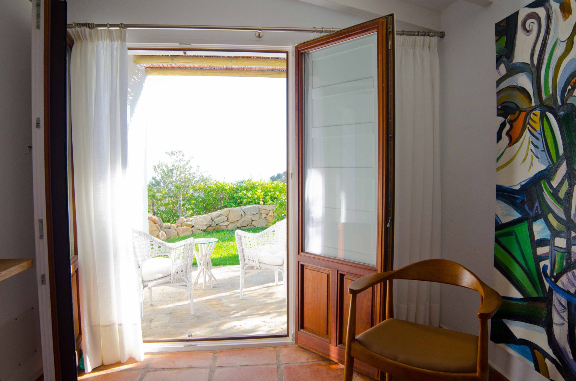 You’ll feel it as you motor up to the lodge, which opens onto a spacious courtyard and endless views, panoramas that tumble down mountainside, rolling through olive groves, vine covered hills and almond trees, before spilling into the Mediterranean.