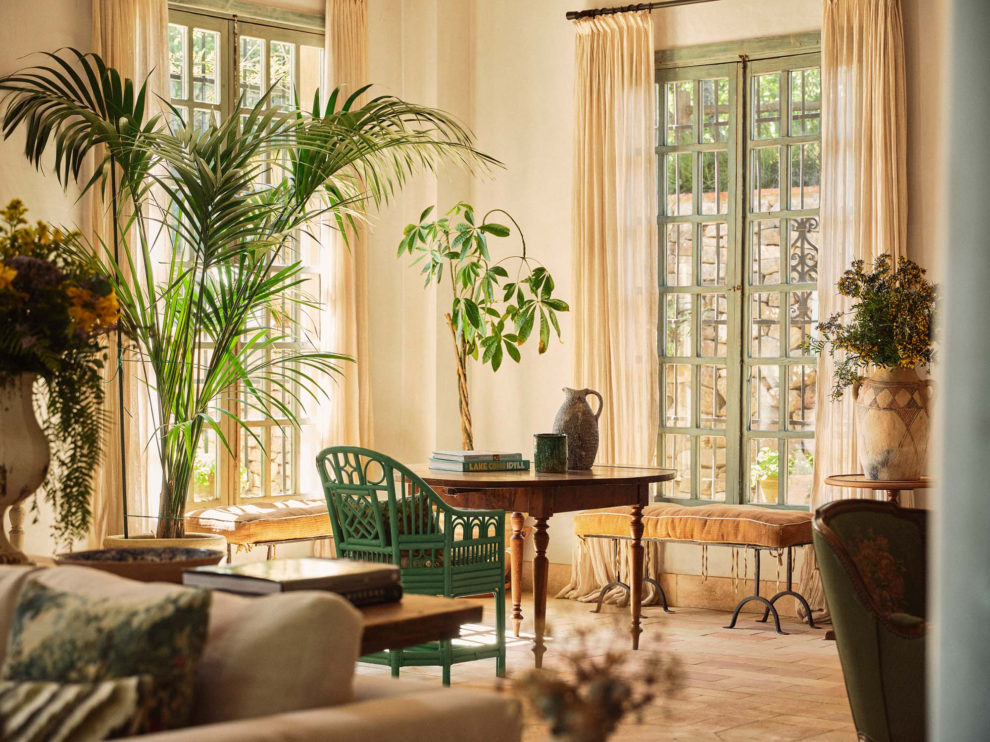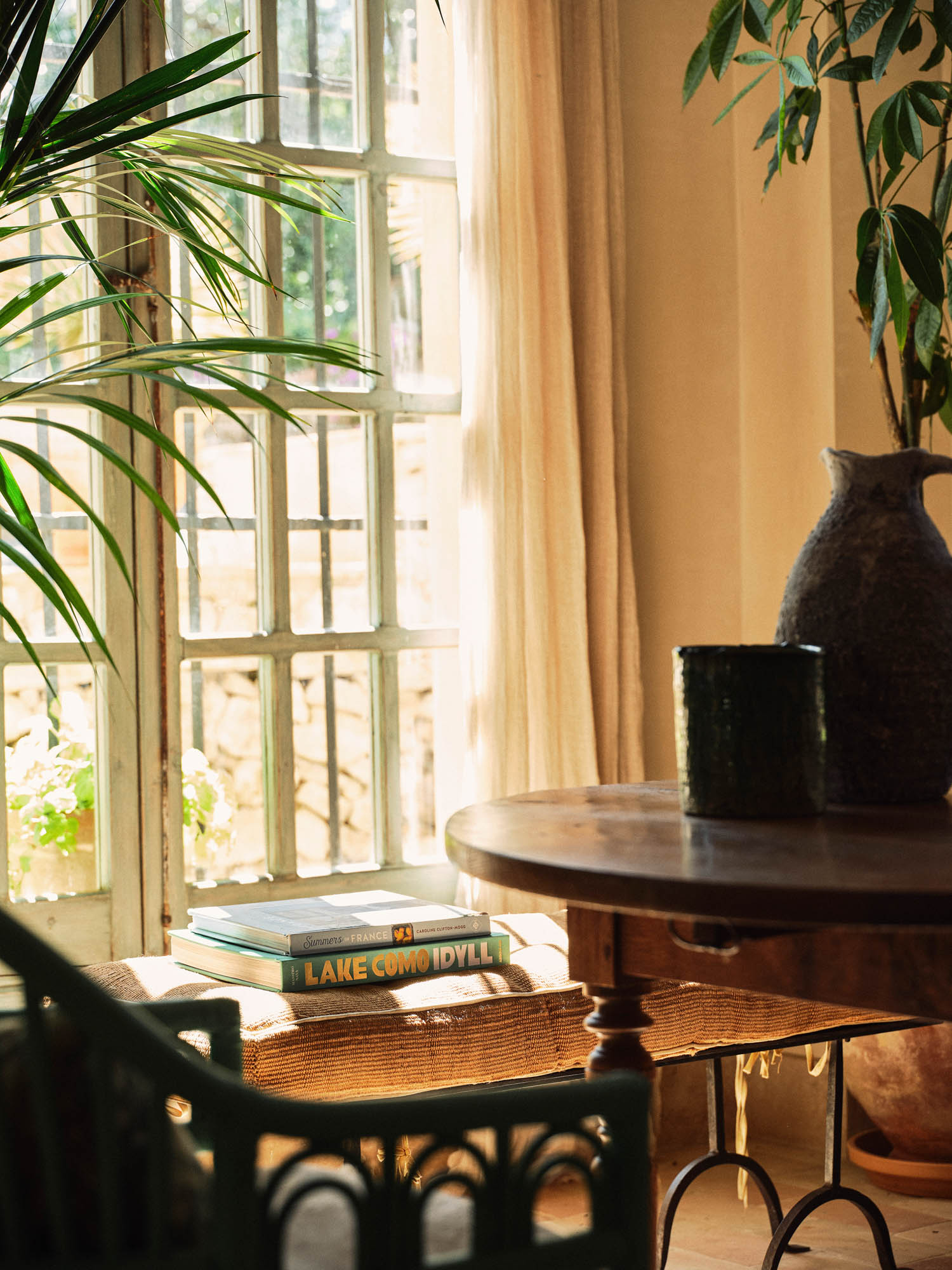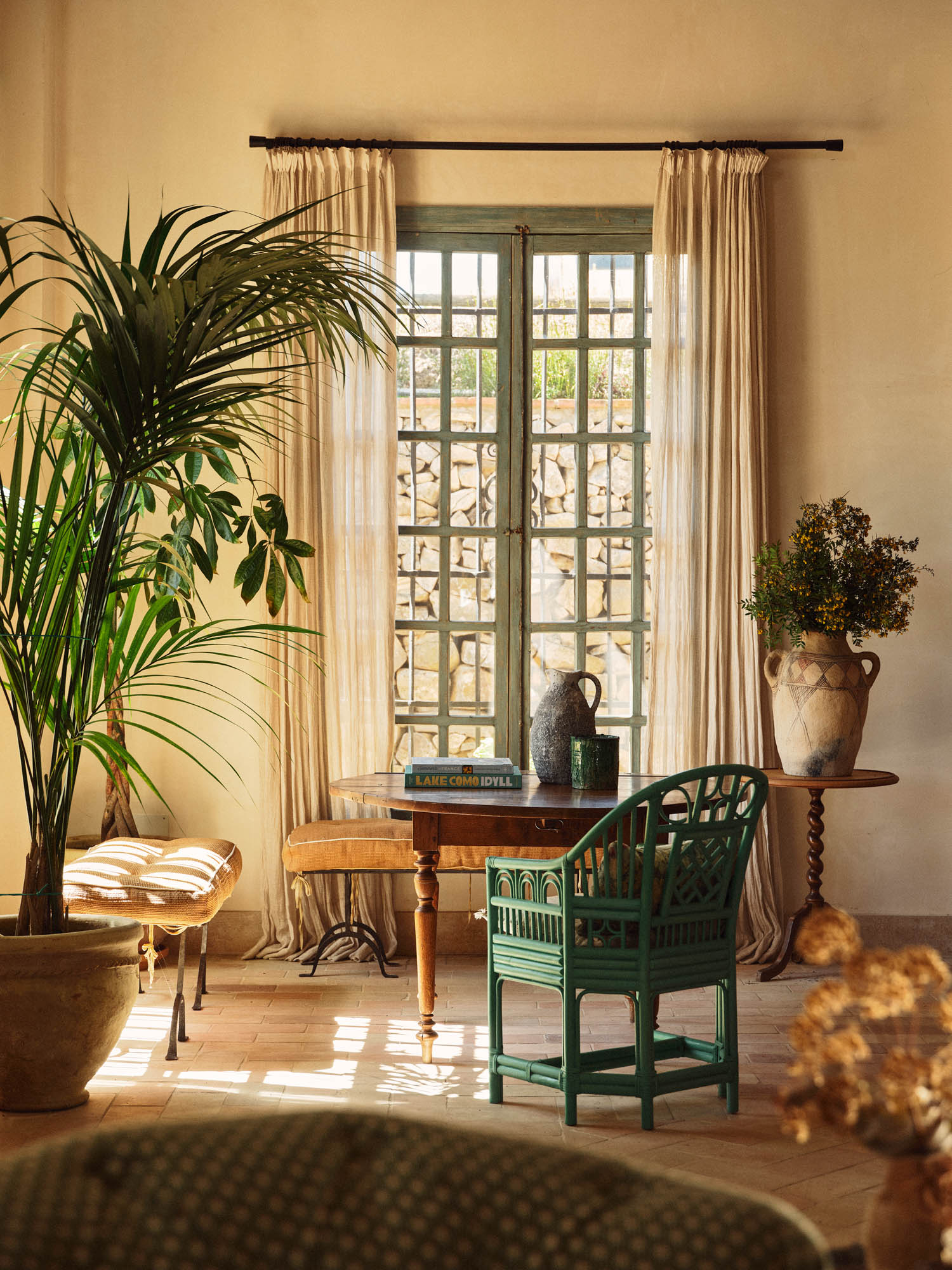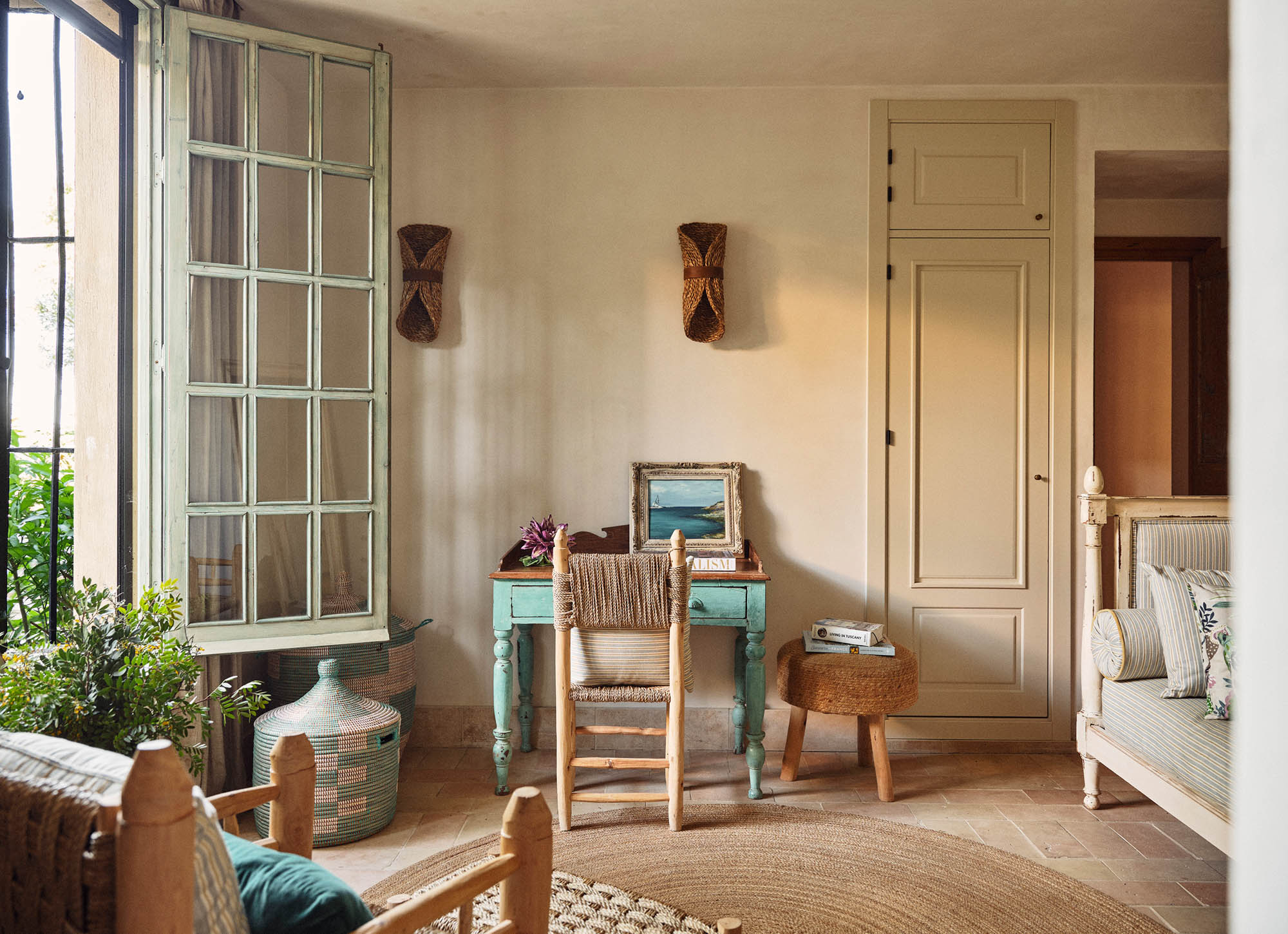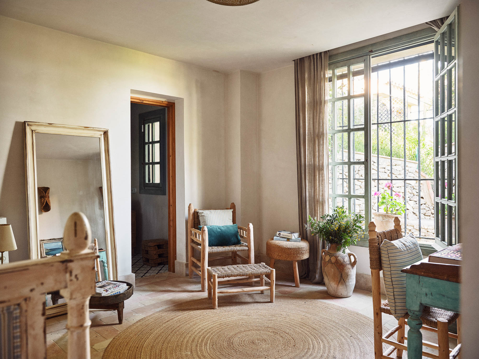 This characterful finca has been lovingly renovated by its highly talented interior designer owner, so every corner seems to offer something beautiful. There’s a constant sense of nature, light and the outdoors, yet I can just as easily imagine winter days spent by the fire, curled up with one of the many good books waiting on the shelves.