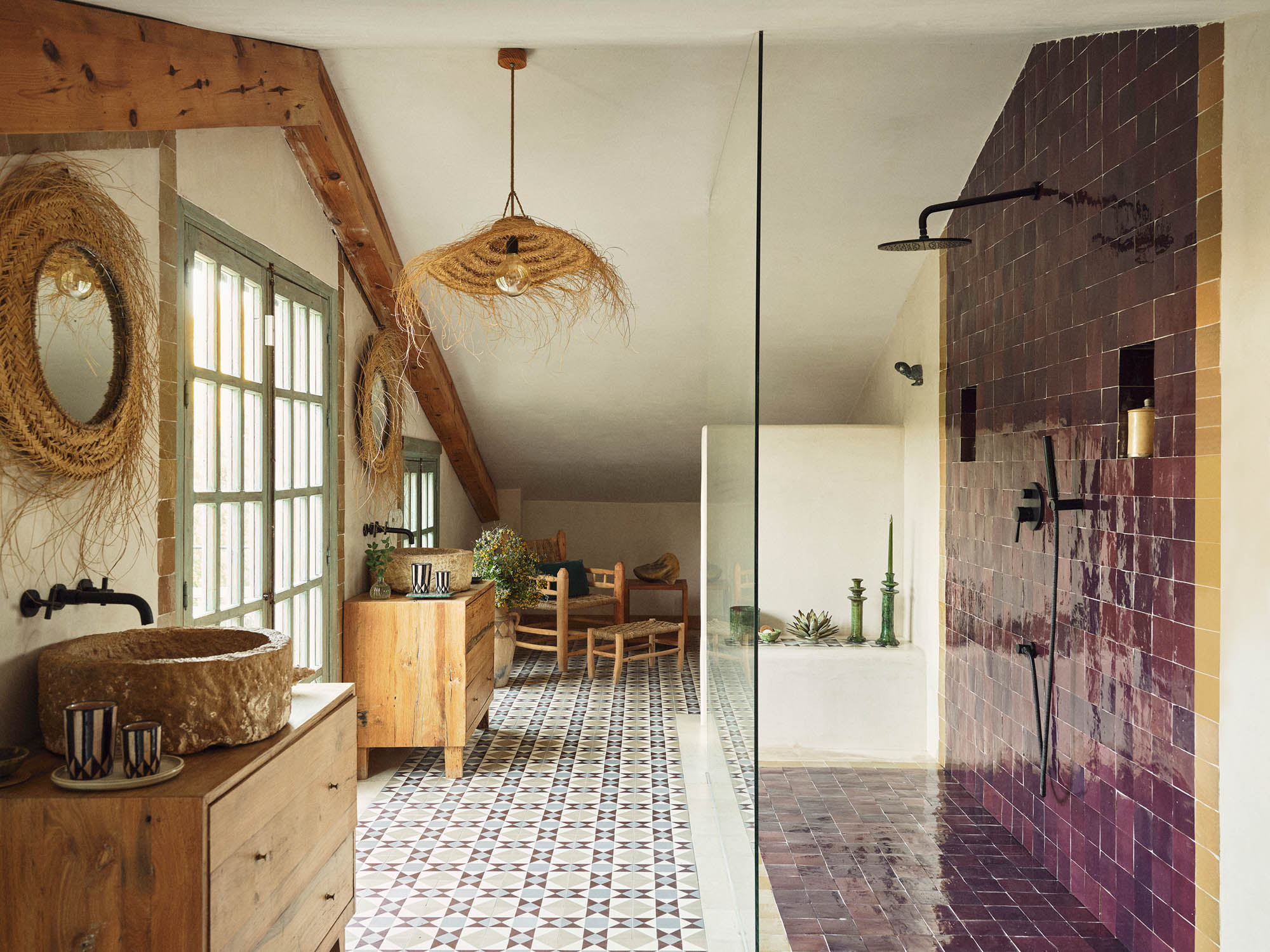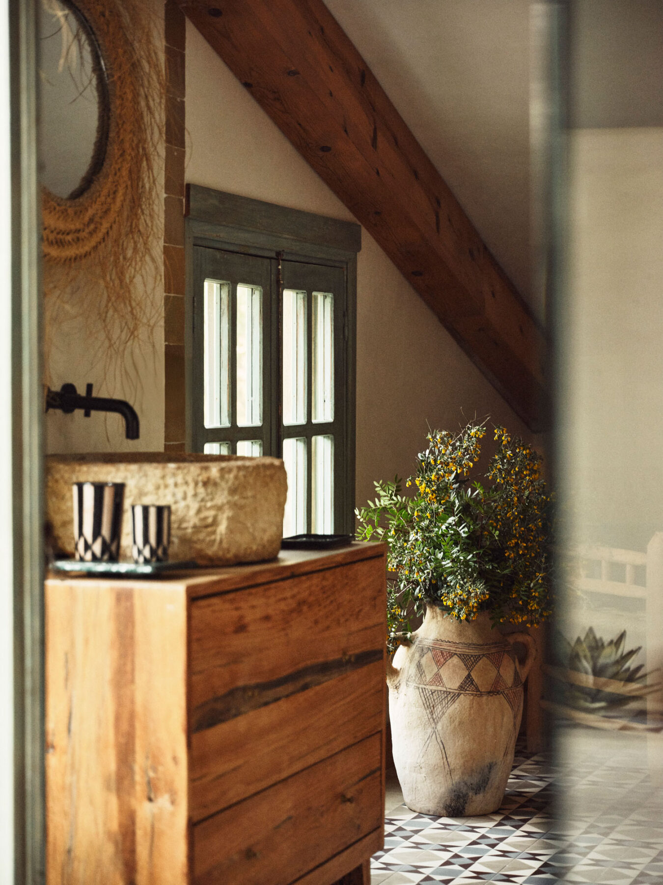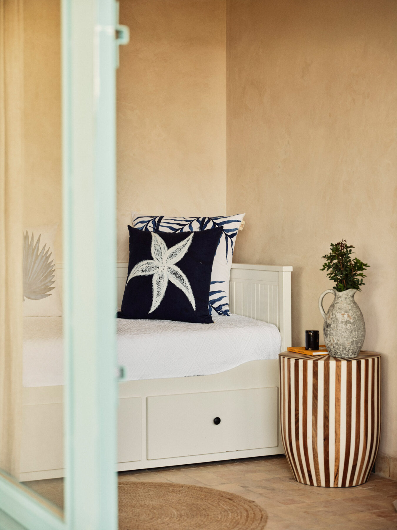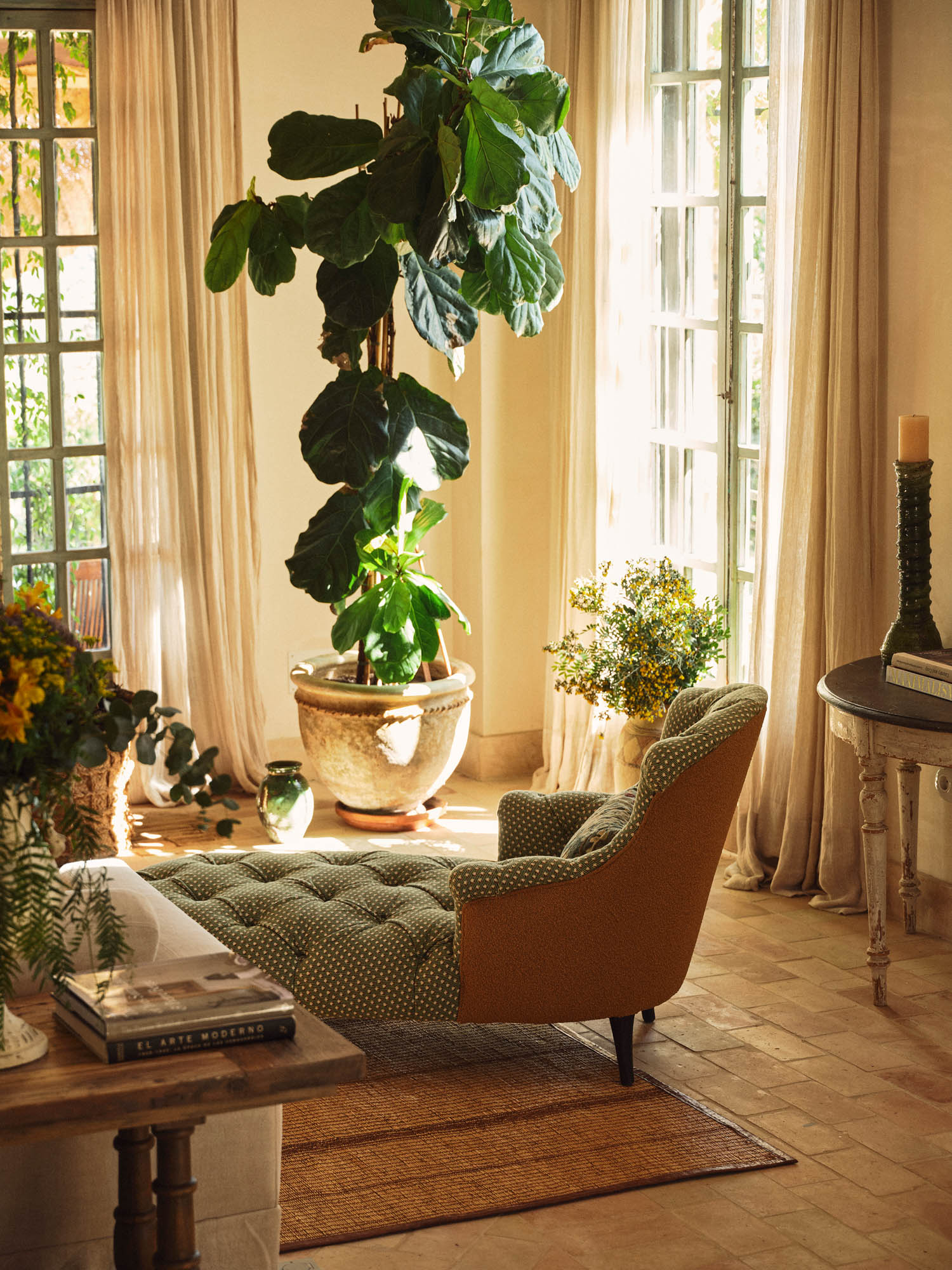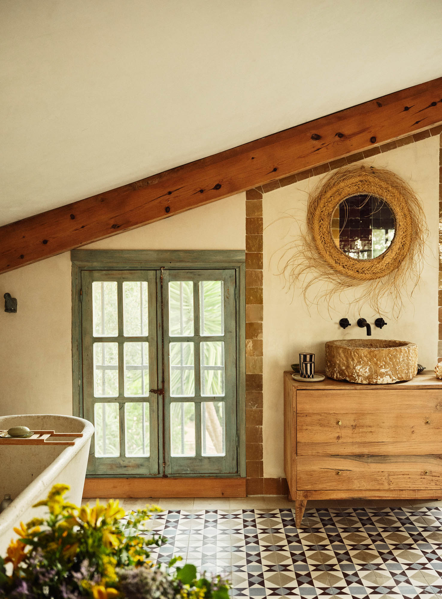This characterful finca has been lovingly renovated by its highly talented interior designer owner, so every corner seems to offer something beautiful. There’s a constant sense of nature, light and the outdoors, yet I can just as easily imagine winter days spent by the fire, curled up with one of the many good books waiting on the shelves.