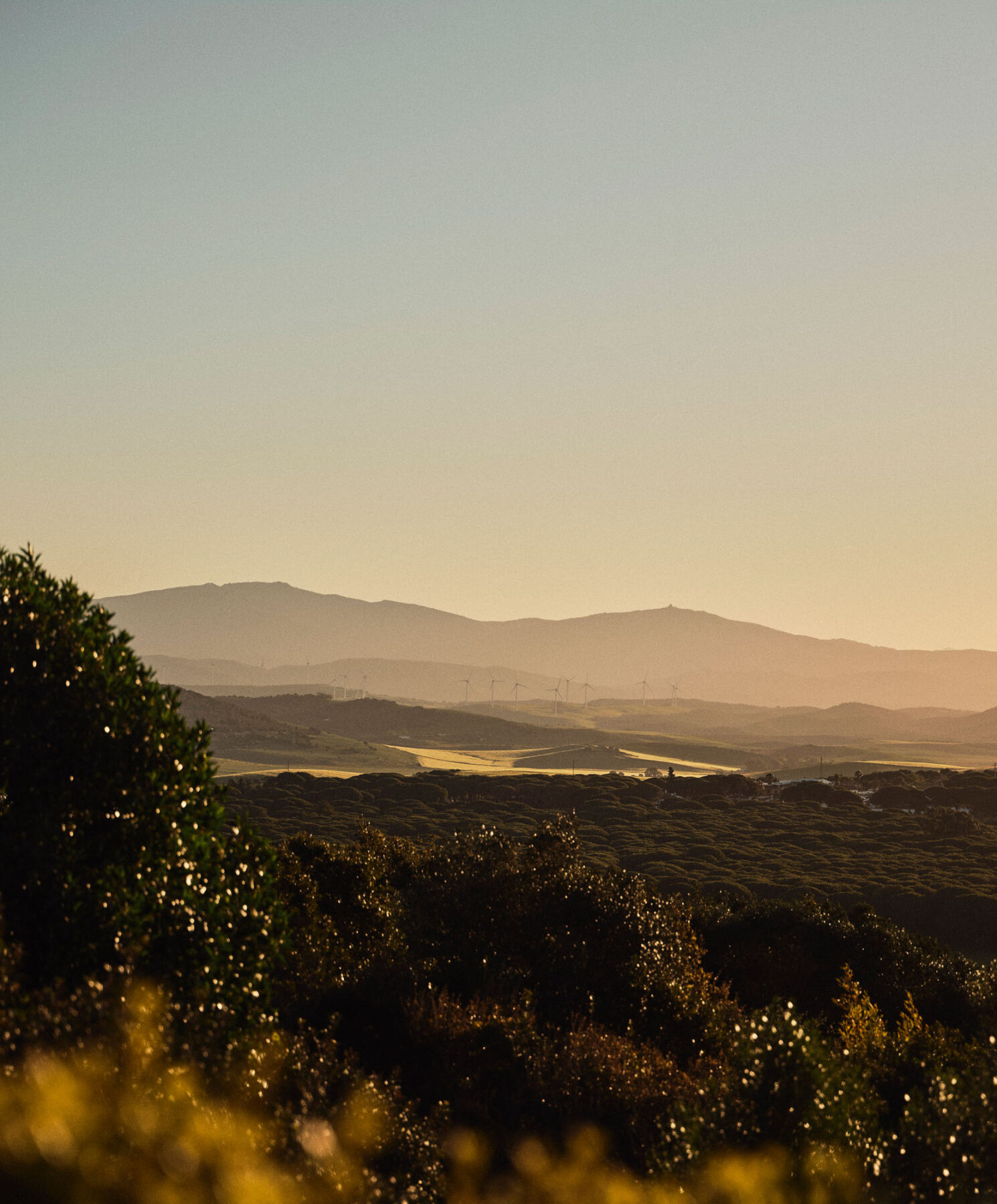 Finca Estelle is located in the countryside of the Cádiz province, set between Medina Sidonia and the village of Benalup. This part of Andalucia is characterised by rolling hills, open farmland with gracefully turning wind turbines and traditional white villages. It is favoured as a quieter, less-developed alternative to the coast.