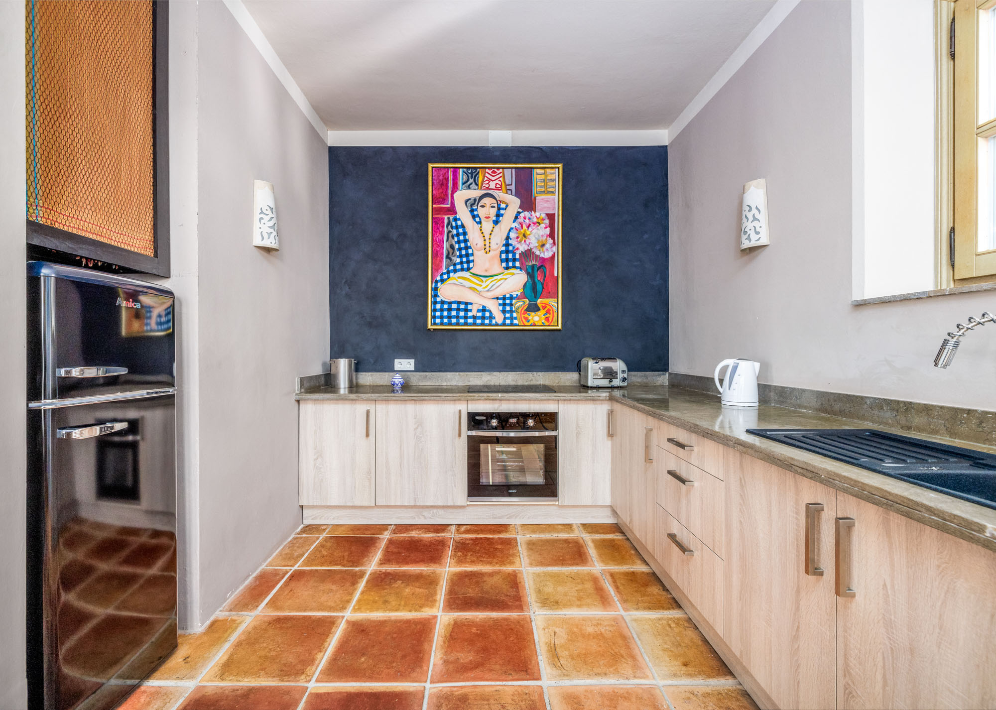 Hacienda Bolero’s kitchen showcases a range of modern amenities such as 5-ring Smeg burner, Miele Nespresso machine and microwave, fridge freezer, oven and juicer.