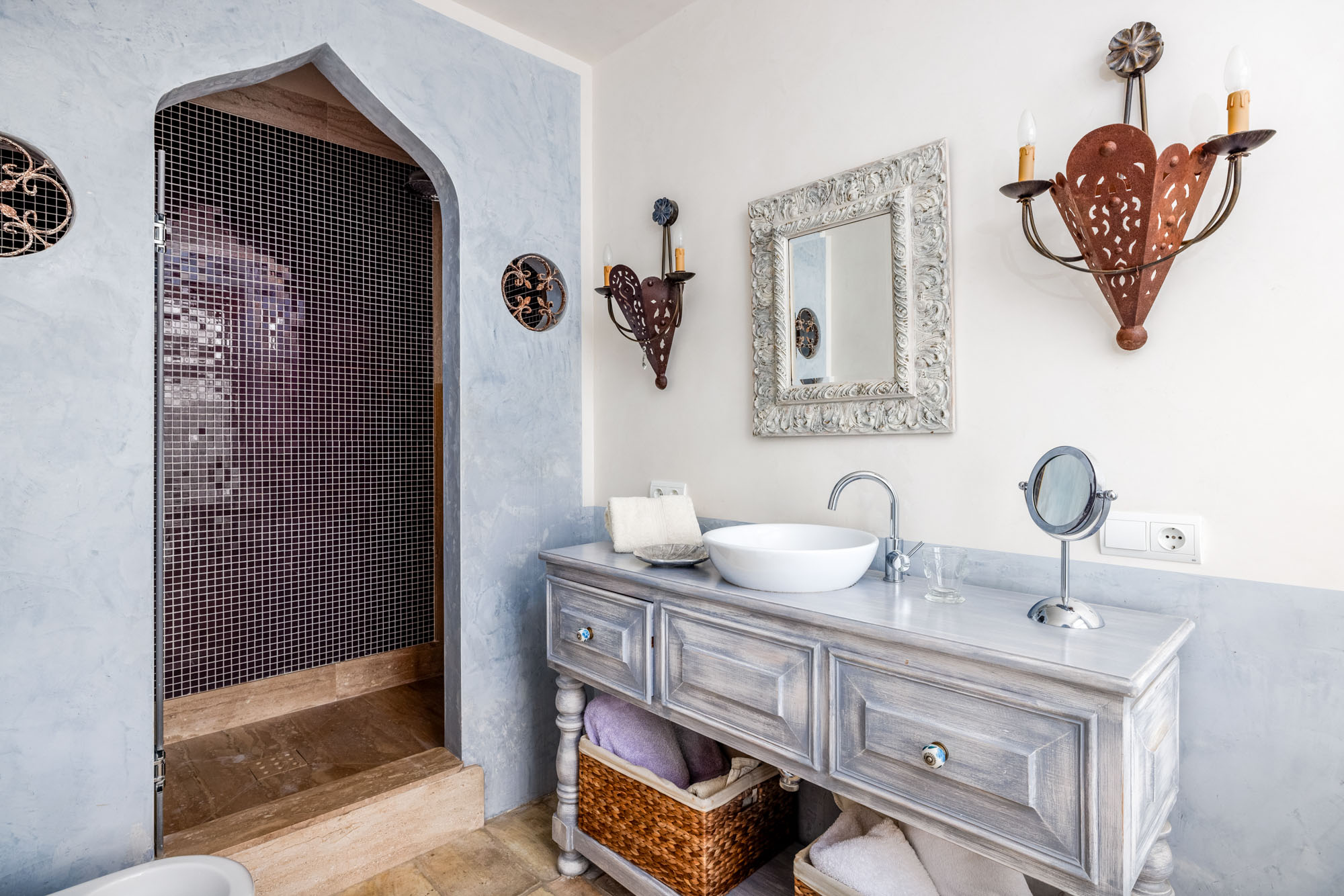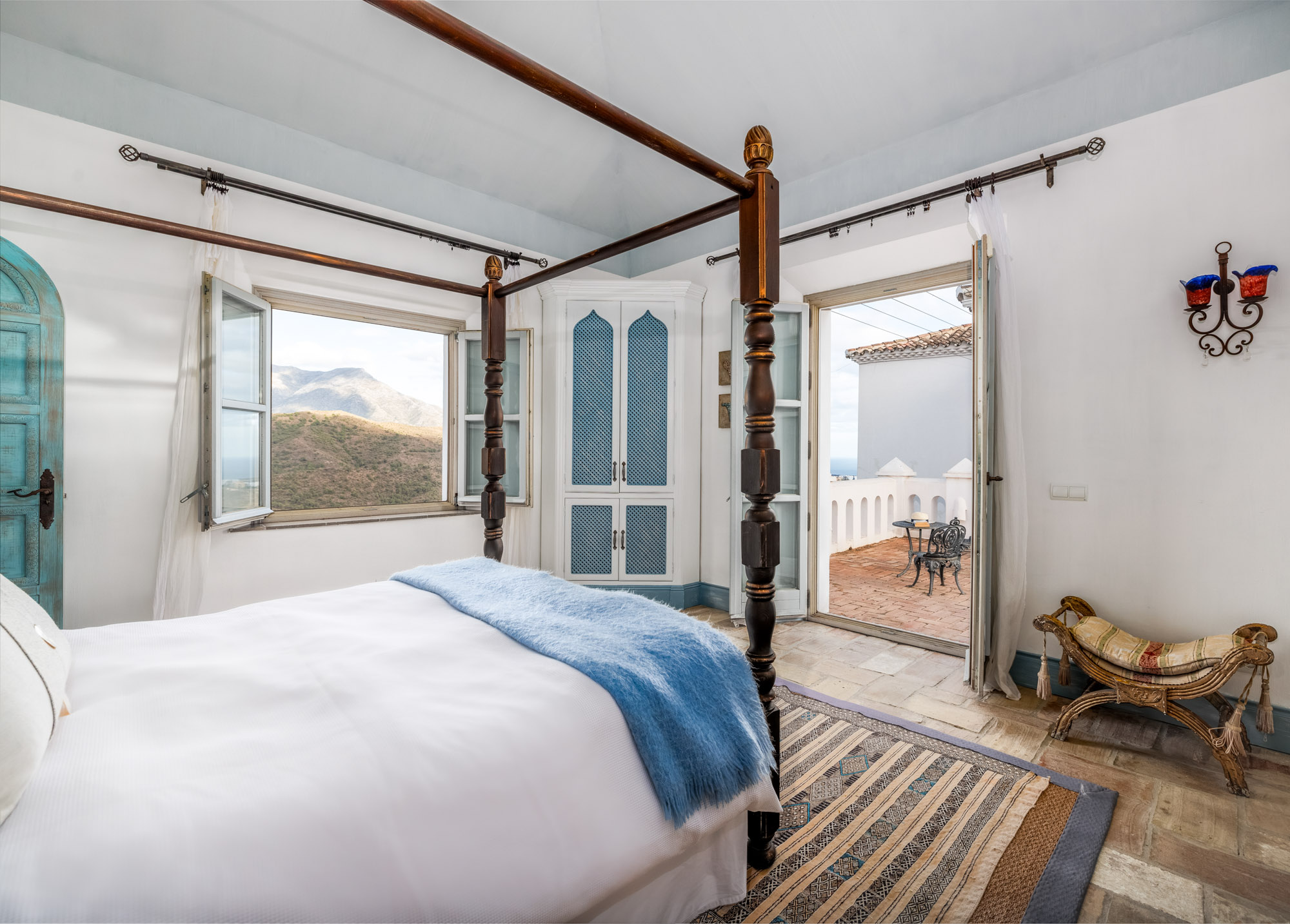 Upstairs, a sun-splashed terrace offers panoramic views from surrounding mountains to the sea, and sets the stage for an idyllic al-fresco breakfast. Meanwhile, the traditional Andalusian patio at the entrance to the villa conjures visions of pre-dinner cocktails sipped amongst lemon and lime trees.