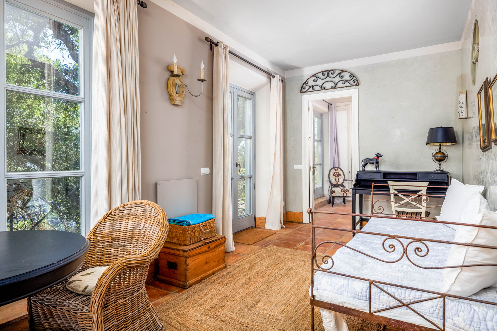 At the bottom of the manicured garden, a small seating area with table and chairs can be transformed into a romantic backdrop for a candlelit dinner for two, with views of the swimming pool and cork oaks as a backdrop. Stay long enough and you may even glimpse the wild deer who come inquisitively alongside garden.