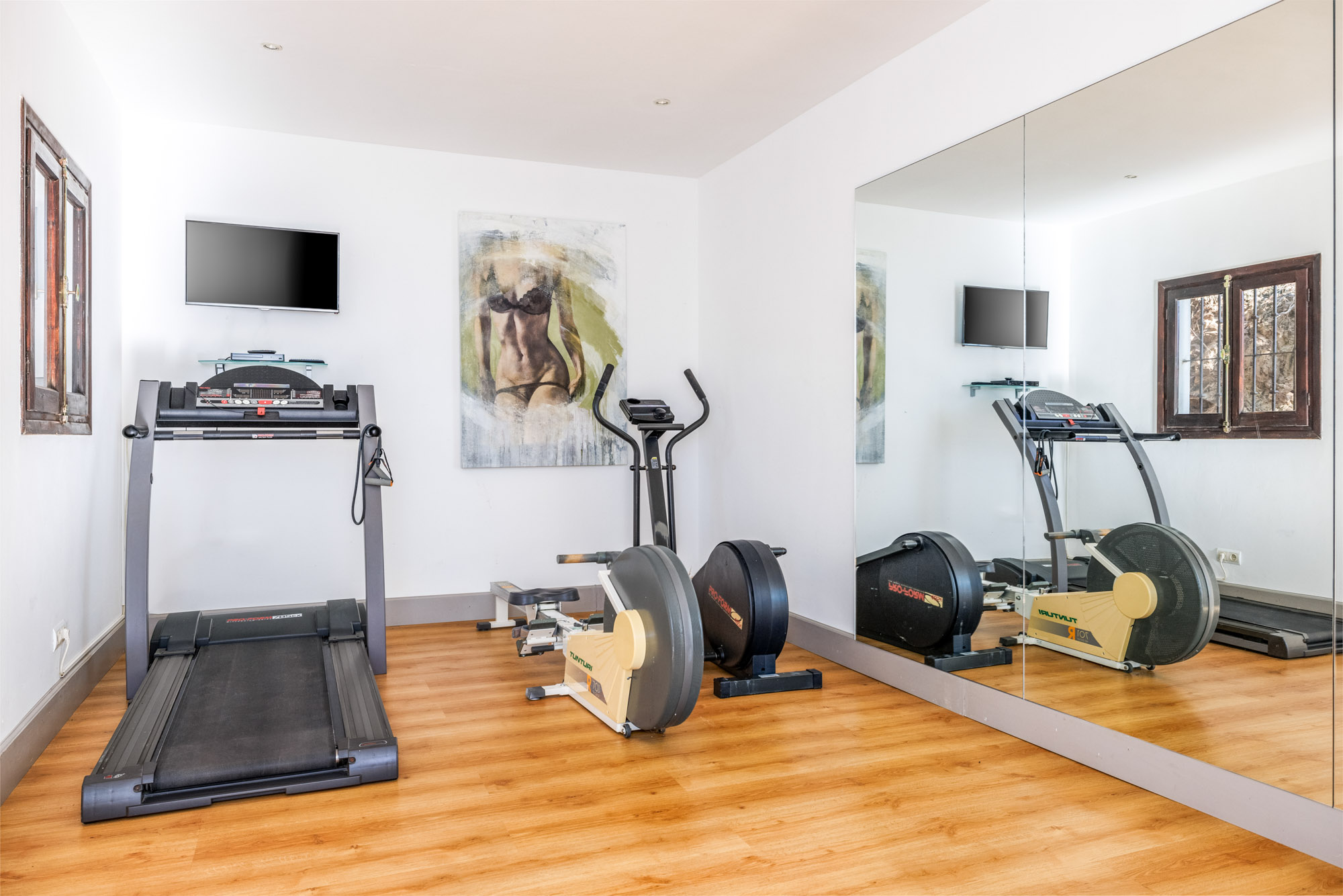 The manicured lawn is the perfect spot to practice some morning yoga under the shade of an aged oak tree, or enjoy some weights and cardio in the small home gym or a relaxing swim in the private pool.