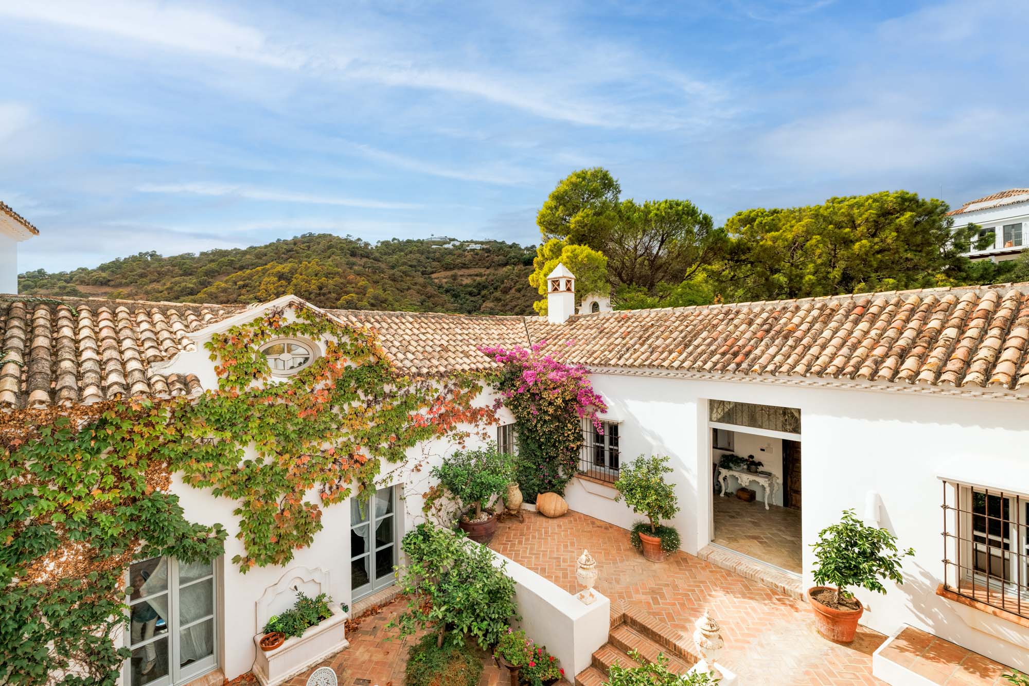 An ideal space for a relaxed family getaway, Hacienda Bolero features 7 generously proportioned bedrooms, two living rooms, a charming Andalucian courtyard and a large private garden surrounded offering expansive views over cork forests and pine trees towards Marbella and the Mediterranean sea.