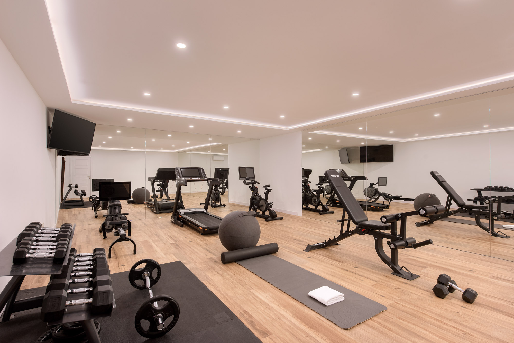 • Fully-equipped gym with rowing machine, weight bench, exercise bike and treadmill