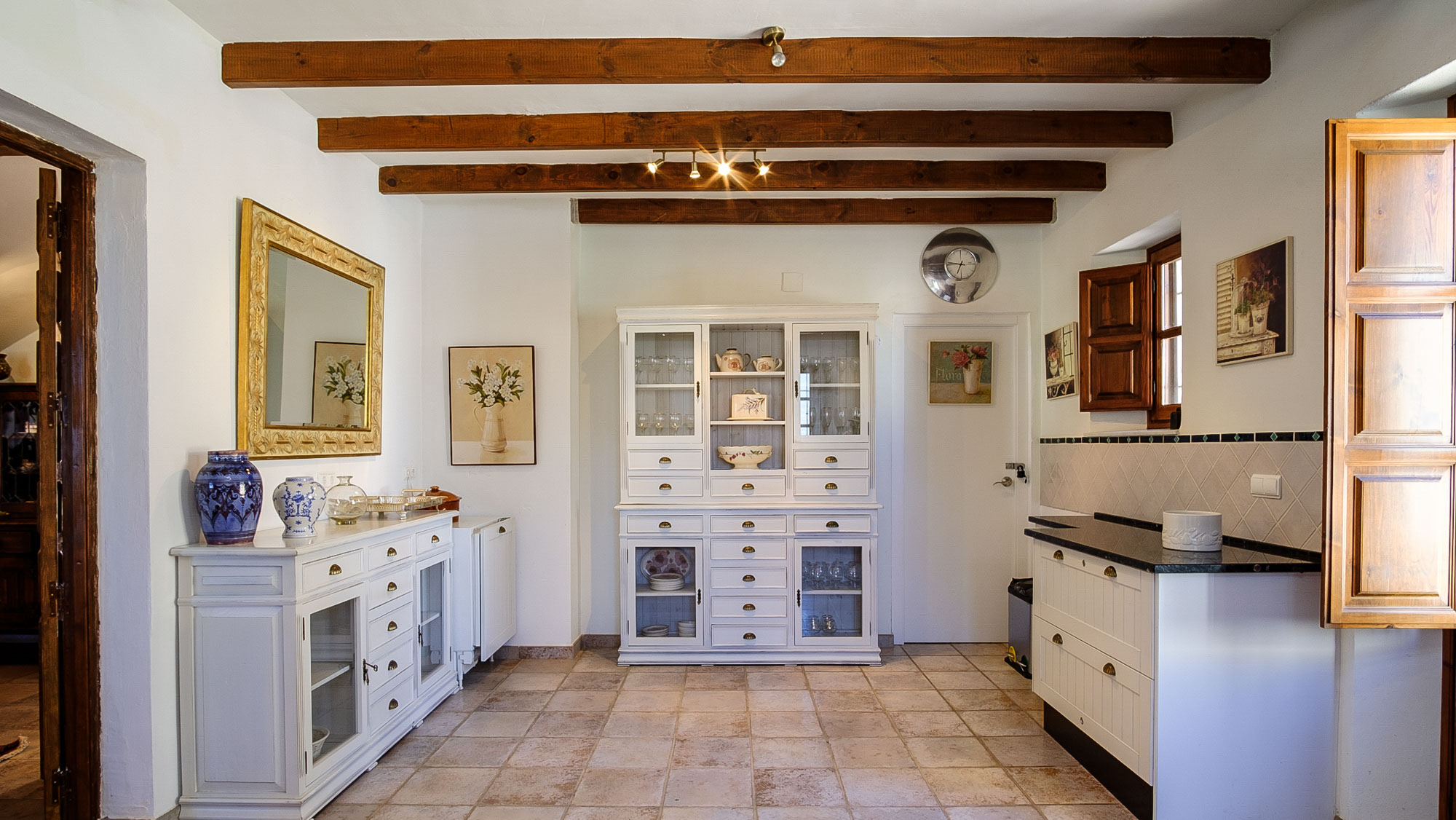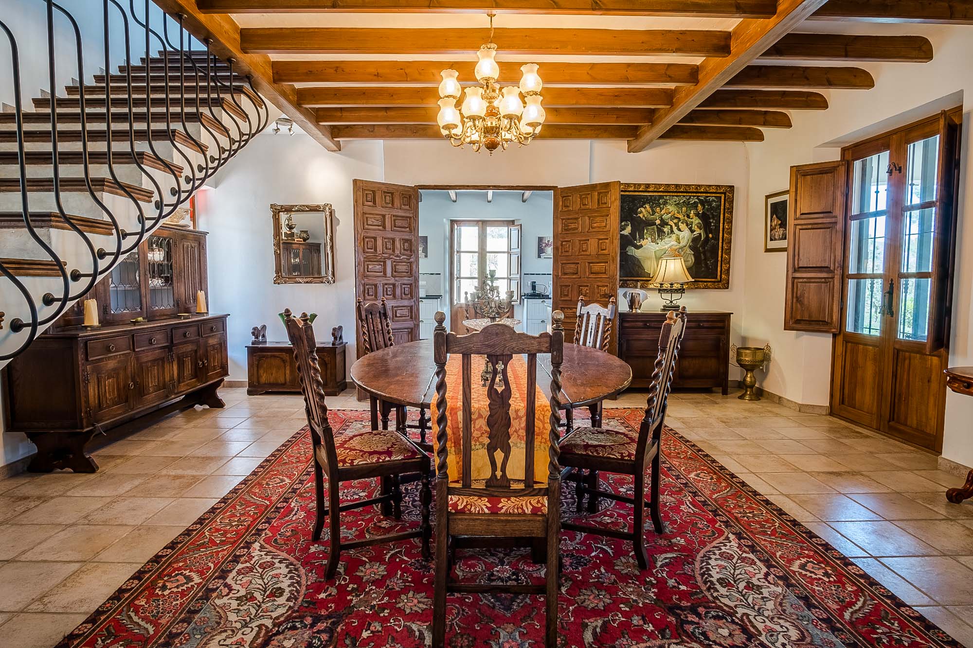 In the principal suite/guest house, you have a second living room and dining room located on the ground floor, and this leads to the covered terrace at the rear of the house. The kitchen is off this dining room, and the principal suite is above this area on the first floor. There isn’t a door dividing the living space on the ground floor and the suite above.