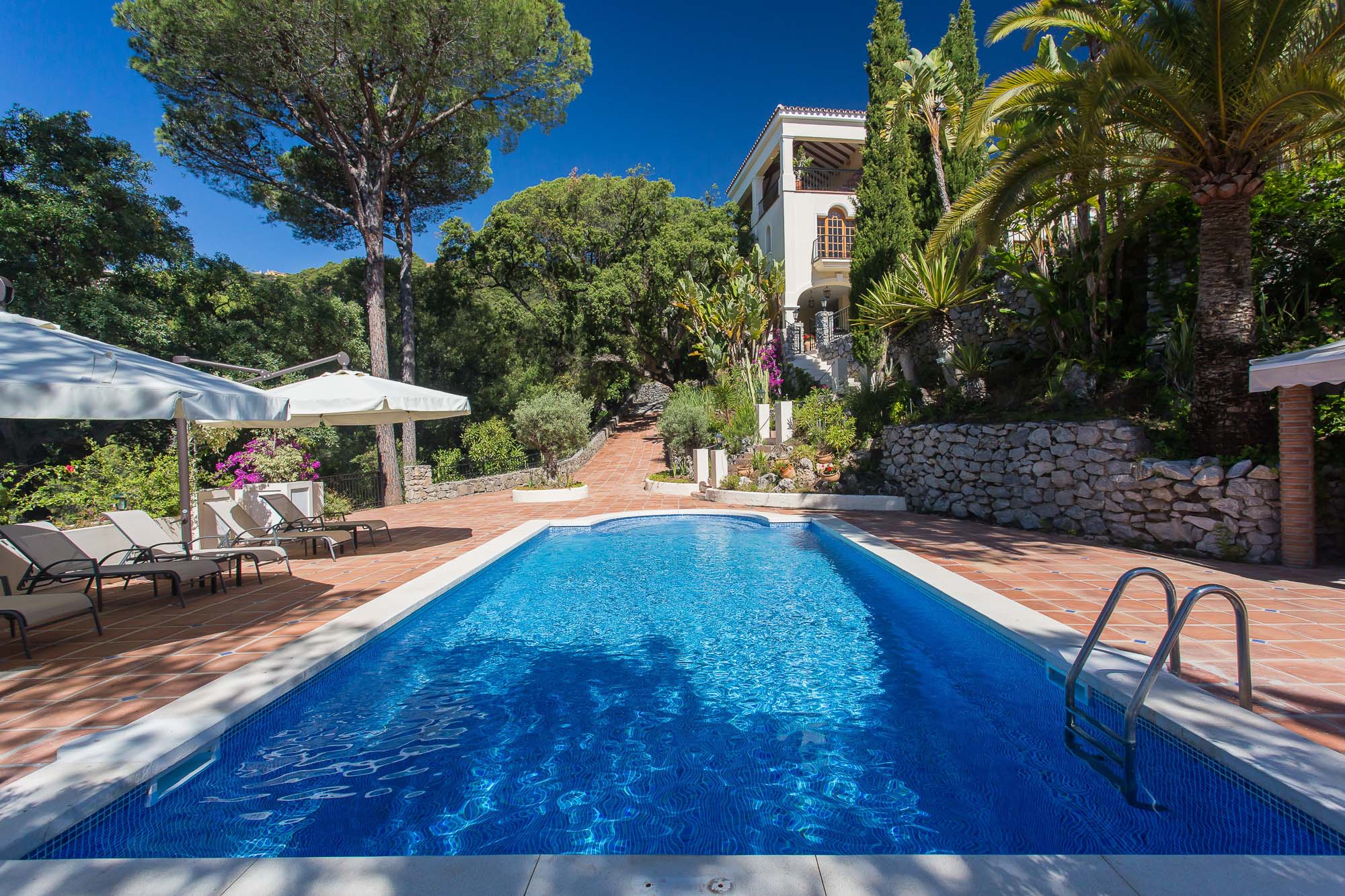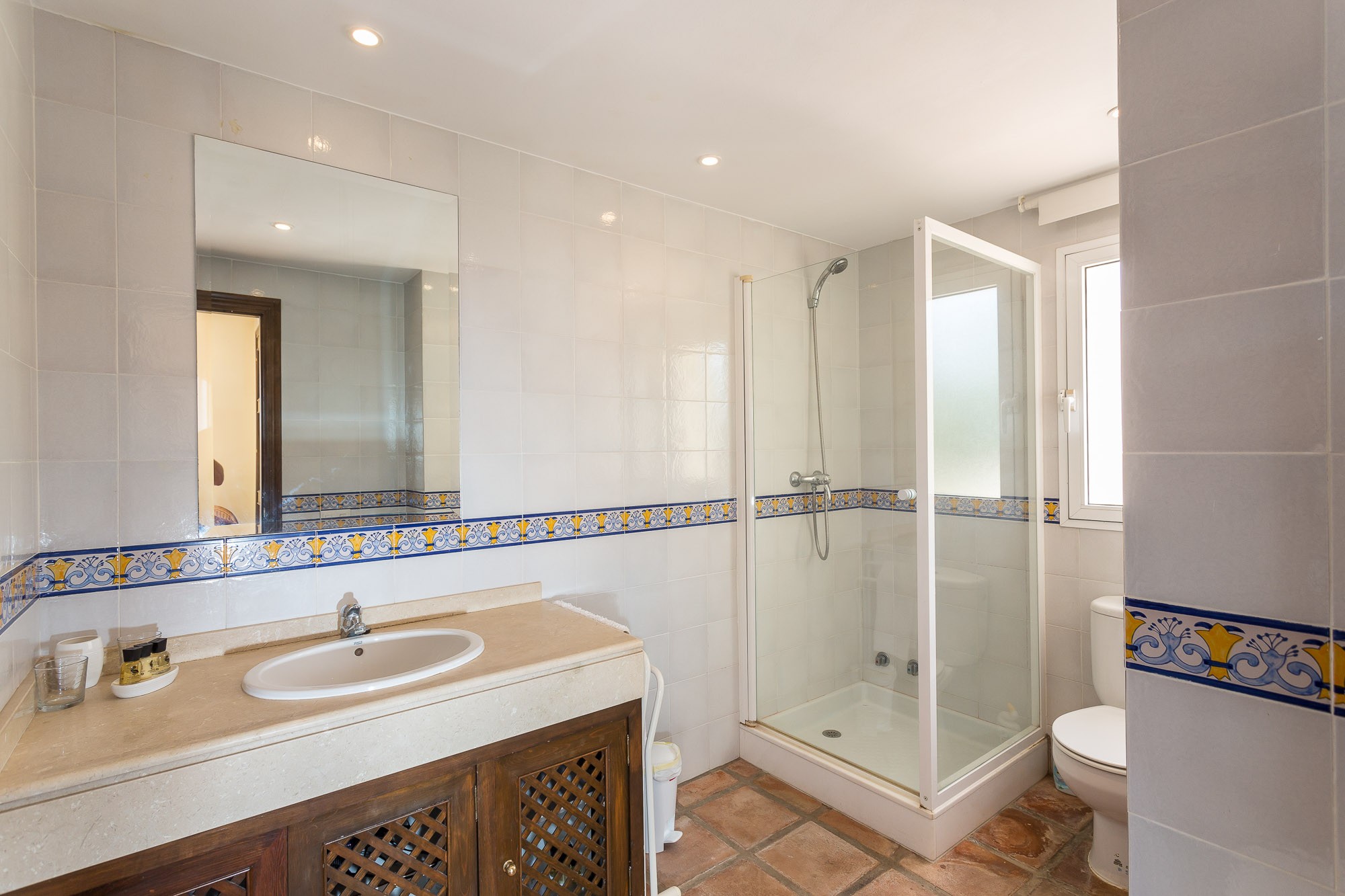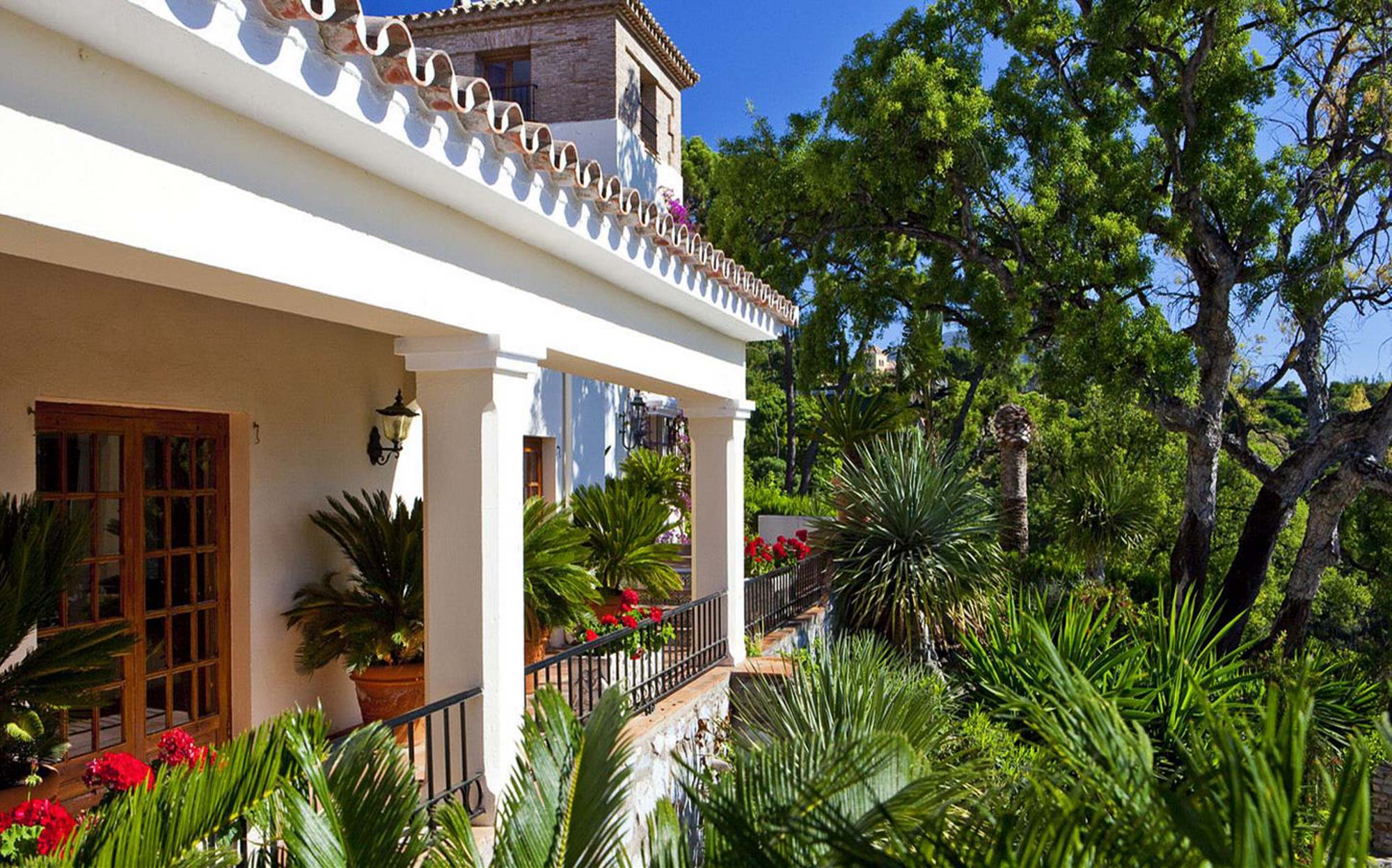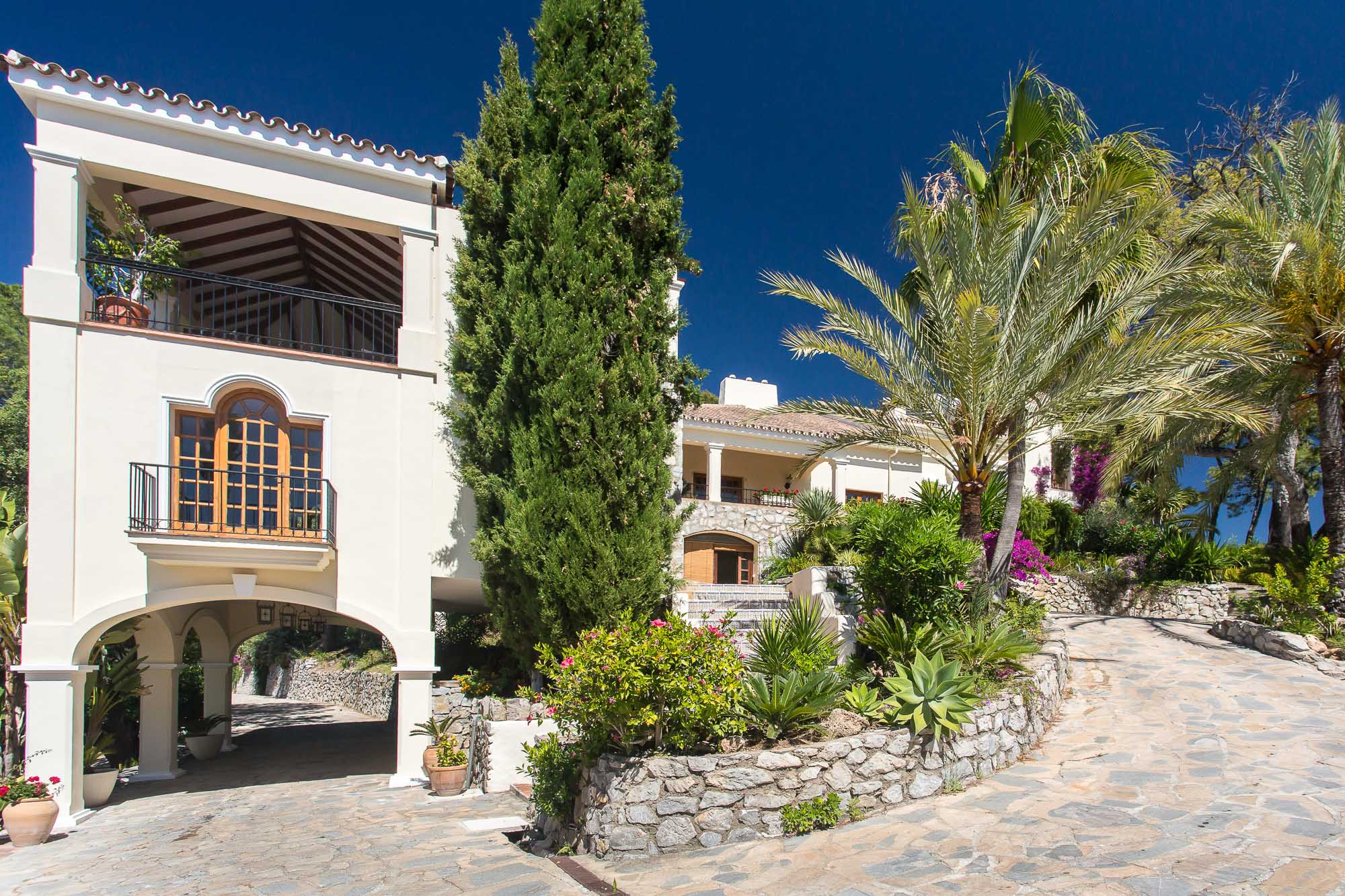 Beyond that lays a formal dining room, the main kitchen, a small bodega, and eventually you come to the beating heart of the house; A cool central patio that embraces Moorish traditions, bordered by archways, hand painted decorative ceramics, and finished in varying hues of terracotta reds, oranges, and rich blues inspired by the Mediterranean Sea.