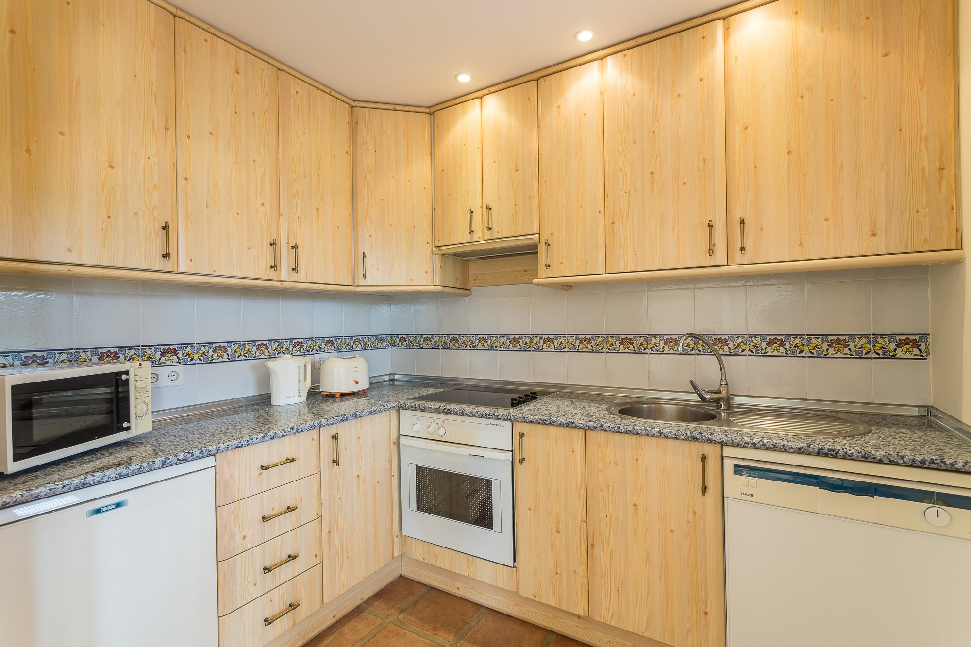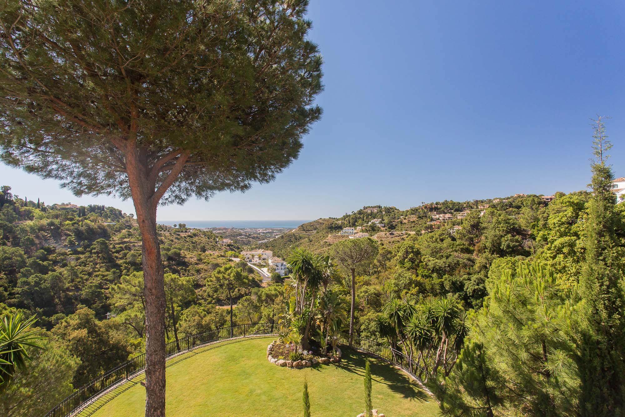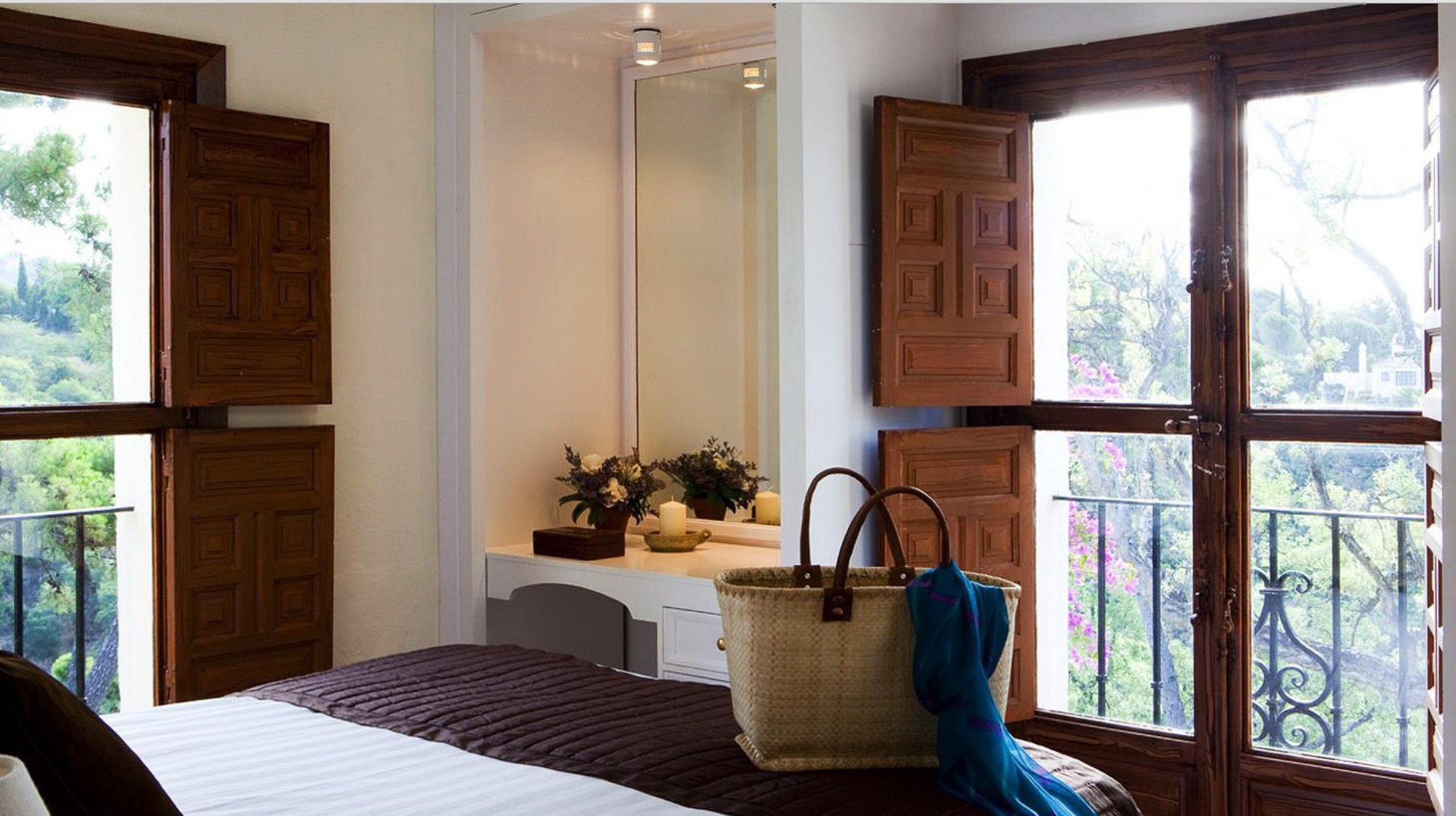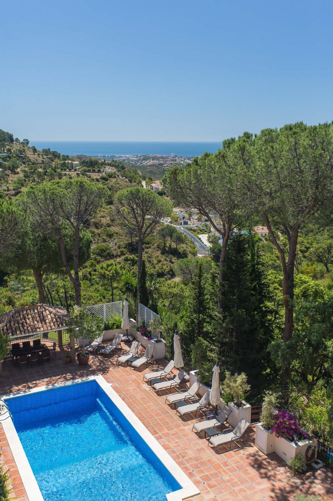 Beyond that lays a formal dining room, the main kitchen, a small bodega, and eventually you come to the beating heart of the house; A cool central patio that embraces Moorish traditions, bordered by archways, hand painted decorative ceramics, and finished in varying hues of terracotta reds, oranges, and rich blues inspired by the Mediterranean Sea.
