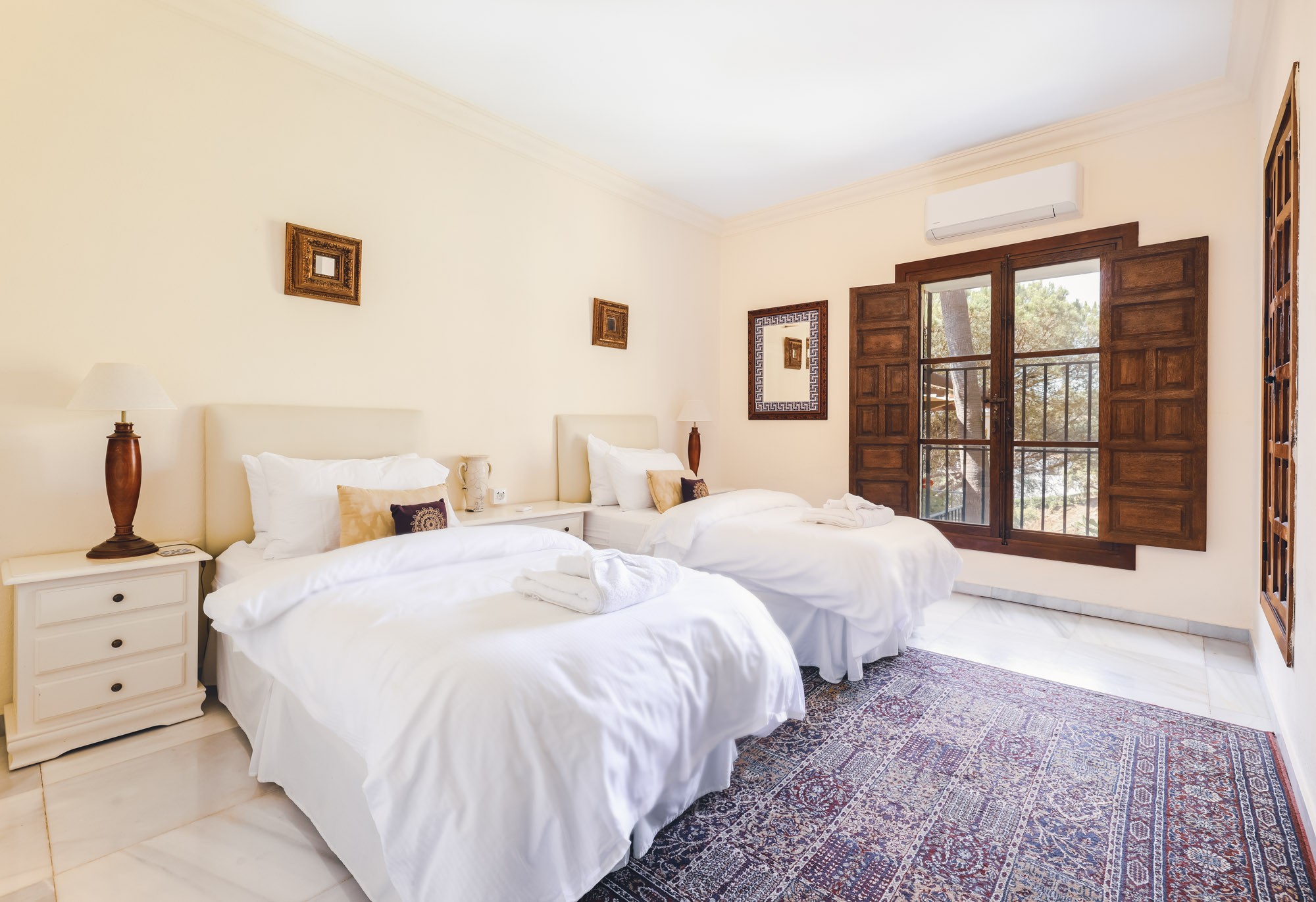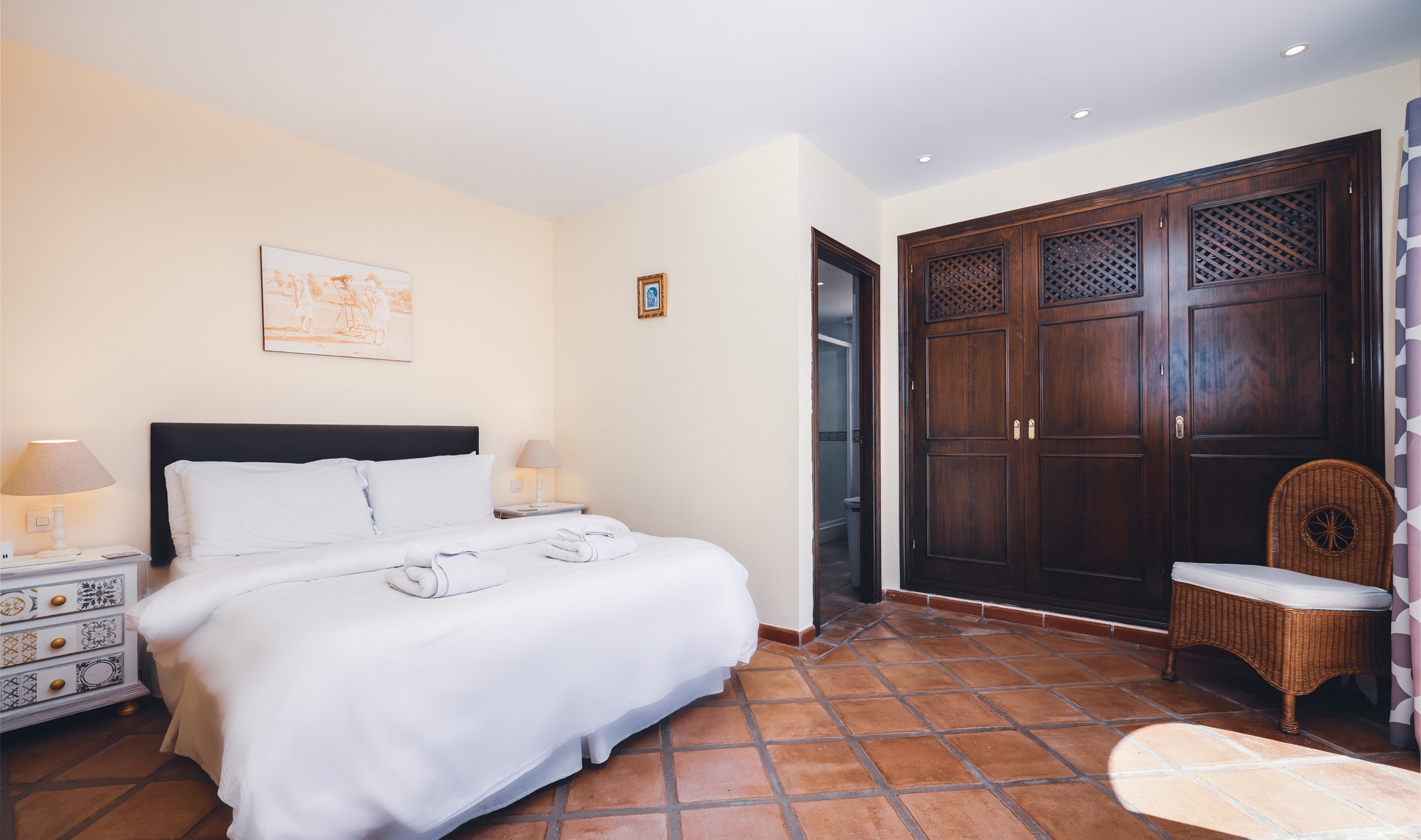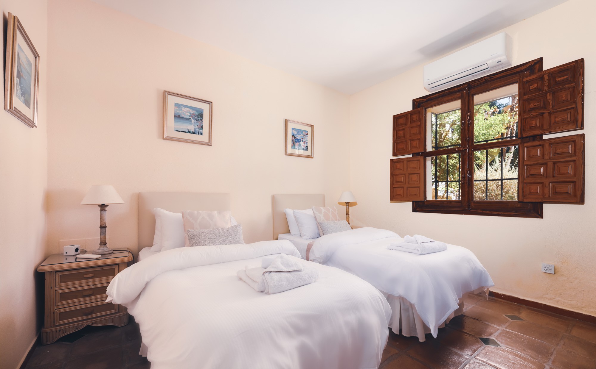Off the courtyard you will find three of the 9 bedrooms; a large master bedroom with four poster bed and private terrace, a guest twin room, and the courtyard room which also has space for an extra child.