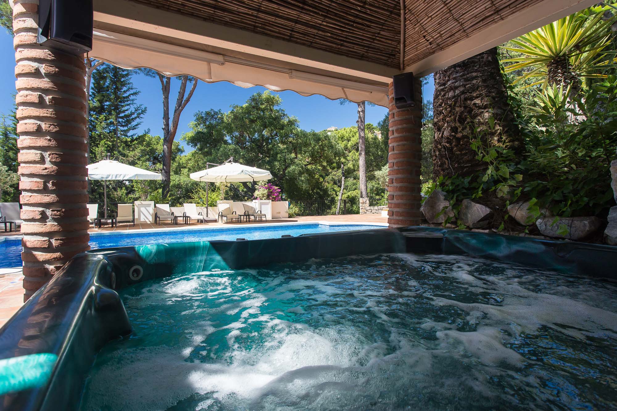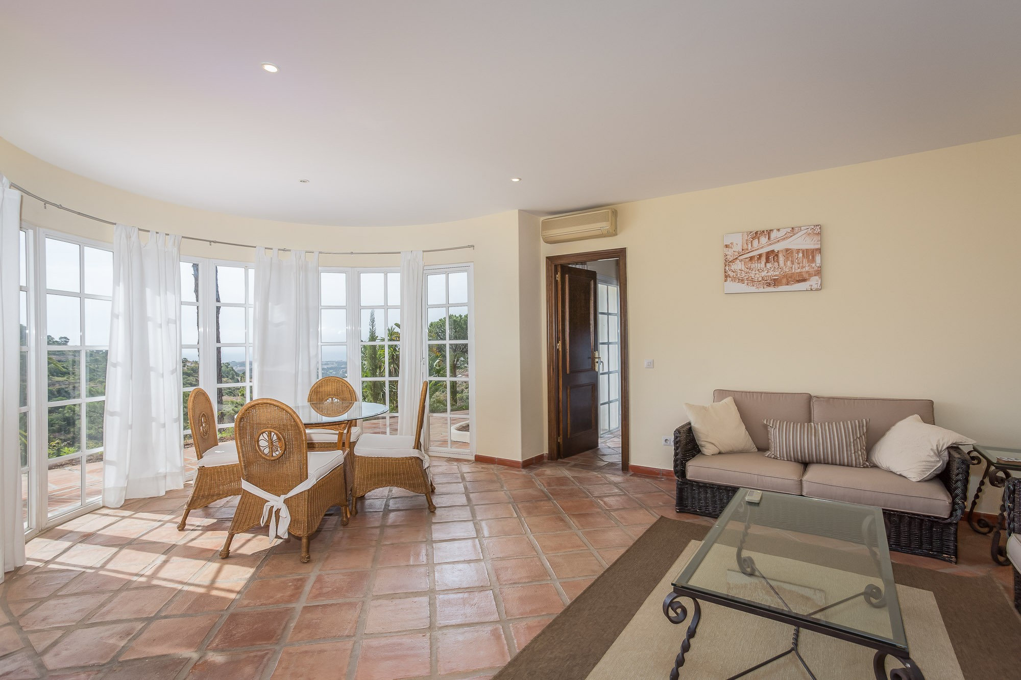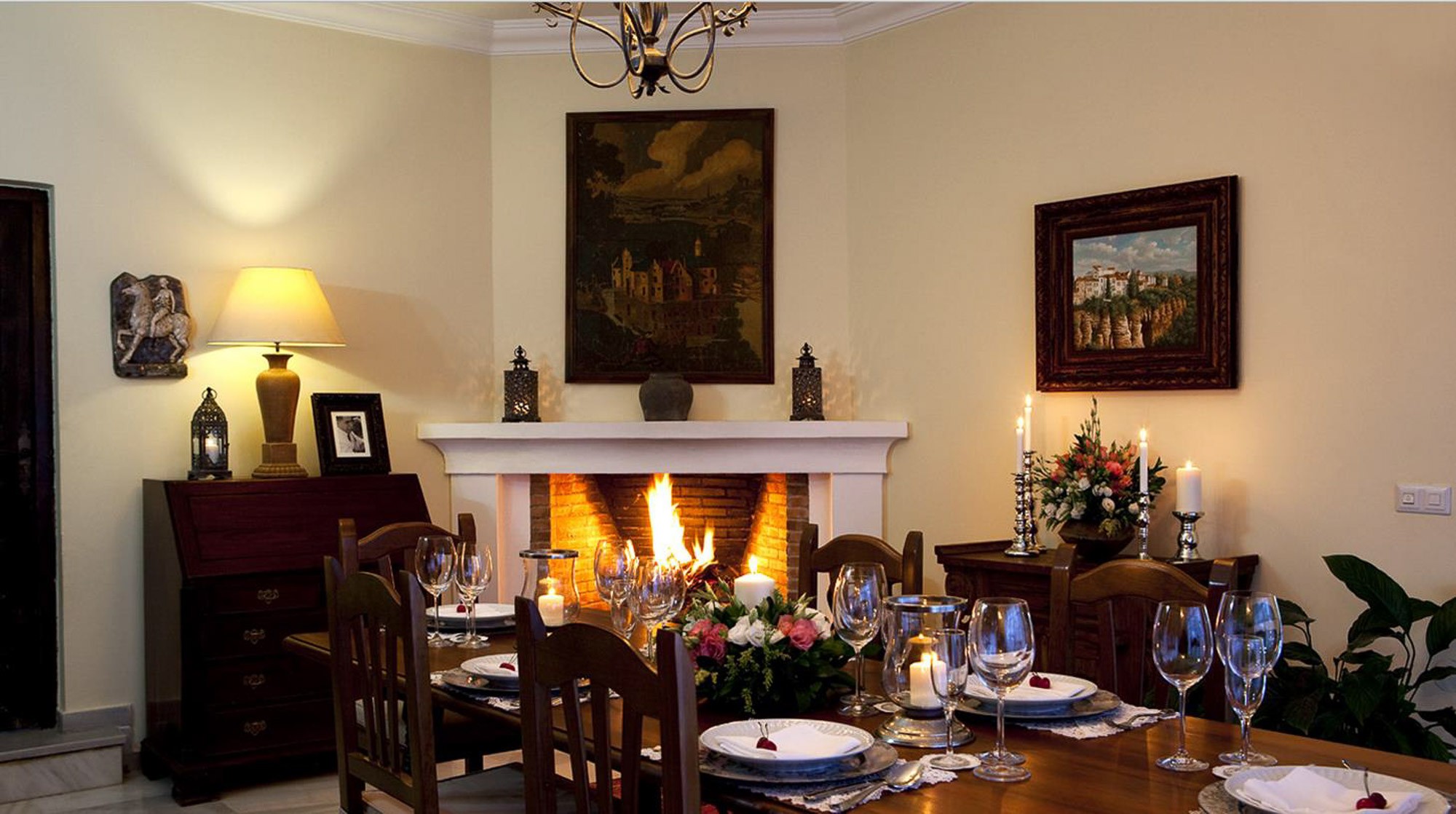A huge antique Ronda door gives a hint at what lays inside, revealing a spacious and comfortable living area with an over-sized fireplace, full of Spanish charm.