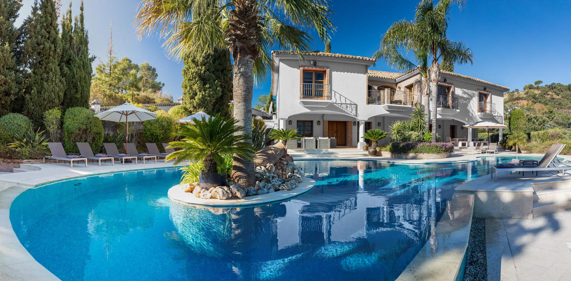 A spacious modern villa full of Spanish sophistication, its six bedrooms mix with homely interiors, impeccably kept grounds and a spectacular pool.