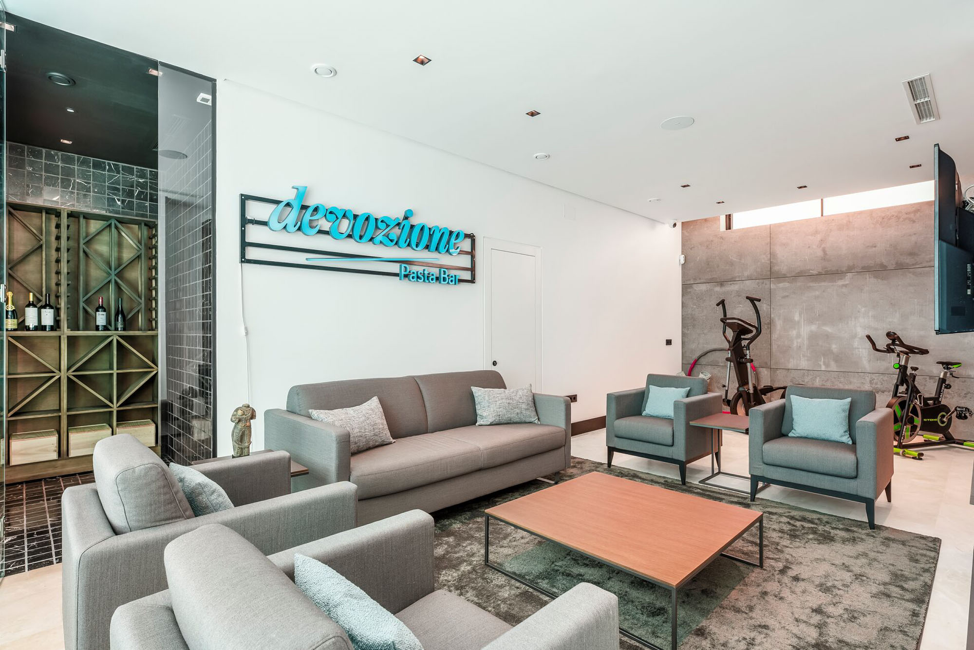 On this level, there is also a small gym section with an elliptical trainer, bike and yoga mats, as well as a winter spa* which can be booked in advance if you are staying at Villa Acqua during the autumn-winter months.