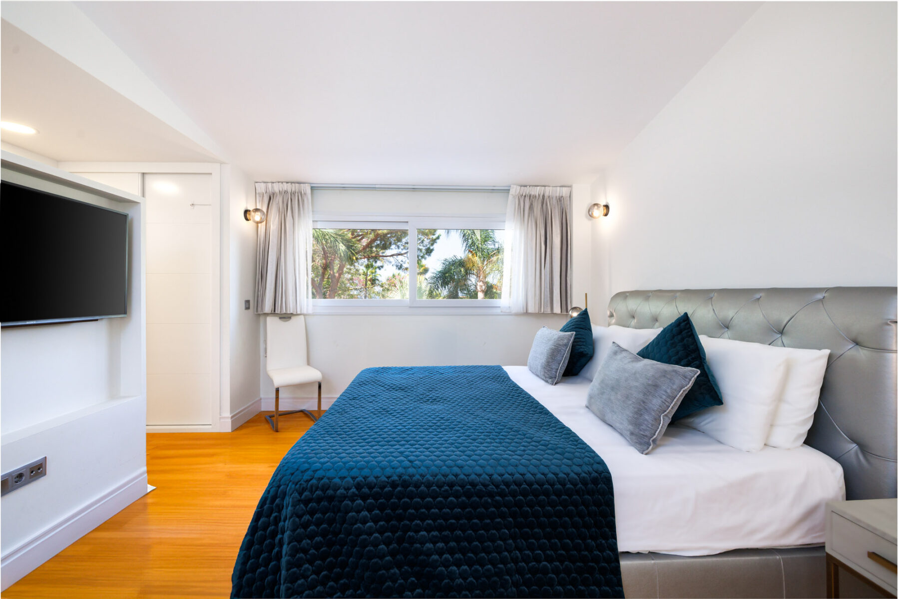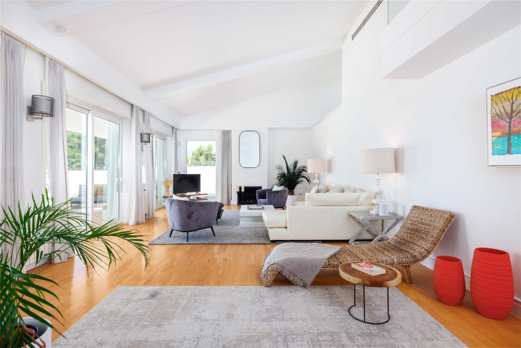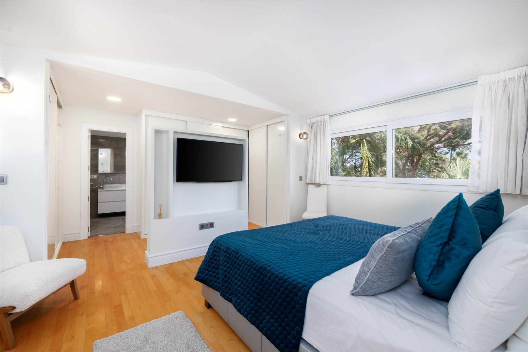 Wide, modern doors beckon you into Villa Anja, a modern home with Spanish heart and Scandinavian soul. Indeed, as soon as you step foot inside the villa, blonde-wood floors fan out and throughout the home, setting the tone for this lovely villa: a distinct Northern-European contemporary style, bathed in the breath-taking views, warm weather, and even warmer hospitality of the Costa del Sol.