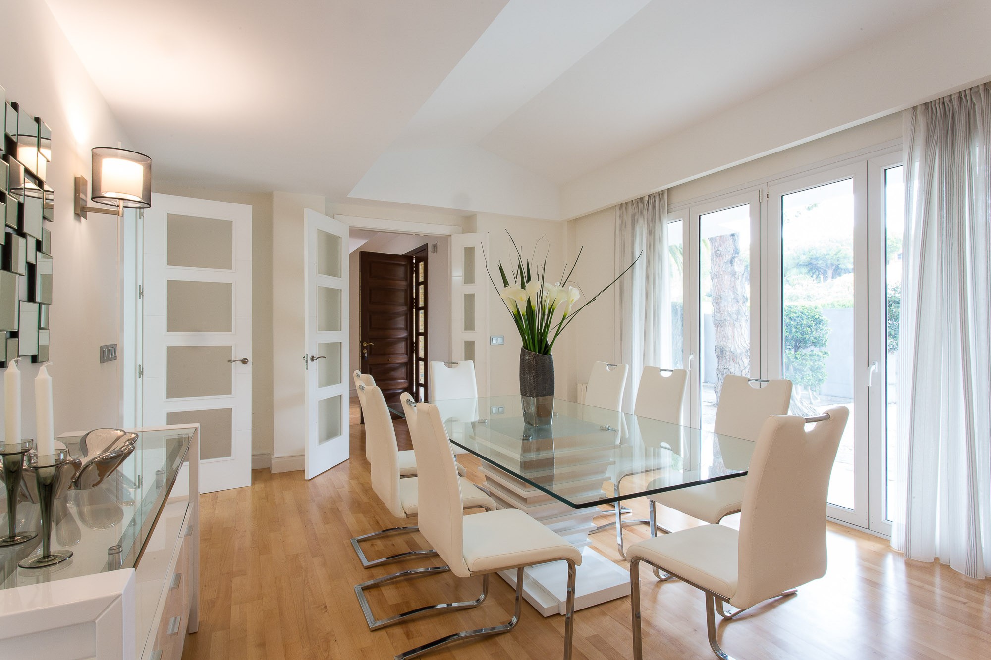 Outdoors, huge palm fronds and a large swimming pool offer respite from the Spanish sun, while indoors, modern Scandinavian style welcomes the family to come together. Play a round of billiards or settle in for a movie on the large-screen television. Mix your favourite cocktail at the bar or light a log in the wood-burning fireplace. Gather around the table for a family meal, or call the chauffeur to take you into Marbella, Cabo Pino or Puerto Banus for fine dining and designer shopping.
