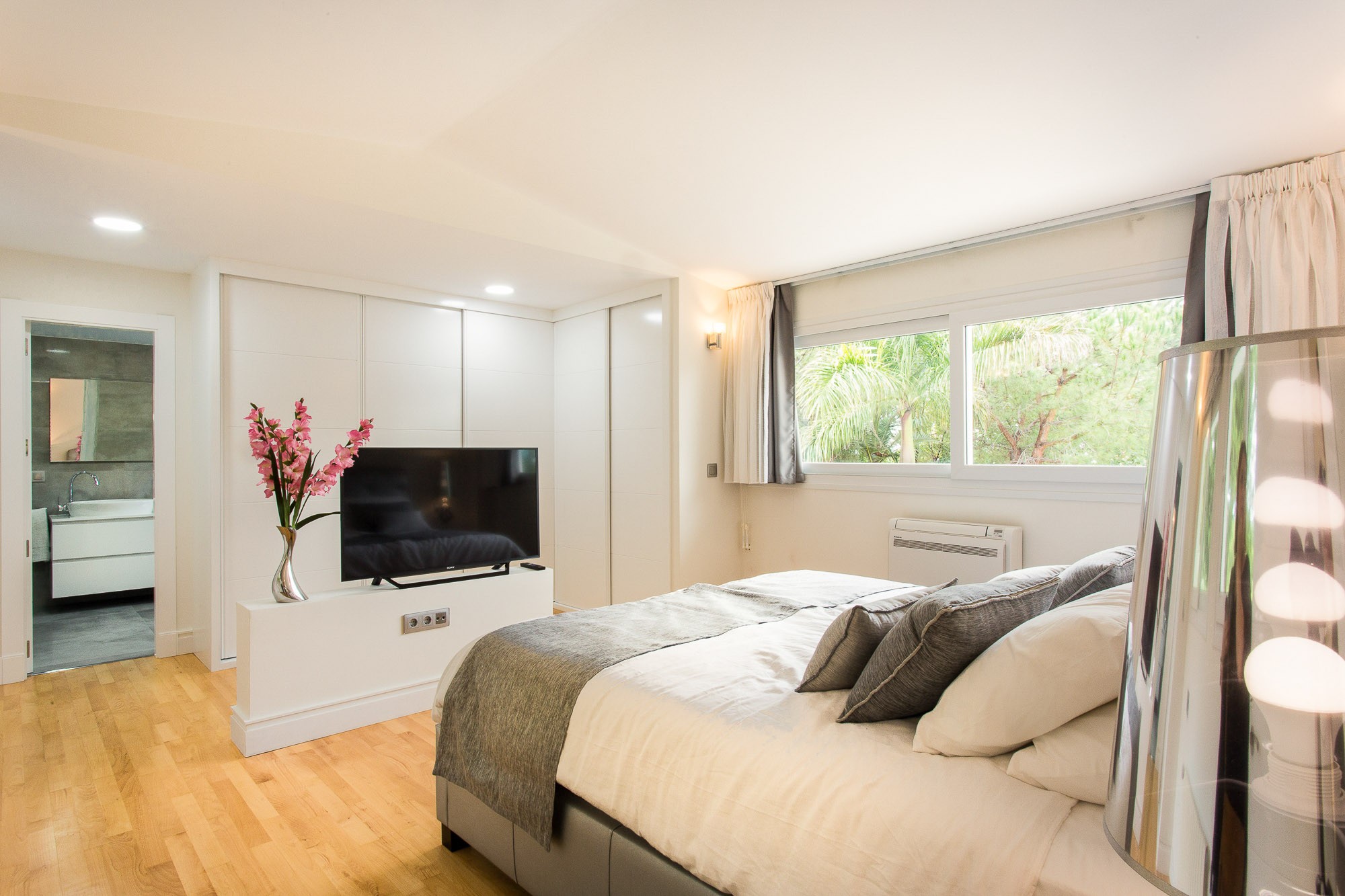 Villa Anja, newly renovated and wholly modern, is a villa of dual nationalities. Both invitingly Spanish and elegantly Scandinavian, this is a home that balances the warmth of its location with the sophistication of its contemporary design: ultra-modern interiors that overlook sweeping Mediterranean views, clean lines to complement exotic gardens, and pops of fuchsia and turquoise to balance simple whites and greys.