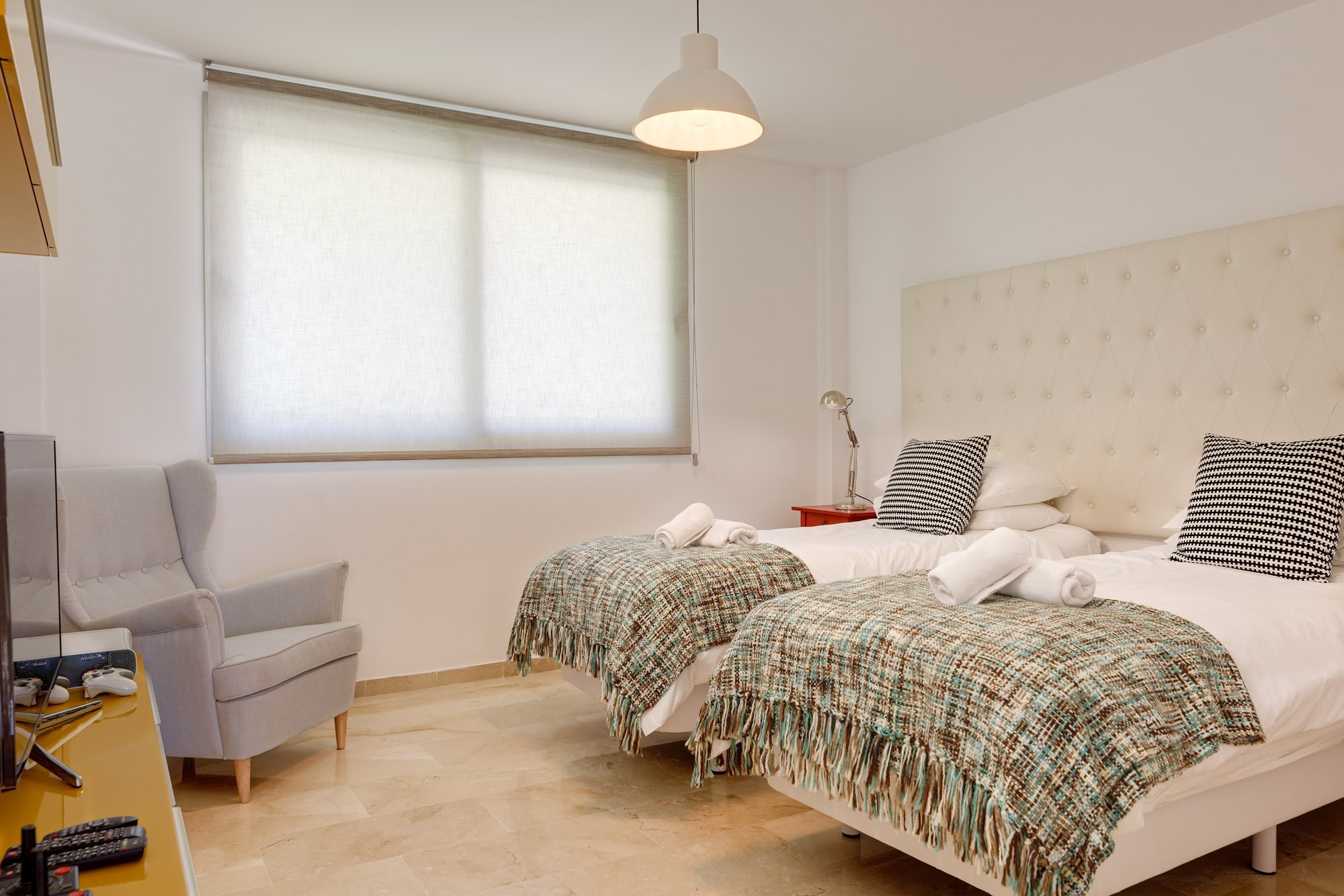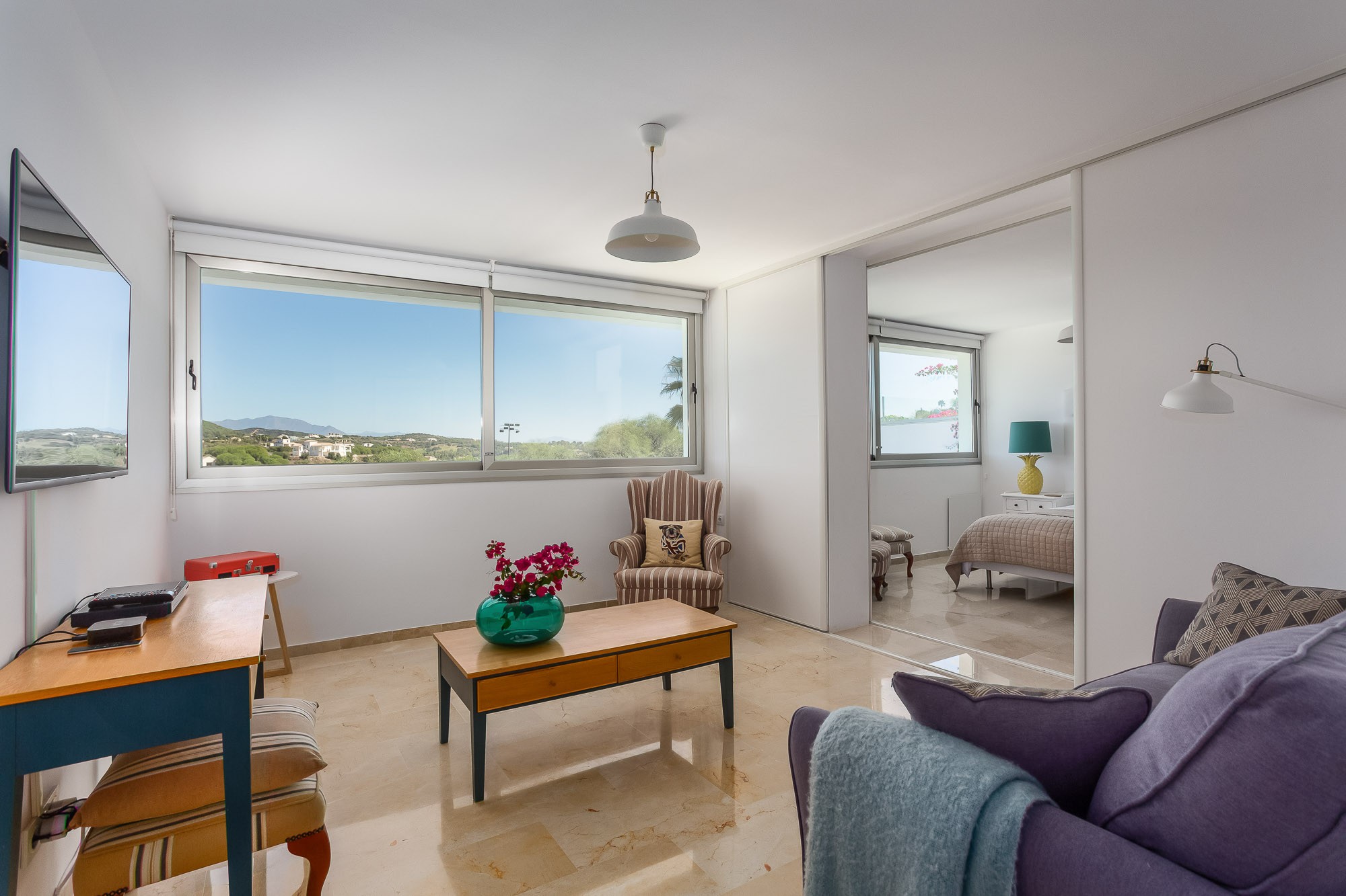 Radiating Ibiza style and Sotogrande calm, Villa Artea is a modern villa of sleek white with pops of artistic colour, a cool and trendy hangout for friends and families.