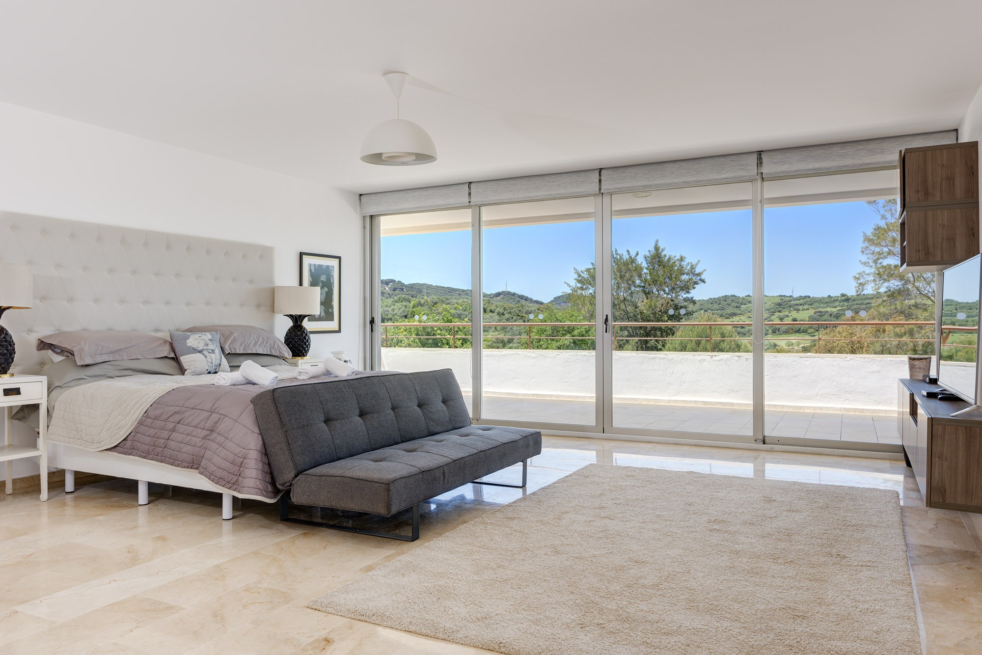 Of course, if you can drag yourself away from the villa, the sights of Sotogrande introduce you to the beauty of southern Spain. You’re just steps from amazing countryside and green golf courses (Valderrama & La Reserva courses, just 5 minutes), from the Sotogrande Marina and Santa Maria Polo Club, from Gibraltar shopping and history, from equestrian events and music festivals. And within an hour, the nightlife of Marbella and Estepona, the beach paradises of Tarifa and Costa de la Luz, and the culture of Morocco (45-minute ferry ride).
