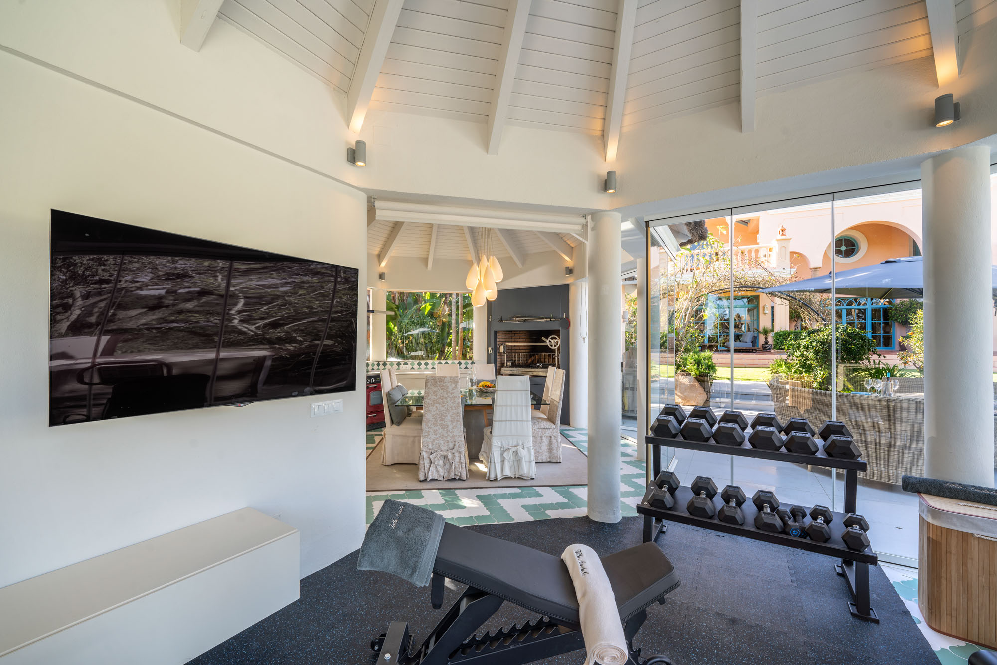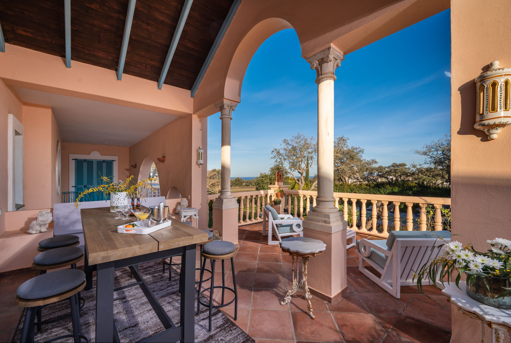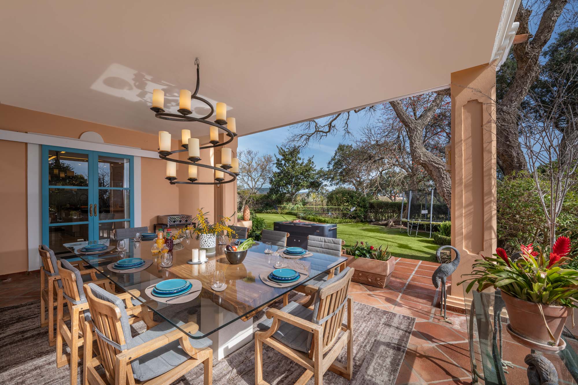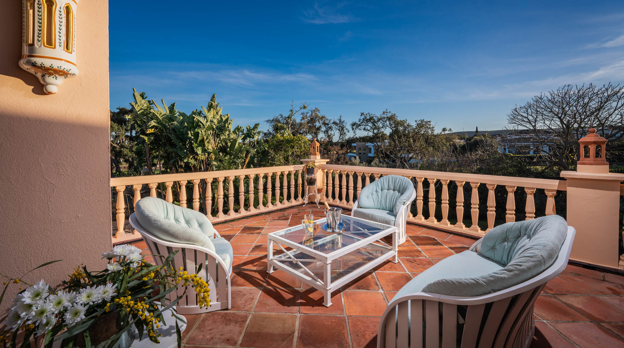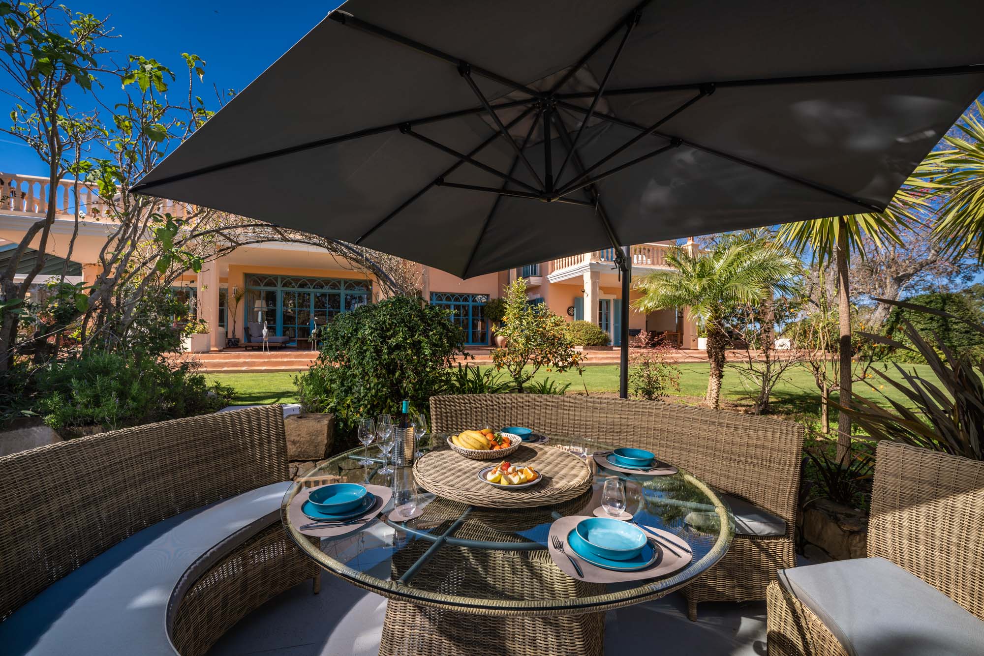 Upstairs, the main terrace enjoys views to the golf course and each first floor bedroom has access to the terrace. Downstairs, the main terrace occupies the length of the villa and features a central lounge area and dining spaces on both sides.