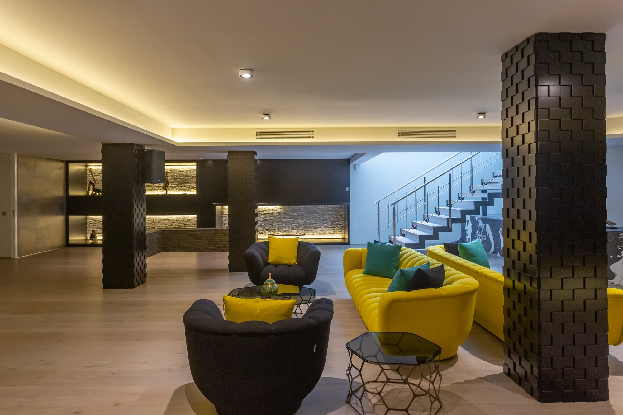 So you see modern, gold-flecked marble tiles mixing with beautifully warm, hand-made Persian carpets and Indian velvets. Eye-catching design pieces dot the place, from a trio of huge birds’ nest lights above the main staircase, to high-backed design chairs, vibrant design sofas and splashes of colour in the soft furnishings.