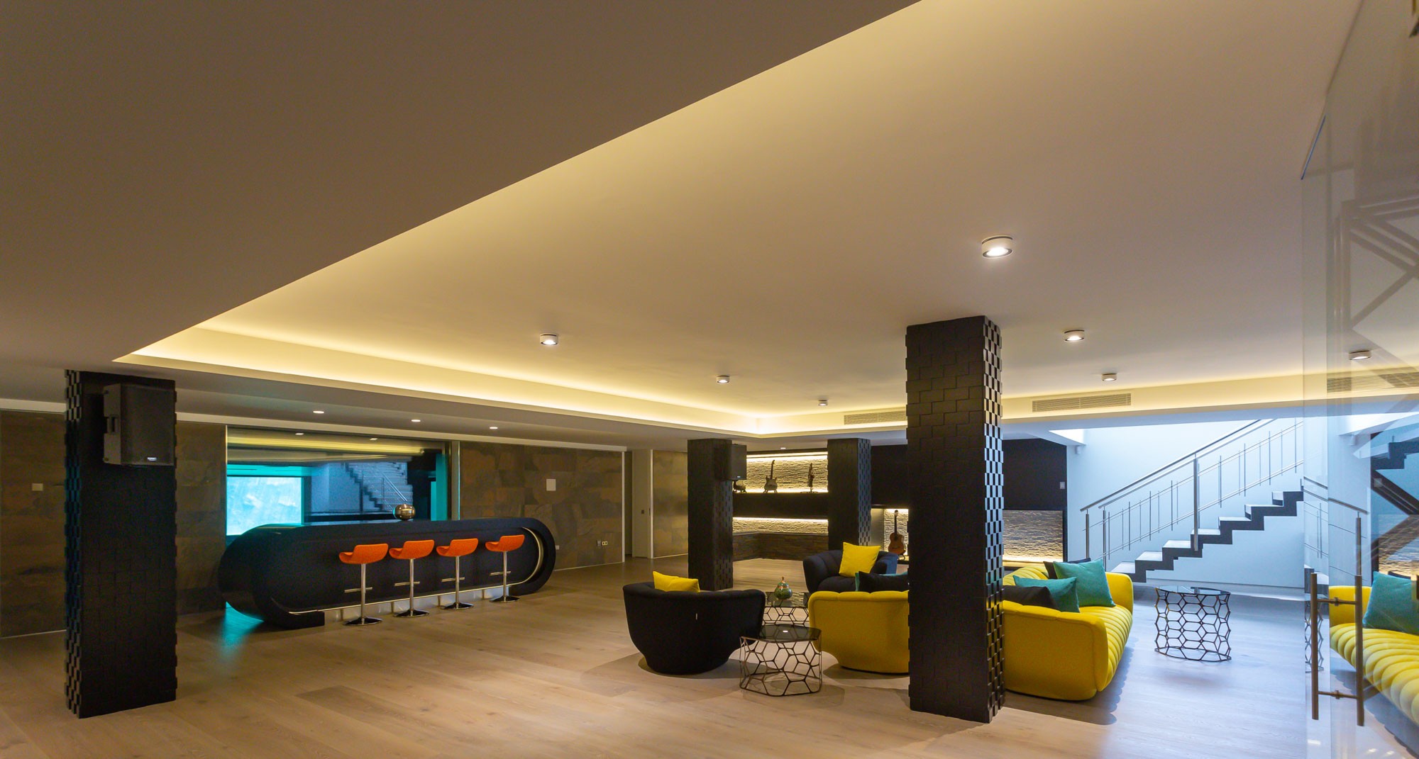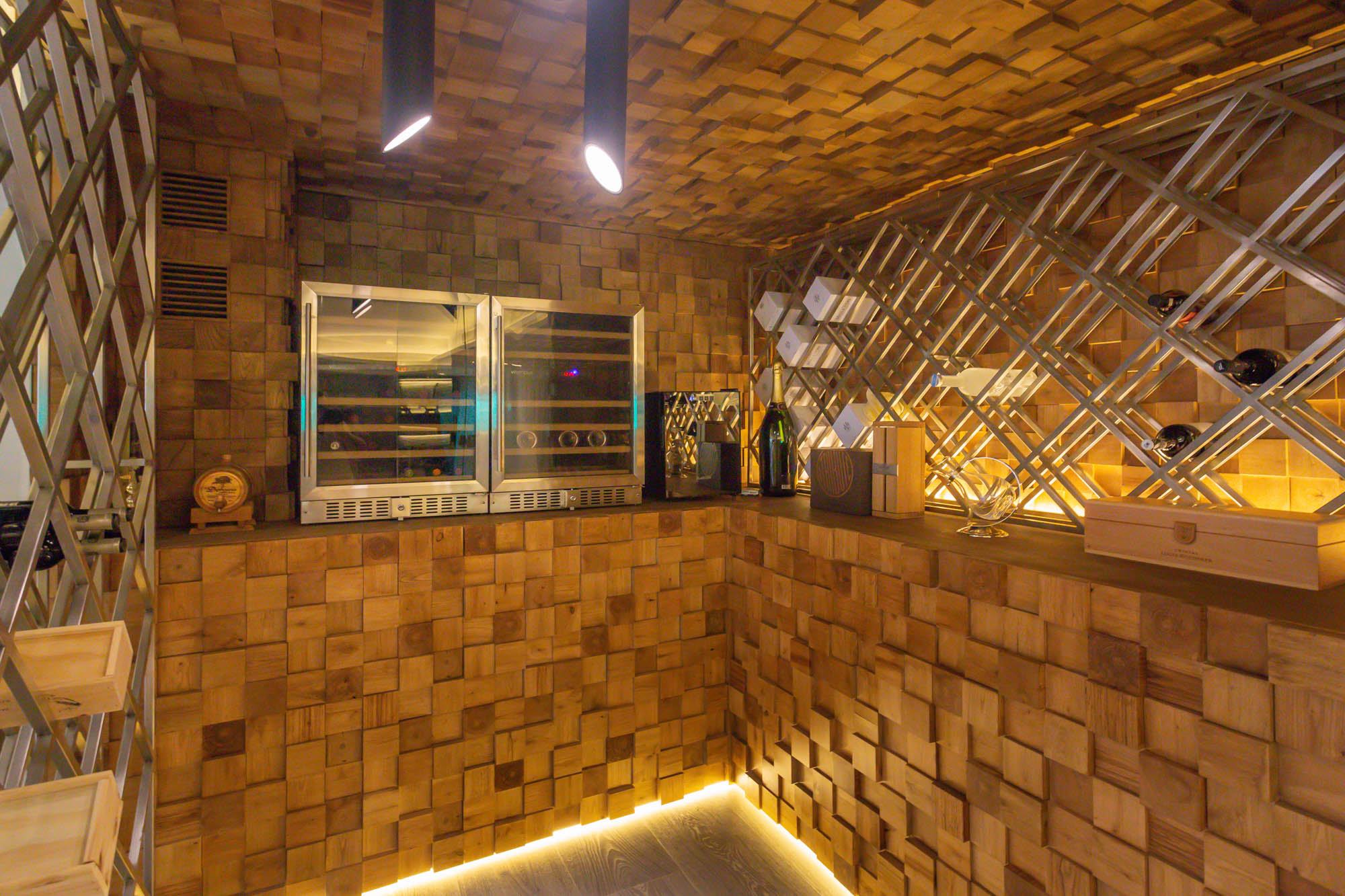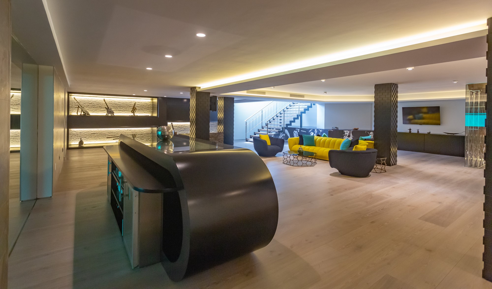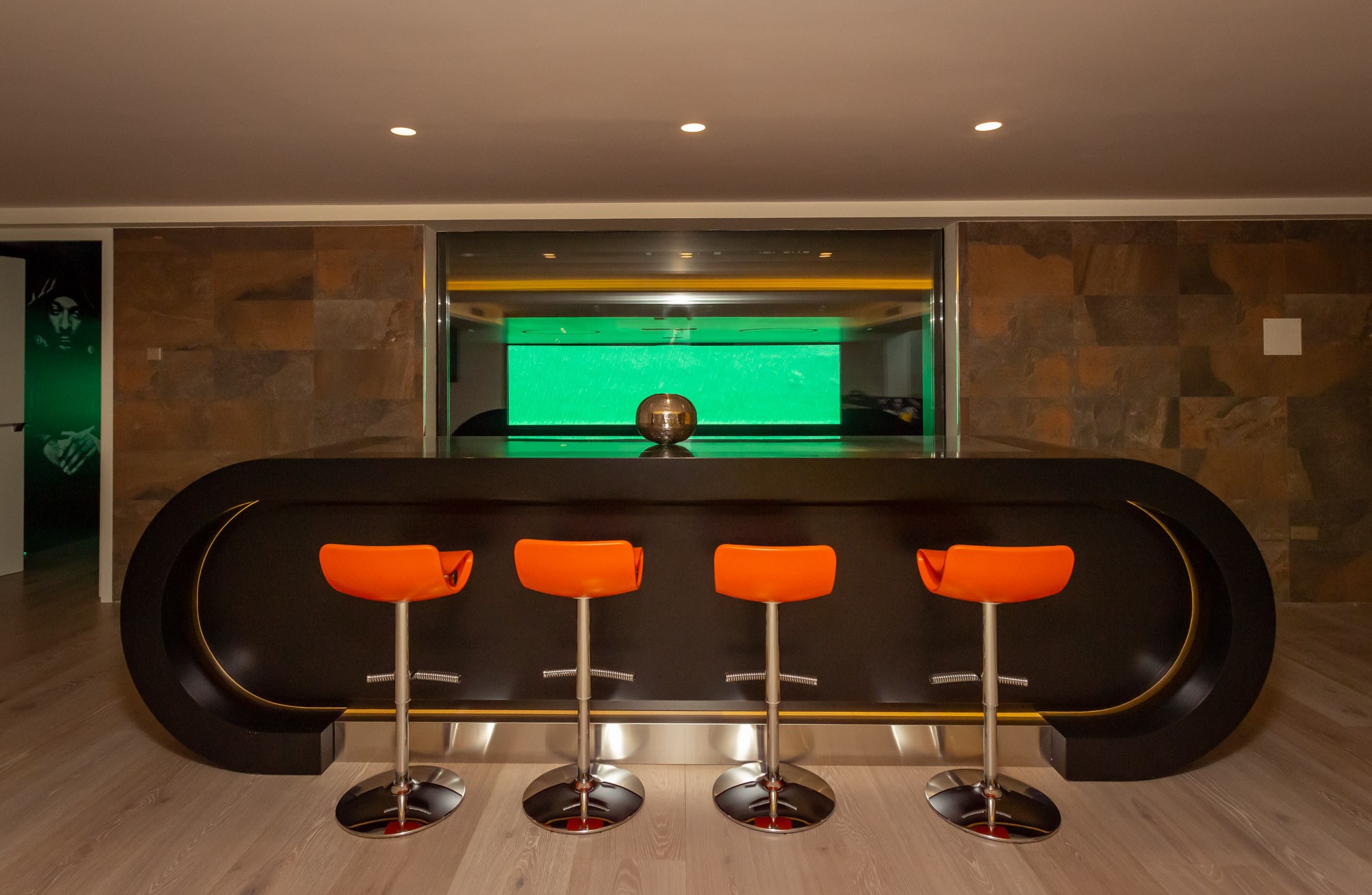 Entertainment area with stylish cocktail bar, bodega and underwater viewing