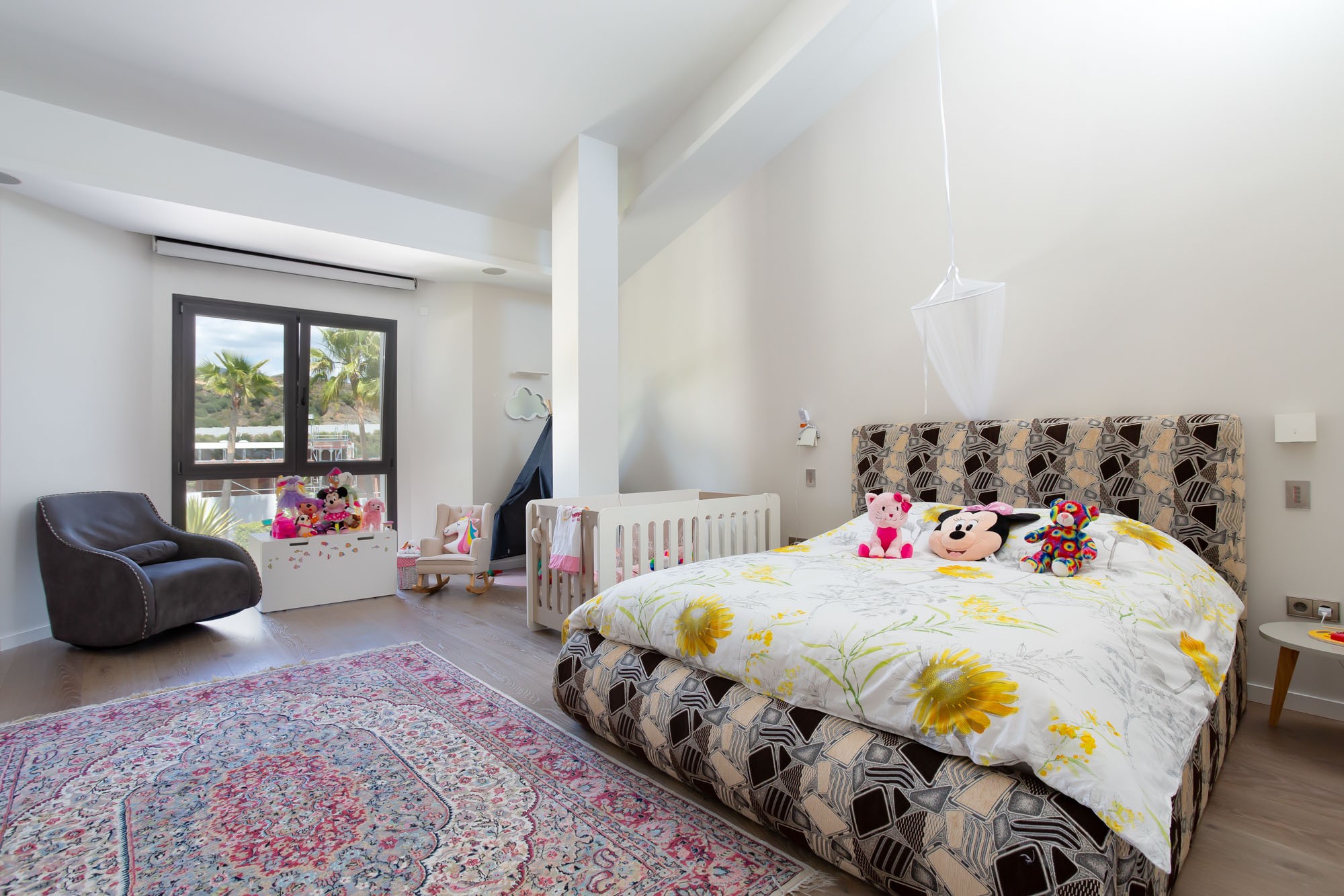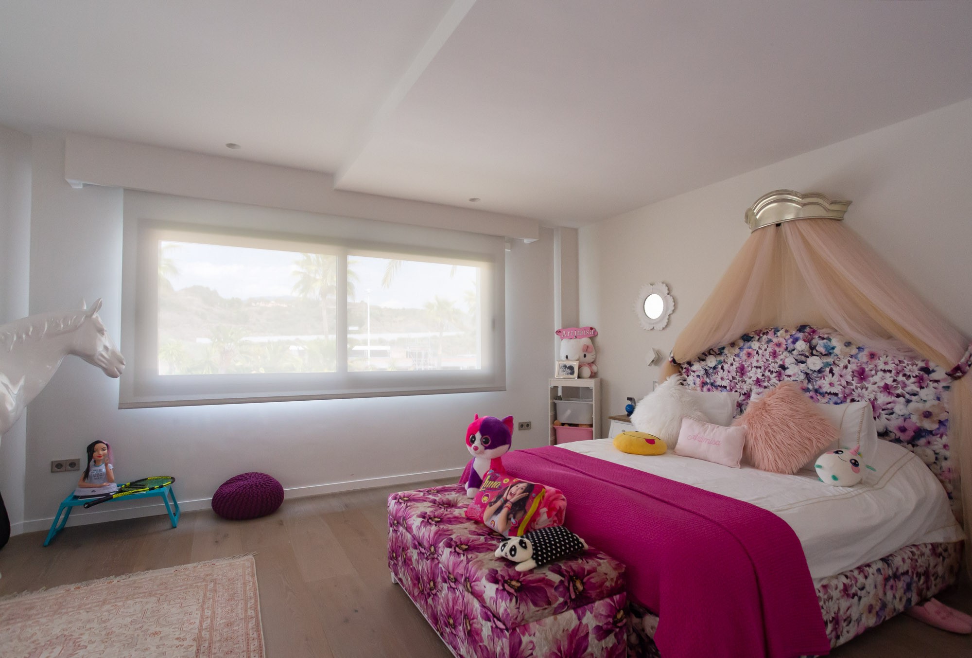 Bedroom 7: The last bedroom on the top floor is currently a children’s room with a four-poster bed, but it could easily be made into a guest suite by changing the bed linens and cushions, and adding a sofa or chairs. Excellent as a principal guest room as it enjoys a vast private terrace. Comes with an all-white en-suite shower room.