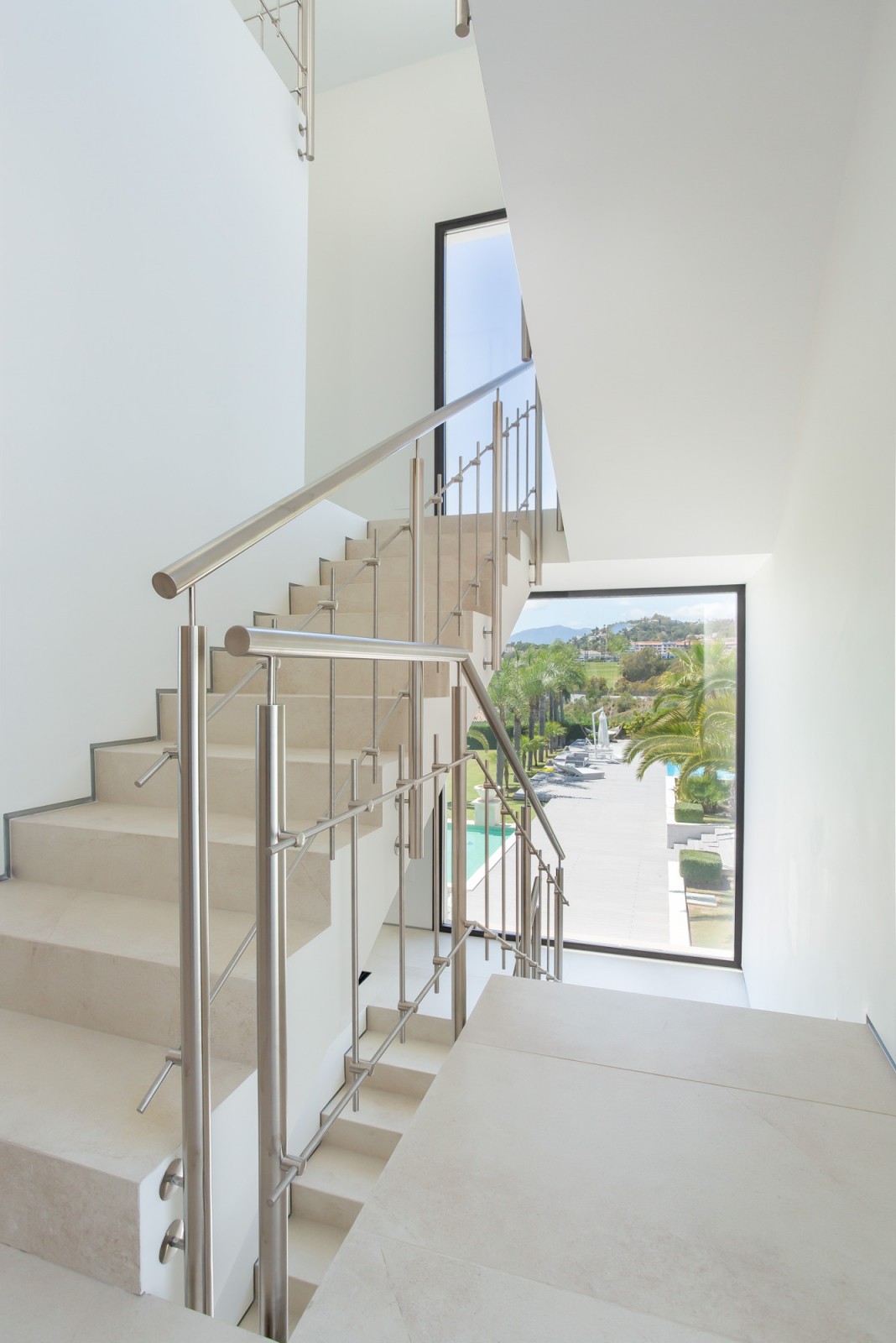 Nueva Andalucia is a very upmarket area close to Puerto Banus to the west of Marbella. The standard of living here is excellent with regular security and highly maintained urbanisations. The nearest shops and swish cafes are a few minutes’ drive (just 3km) away, while Puerto Banus with its beaches and nightlife. Golf courses surround the villa, with the highly regarded Los Naranjos golf club within walking distance.