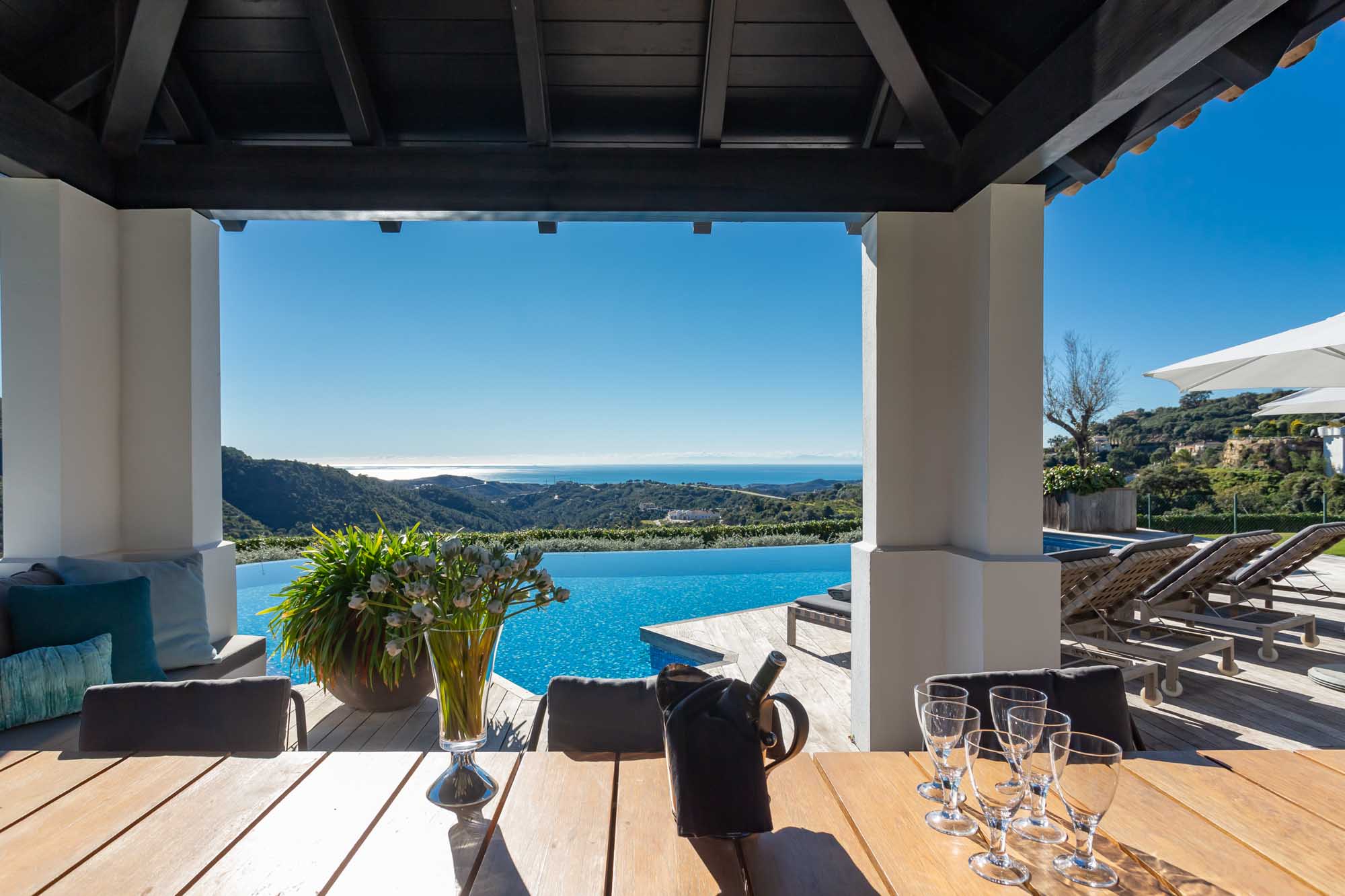 In the hills above Marbella, Villa Chantay represents the apex both of soaring vistas and of indoor-outdoor living.