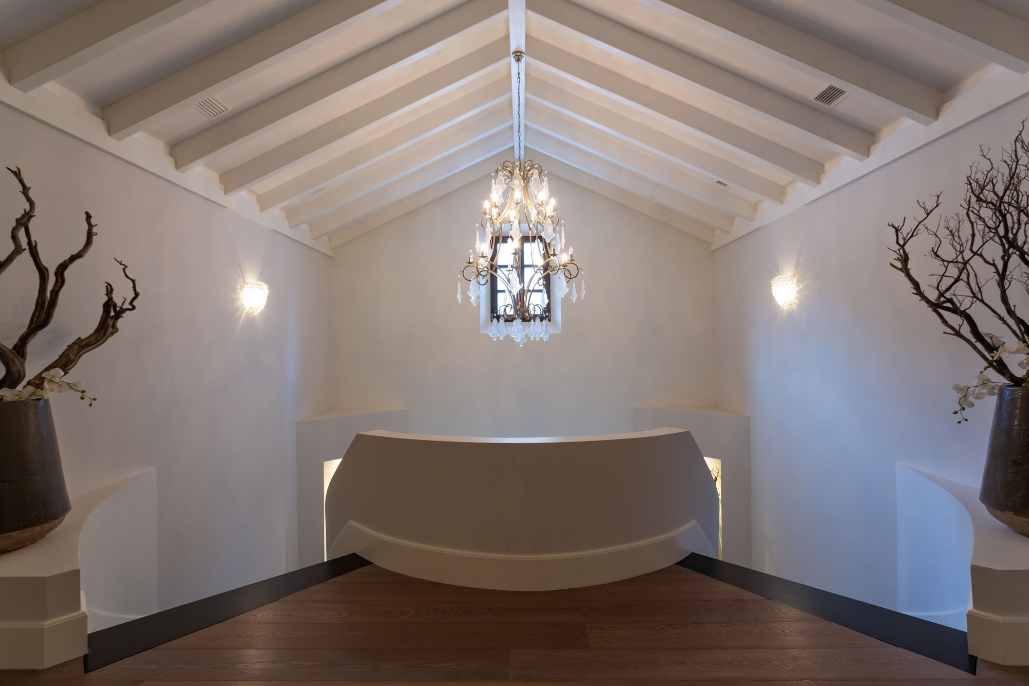 Embracing the memories of the past and the modern lines of the contemporary Villa Chantay resides at the intersection of old and new. Here, sleek travertine flooring meets soaring ceilings, palettes of beachy blue-and-driftwood contrast with sleek black-and-white, curved arches welcome you to sleek lines, and wooden beams frame mountain and Mediterranean views.
