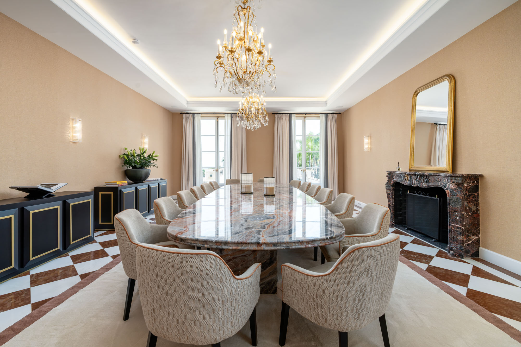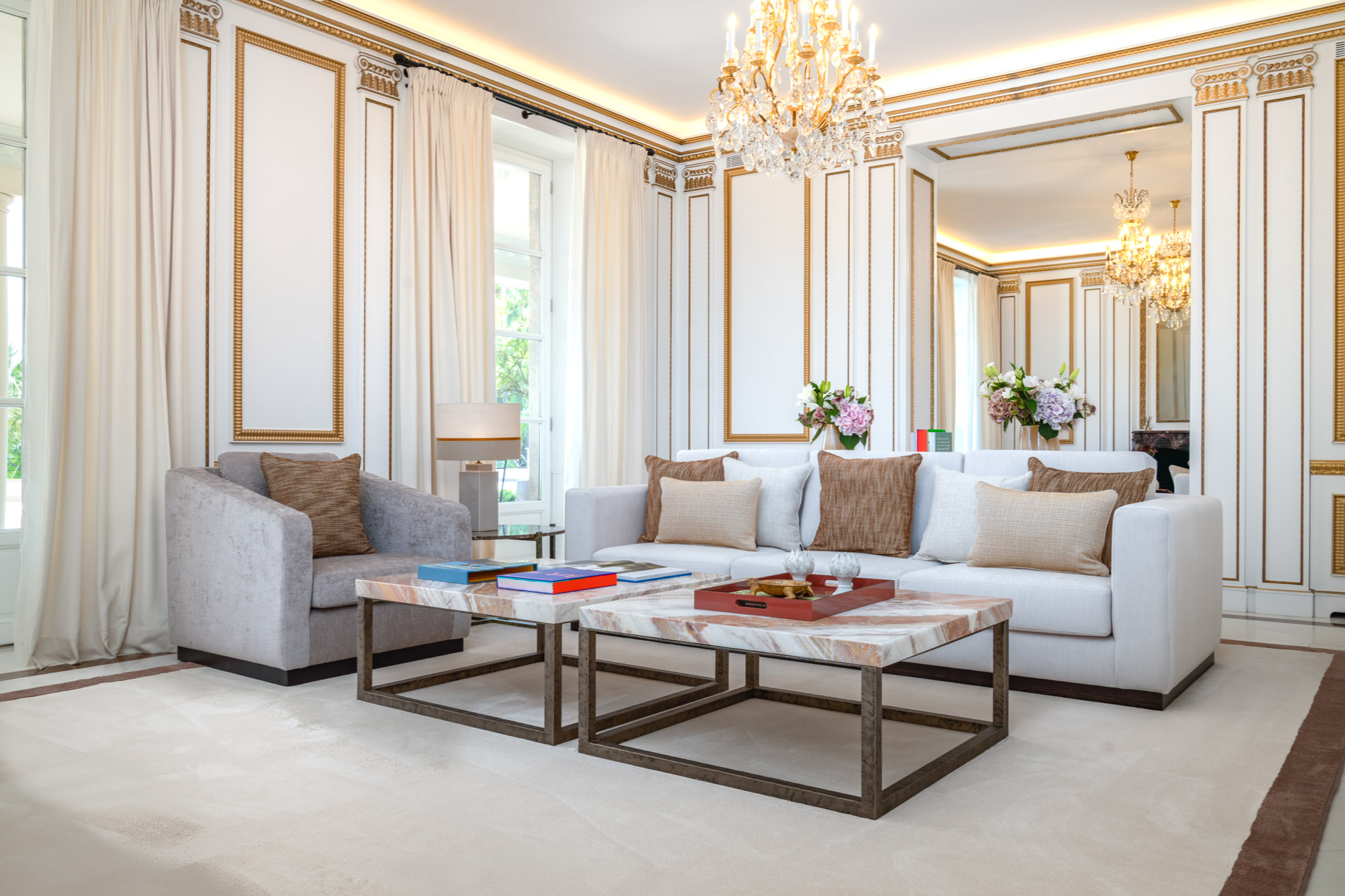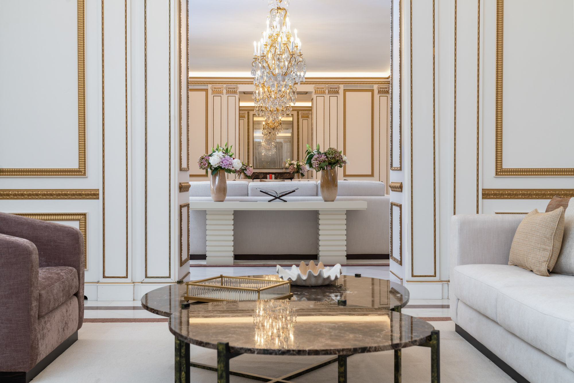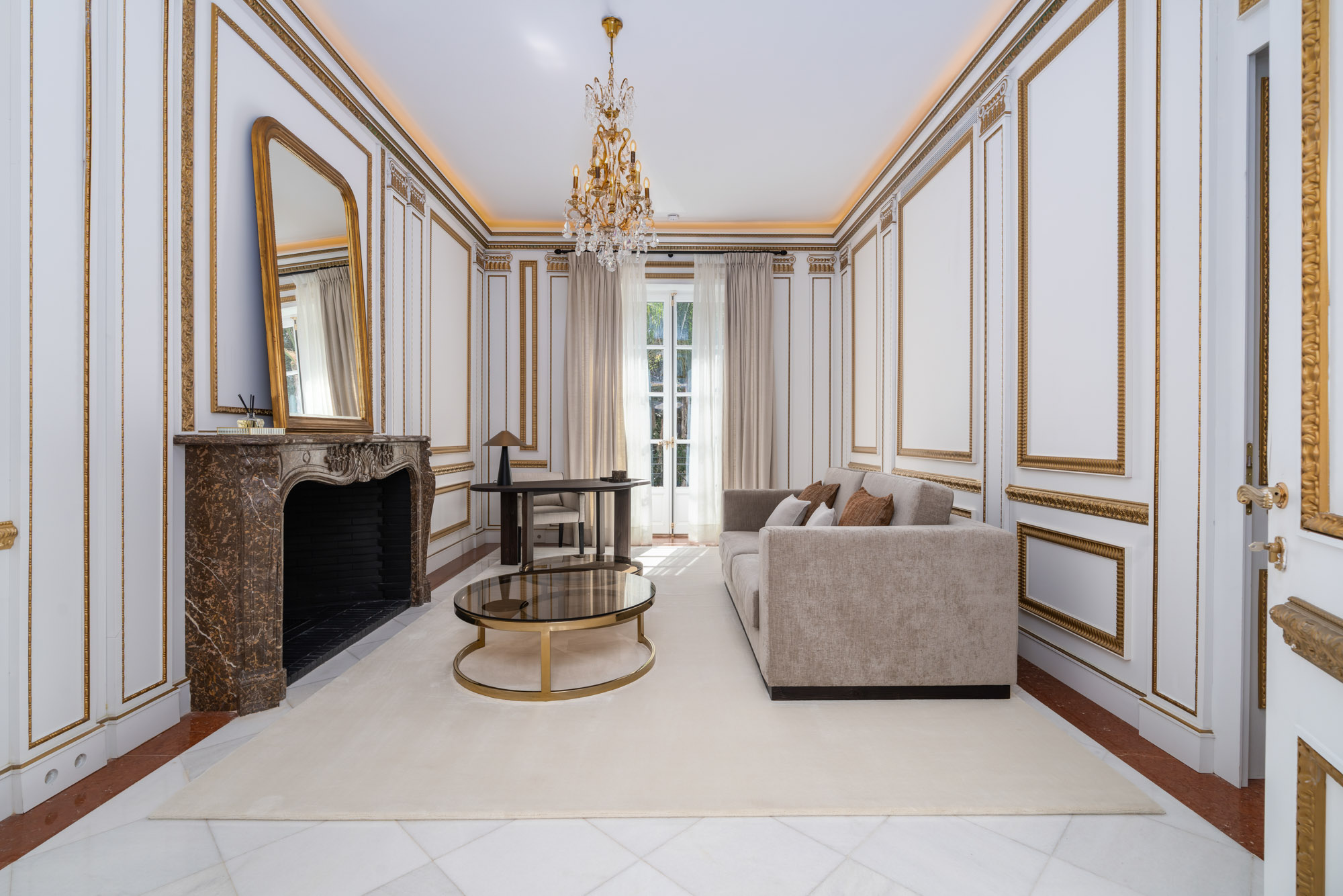 Every element of the property – from the polished marble interiors to the gold-framed mirrors and custom lighting – has been carefully considered to create an atmosphere timeless elegance.