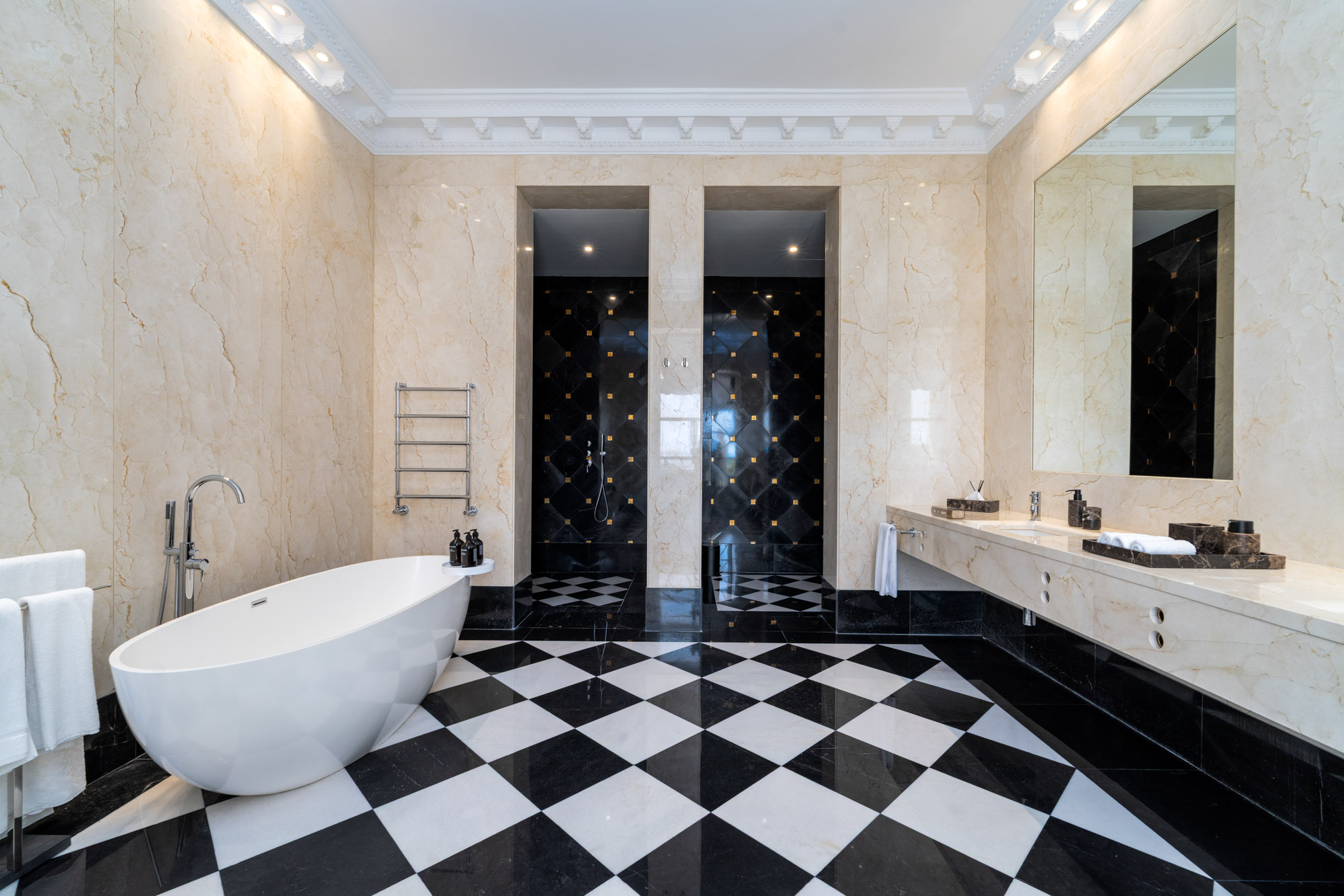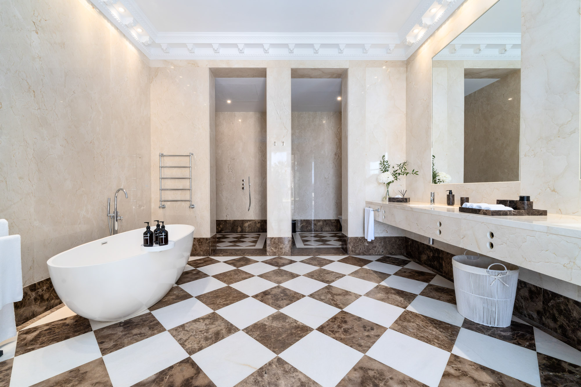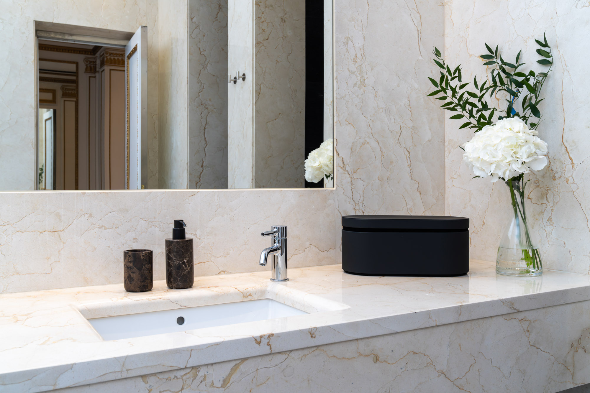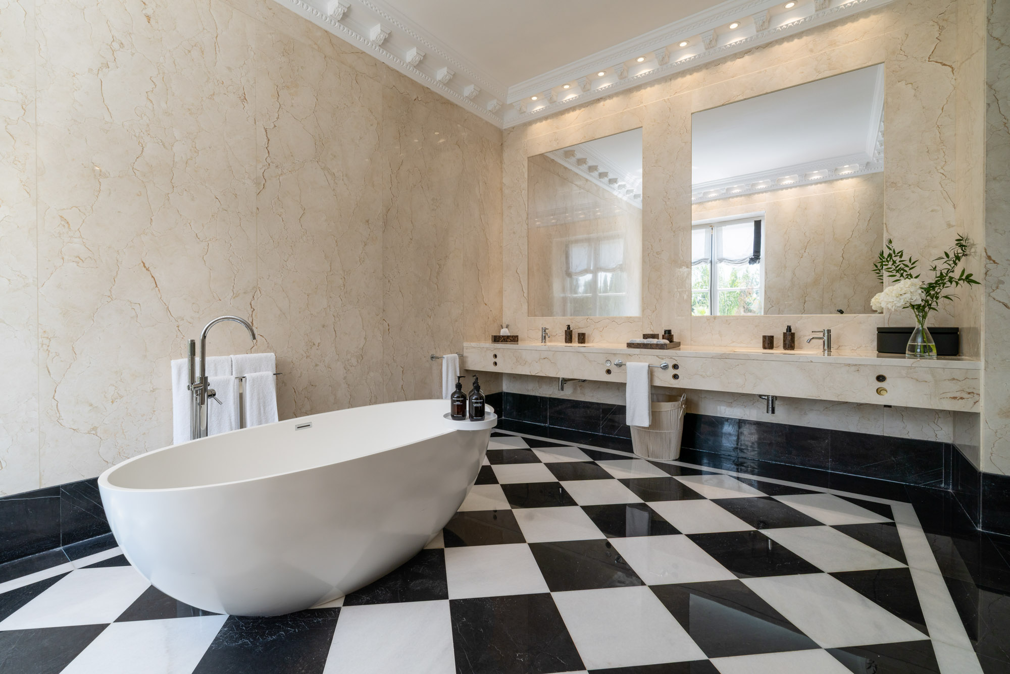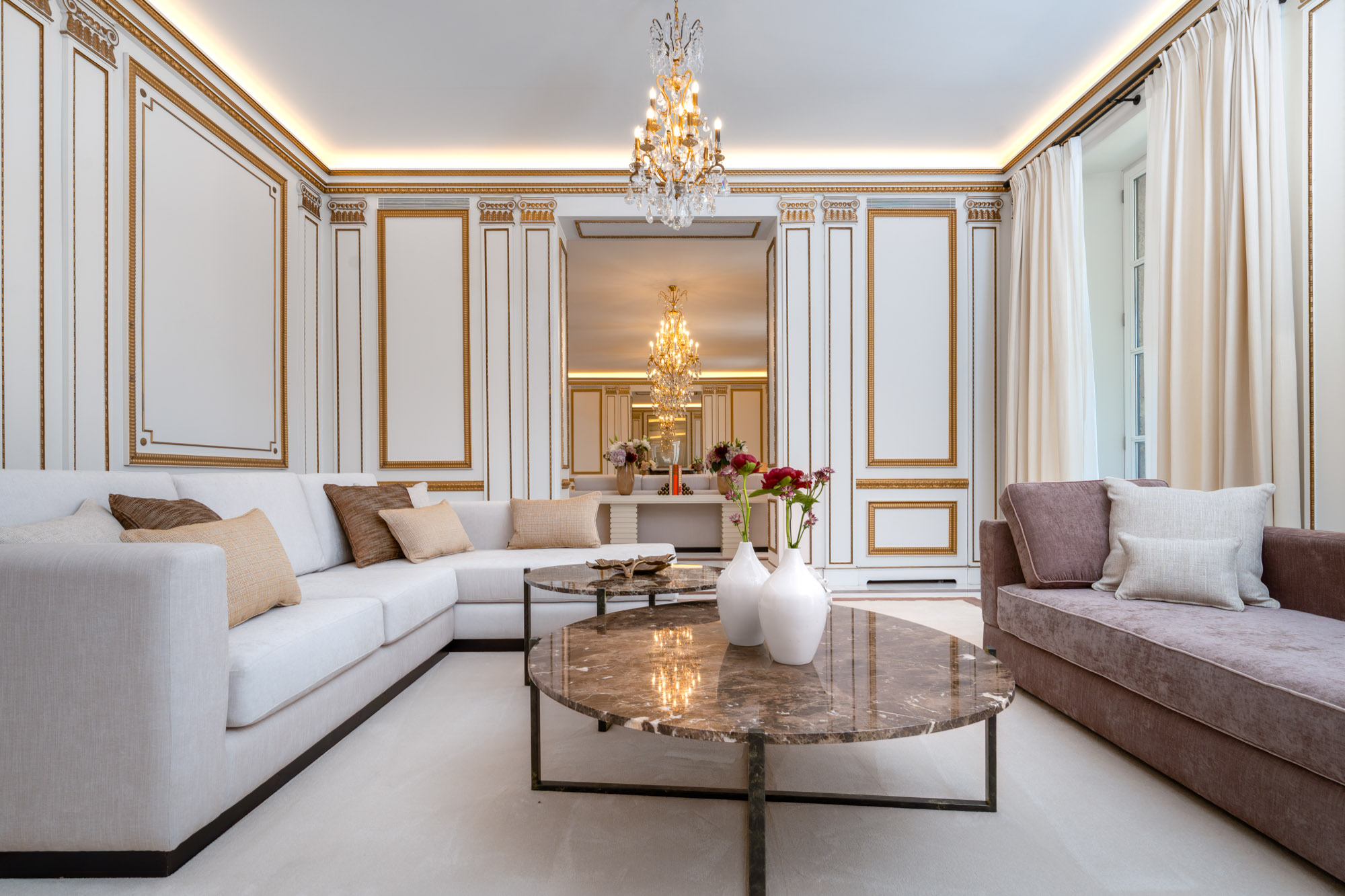 Every element of the property – from the polished marble interiors to the gold-framed mirrors and custom lighting – has been carefully considered to create an atmosphere timeless elegance.