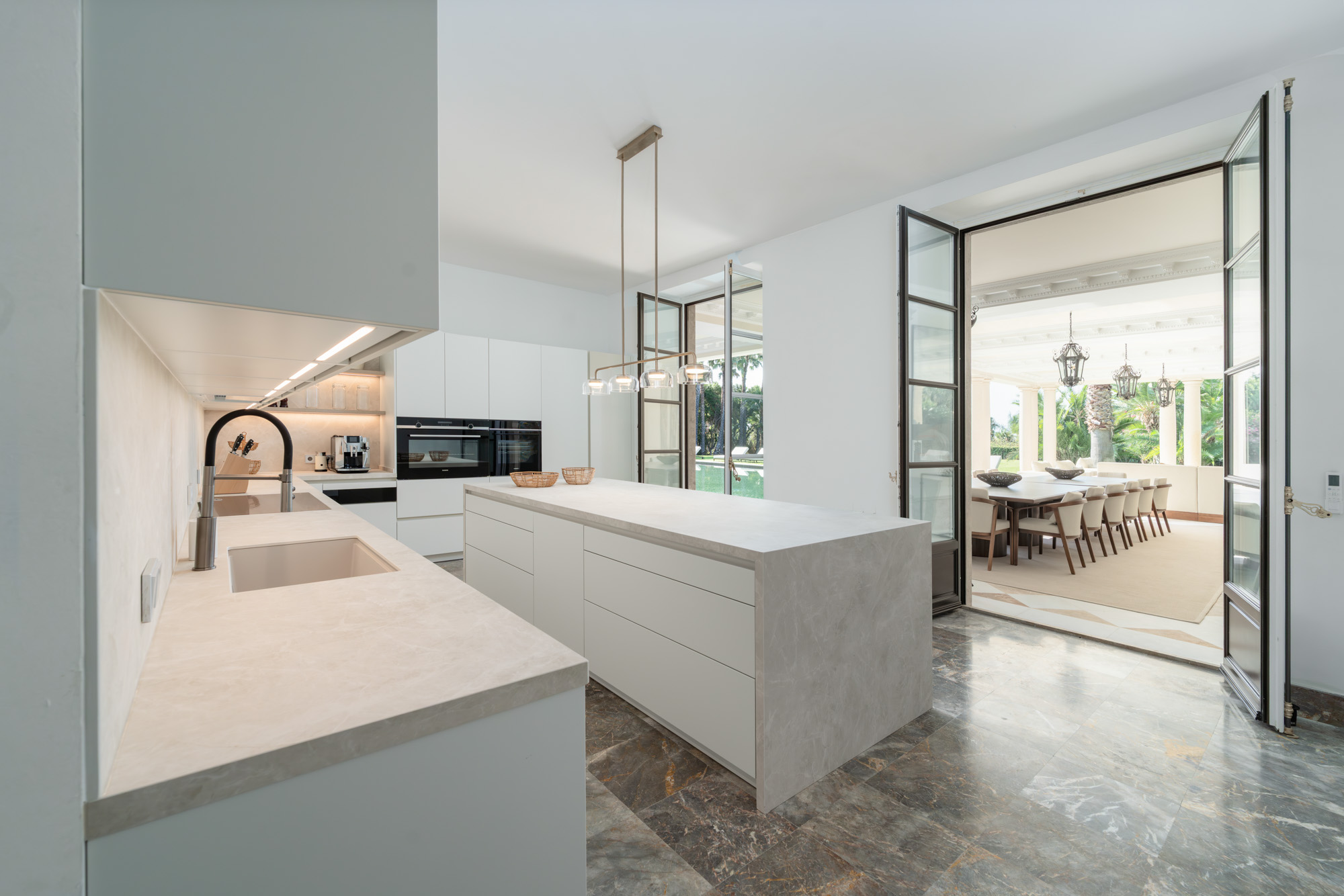 Villa Cristaux is cocooned against the backdrop of majestic Sierra Blanca, one of Marbella’s most exclusive residential enclaves. Ideally positioned between the beaches of the Golden Mile and the foothills of La Concha mountain, the area is known for its grand private estates, mature trees, and serene, leafy streets — offering total privacy just minutes from the heart of the action.