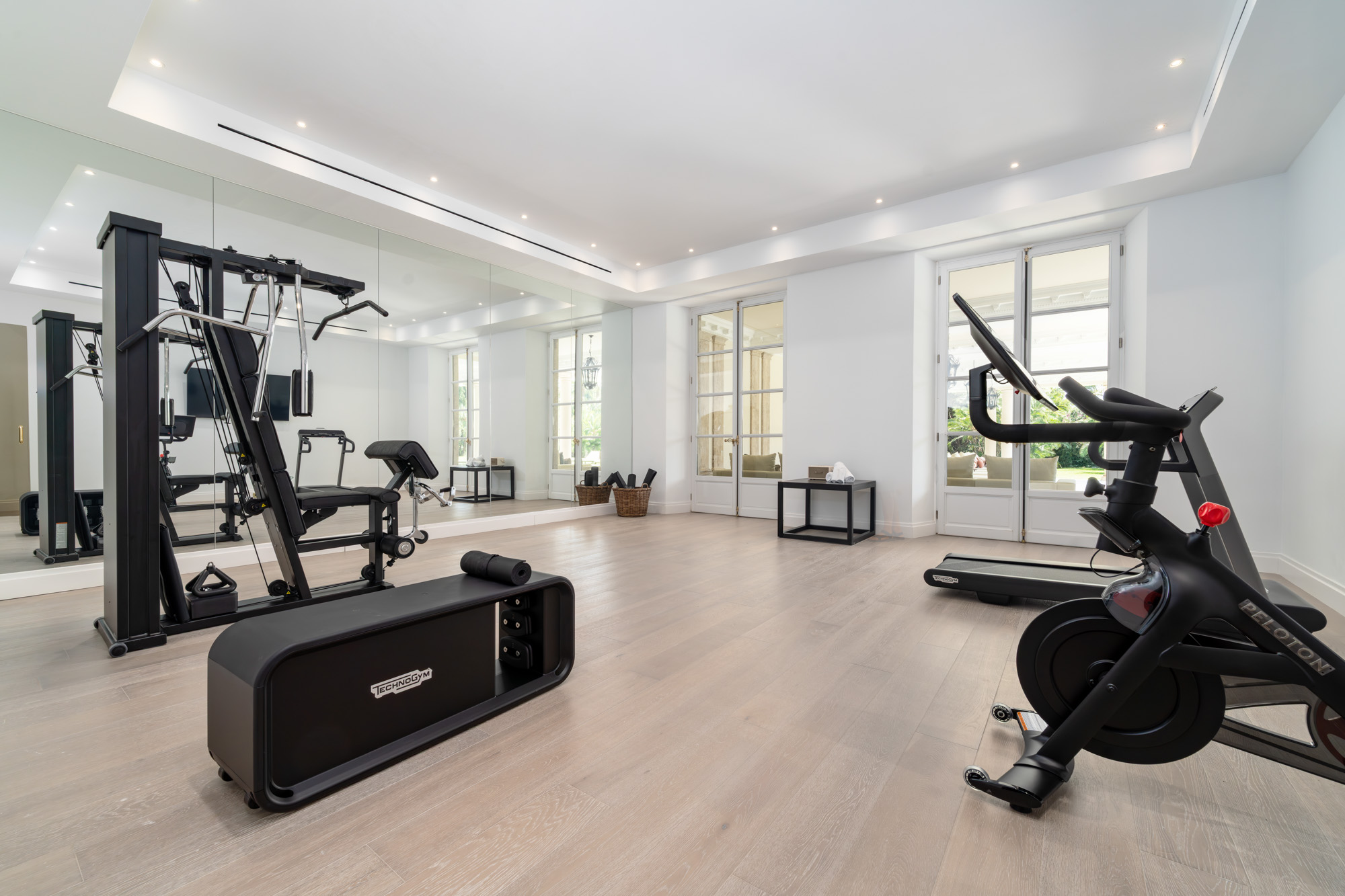 For those favouring a more active pace, the villa’s professional-grade gym is equipped with Technogym machines and features a sprung floor for low-impact movement. Floor-to-ceiling glass doors open directly onto the garden terrace, ensuring a seamless transition from workout to post-exercise swim.