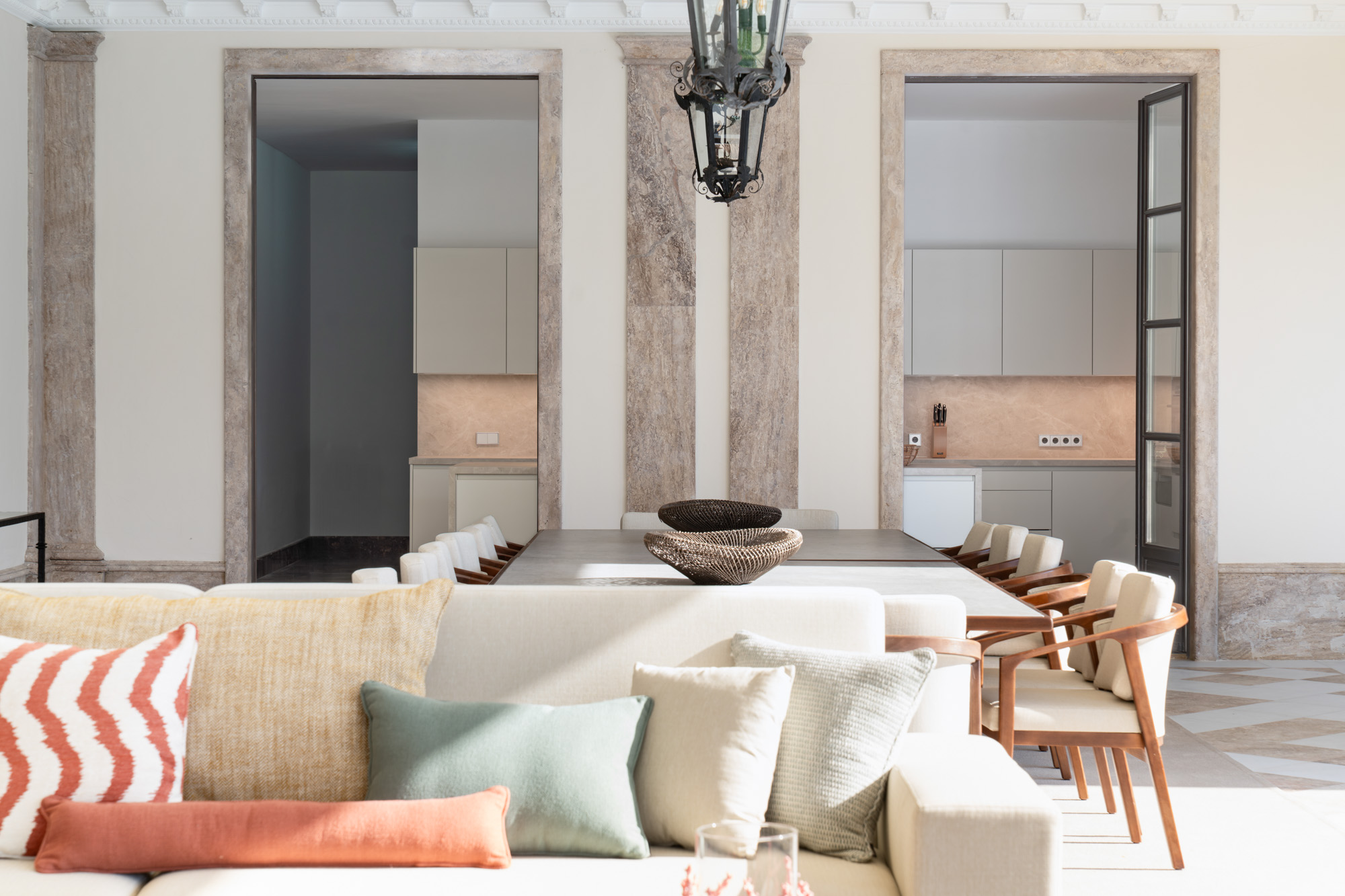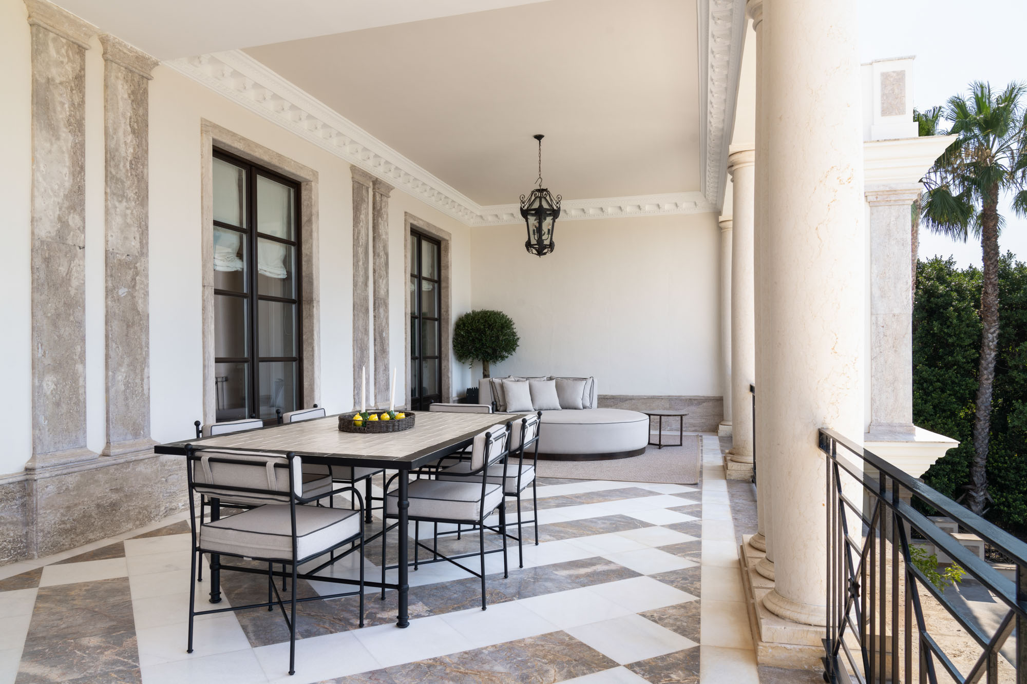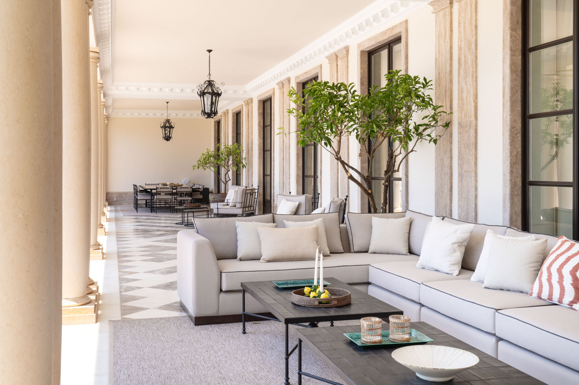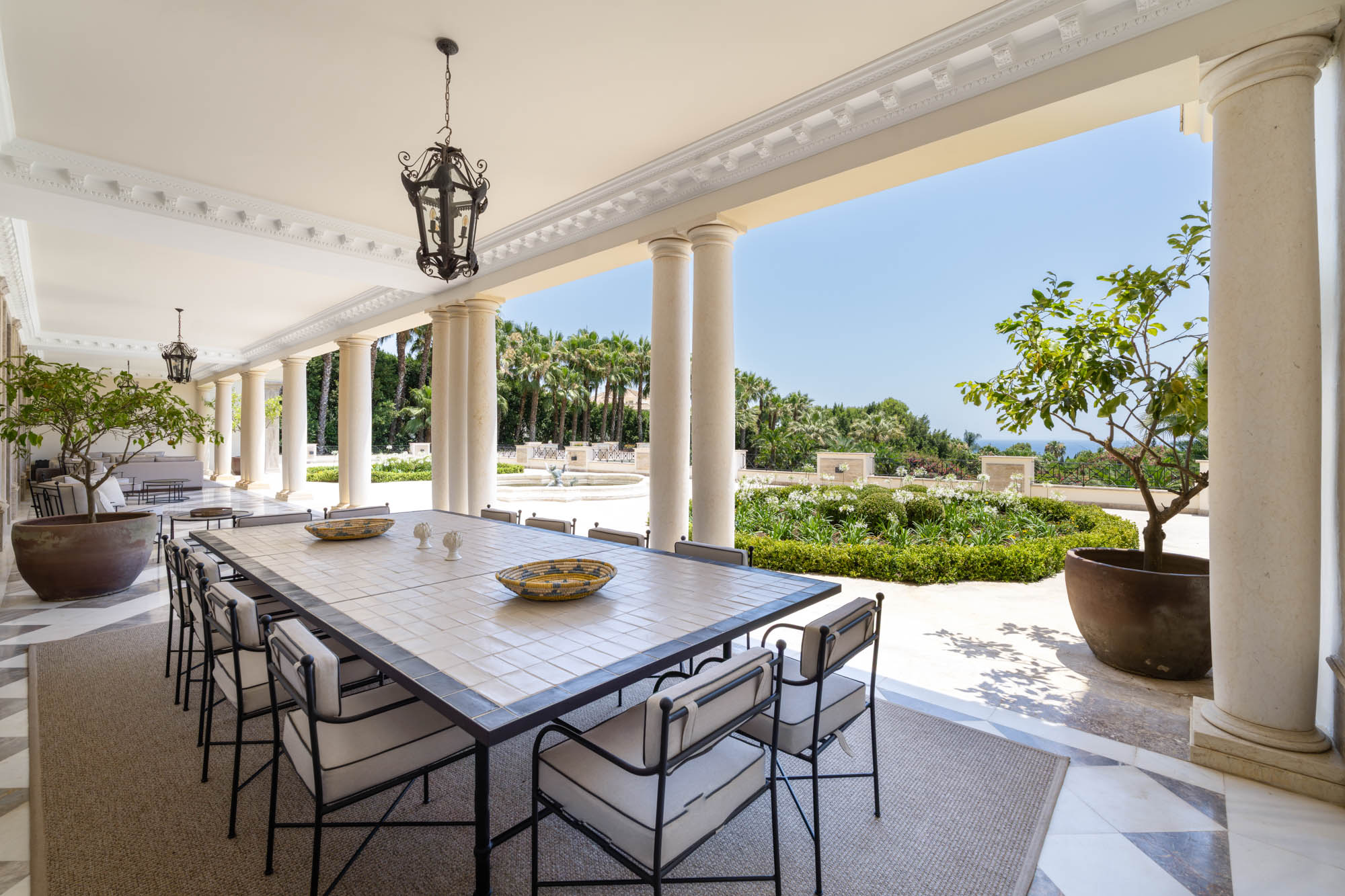 Multiple terraces provide further dining options, including a long outdoor table ideal for group lunches or evening receptions.