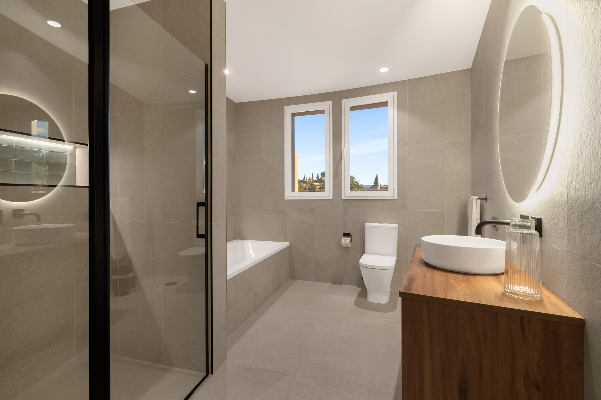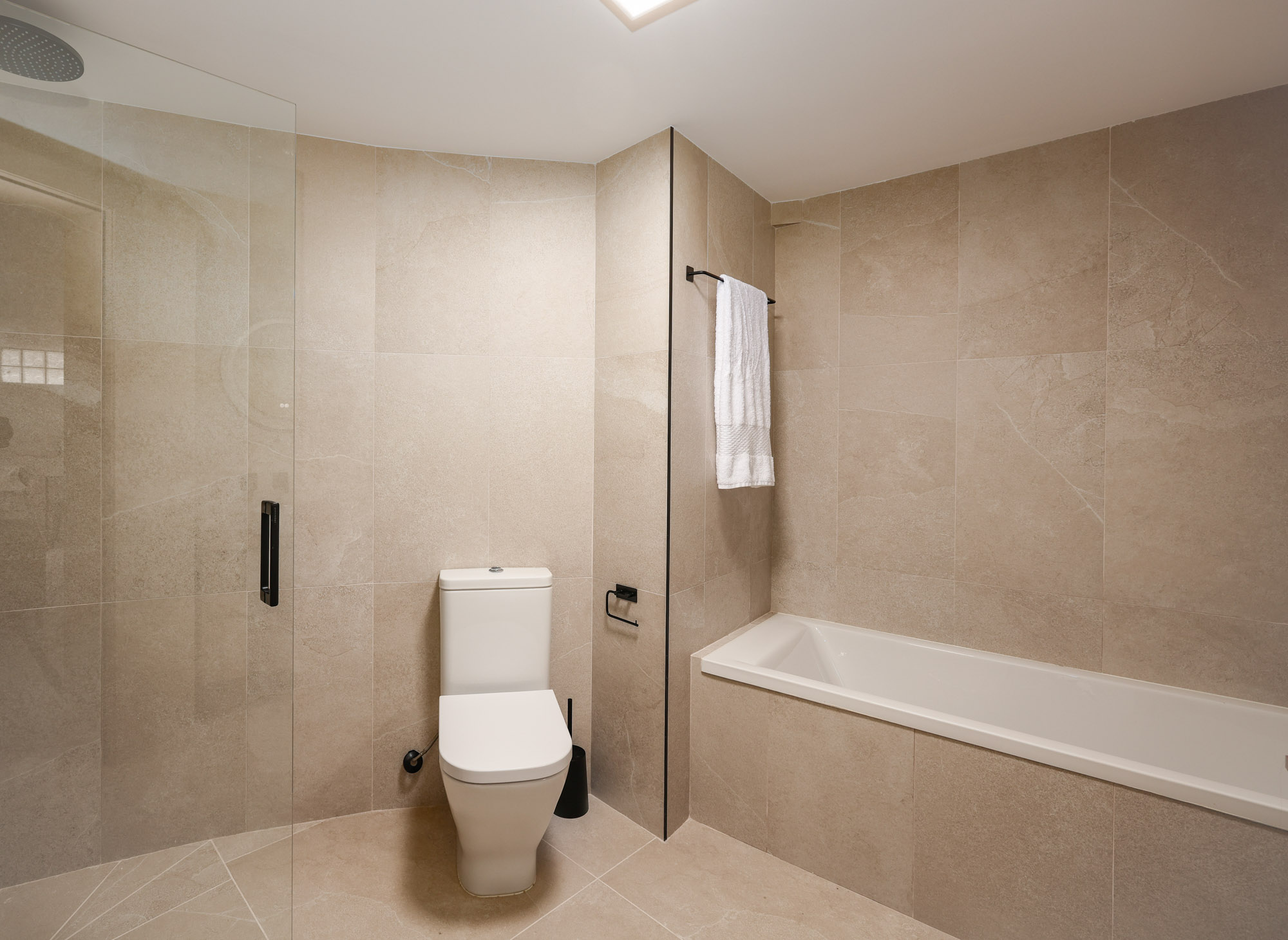 A well-proportioned en-suite includes both a bathtub and separate shower. Ideal as a family pairing with Bedroom 1.