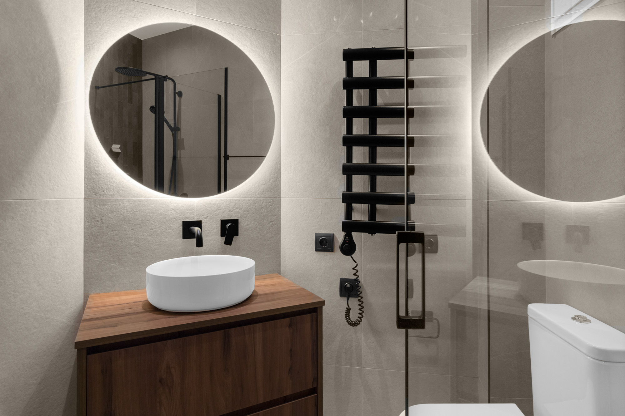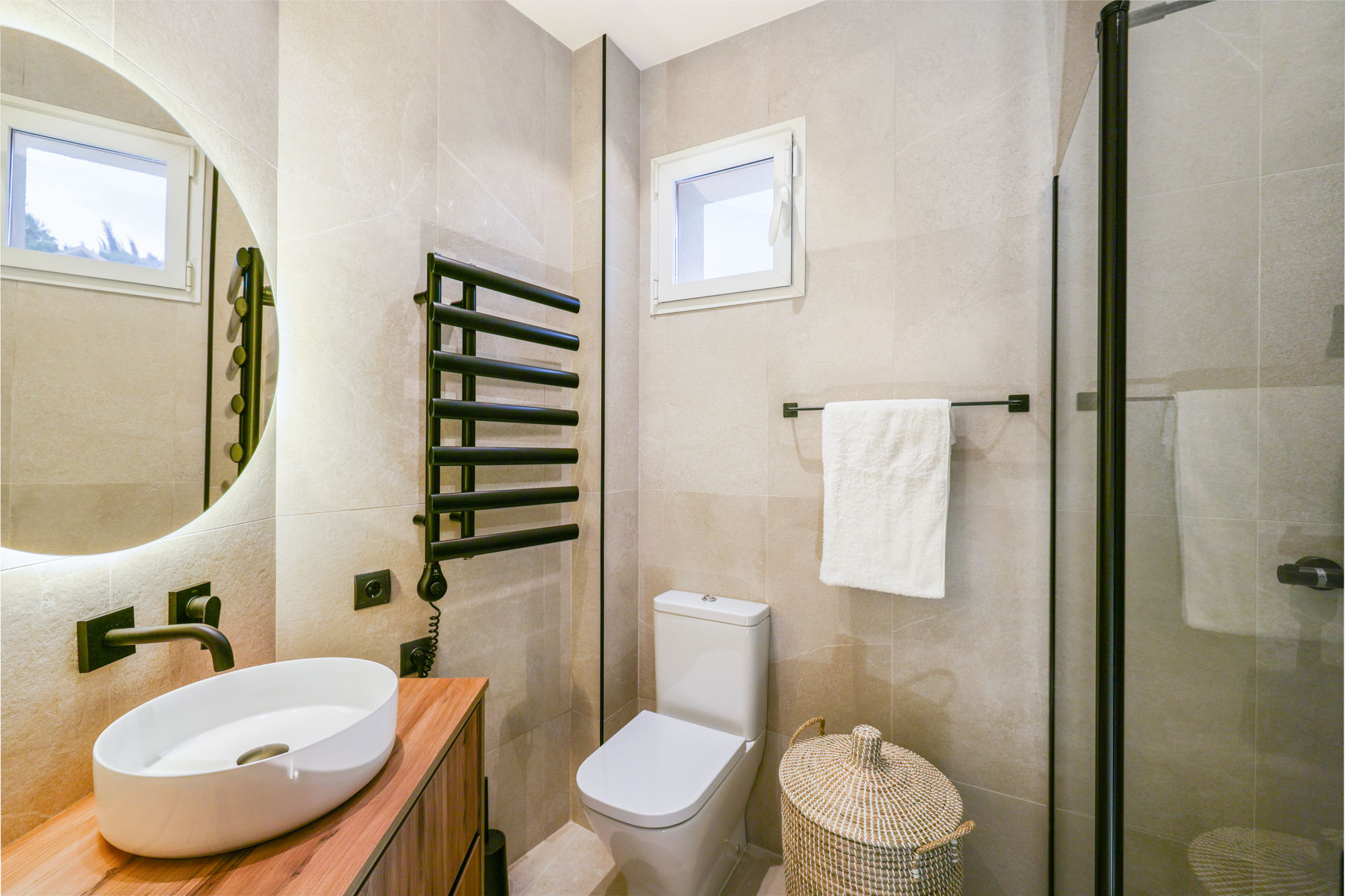 The en-suite shower room is sleek and modern.