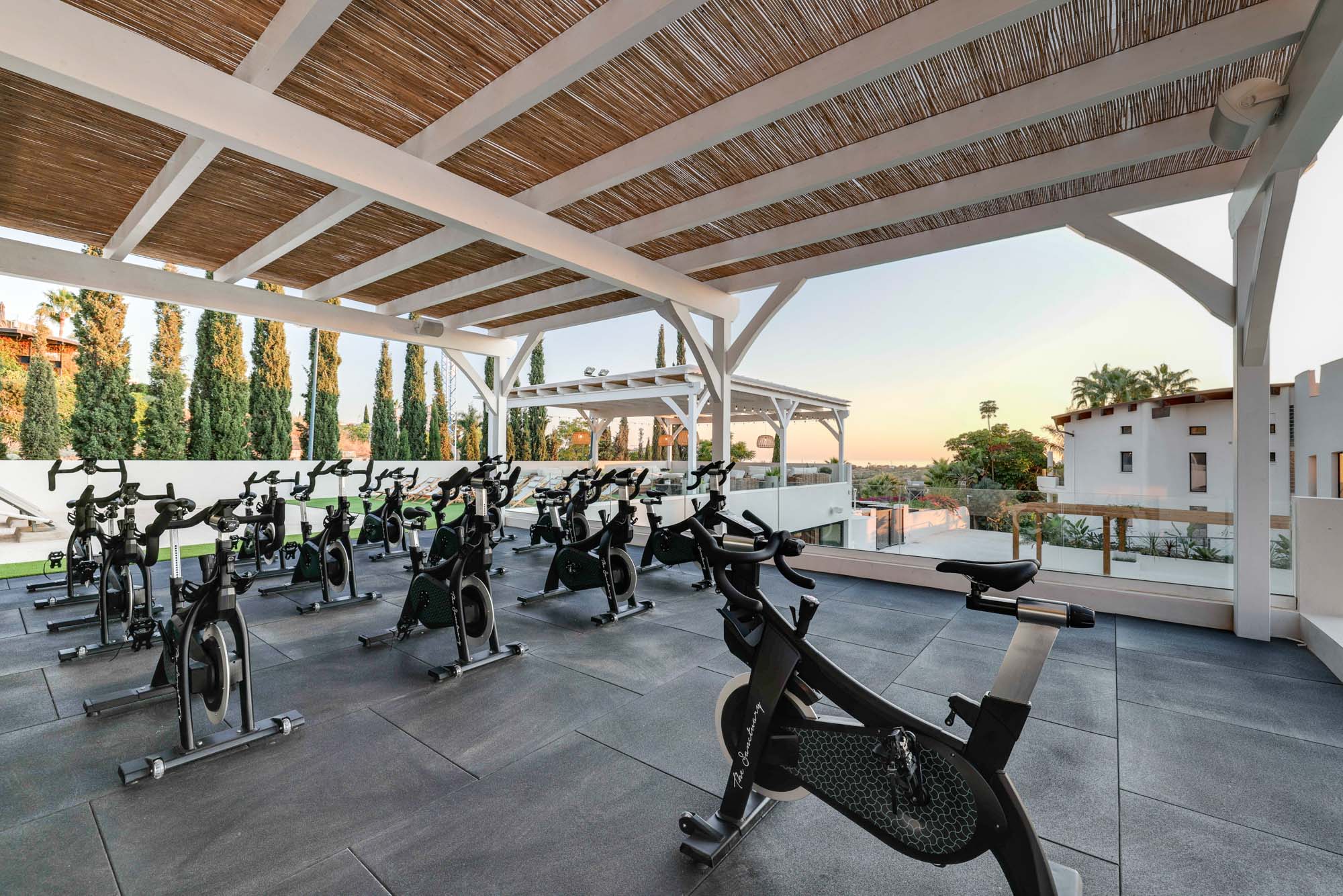 What really stood out for me, though, was the attention to wellness informing every detail of this impressive villa. The facilities are outstanding - with a fully serviced spa and professional-grade gym that rival many boutique retreats - but I also loved the smaller, more charming details, like the jasmine-wrapped pergola in the garden. I can easily picture a long breakfast table set up there in the morning, or a candlelit dinner as dusk falls. And the juice bar is such a clever touch; there’s nothing quite like a freshly blended smoothie after an early spin session or group yoga class on the lawn.