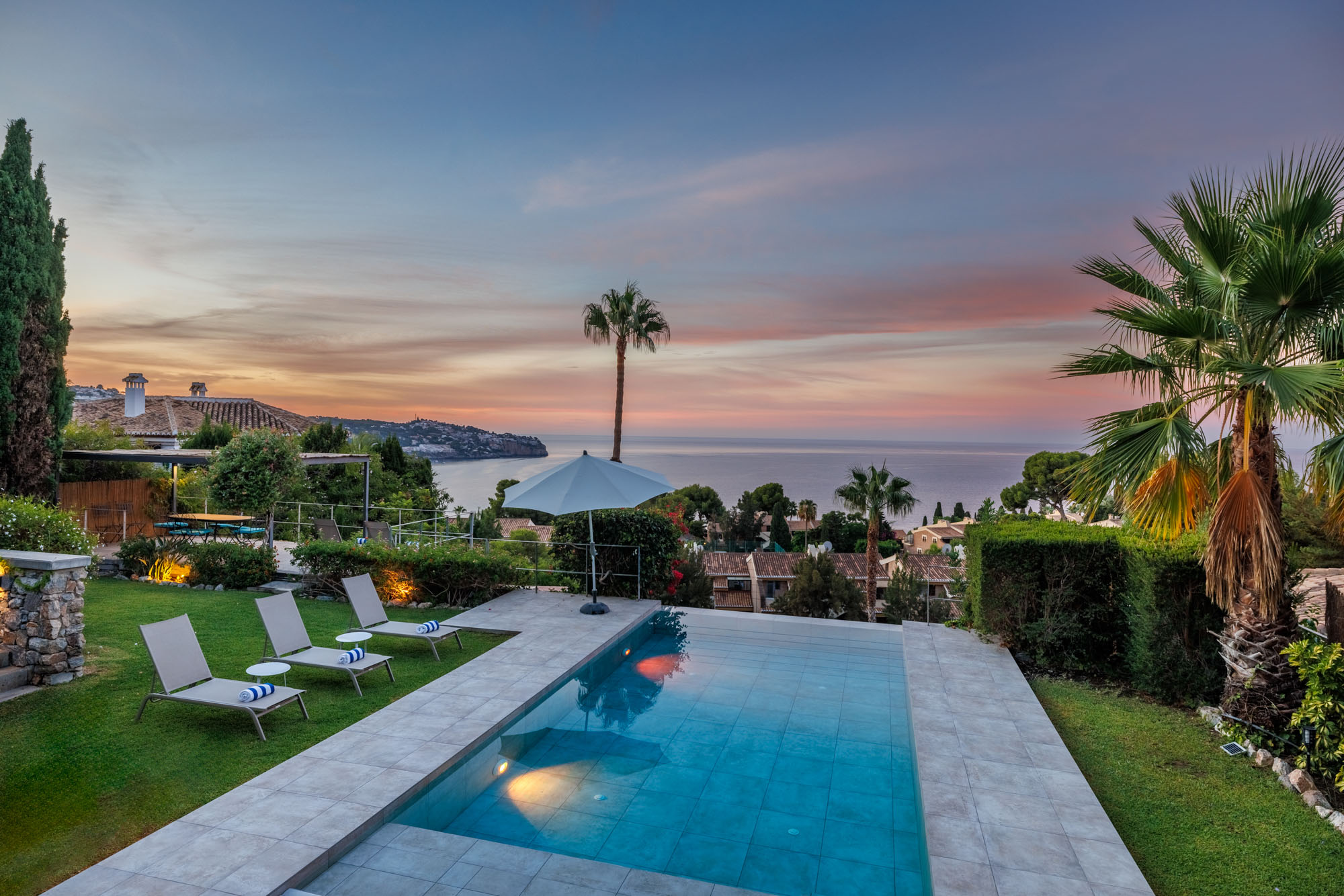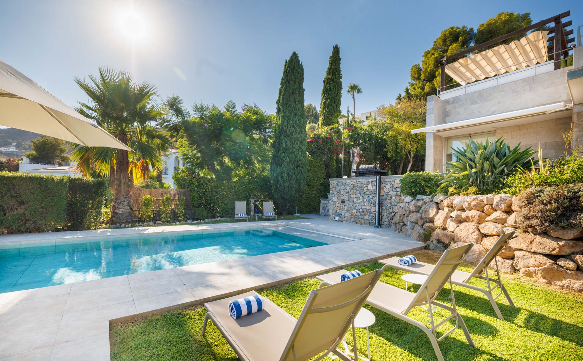 The gardens feel like a tropical paradise – overflowing with banana trees and exotic flowers- and the view of the beautiful La Herradura bay has to be one of the best in town. The roof terrace is also an excellent addition to the property – the perfect place to watch the sun go down from the Jacuzzi with a glass of bubbly in hand.