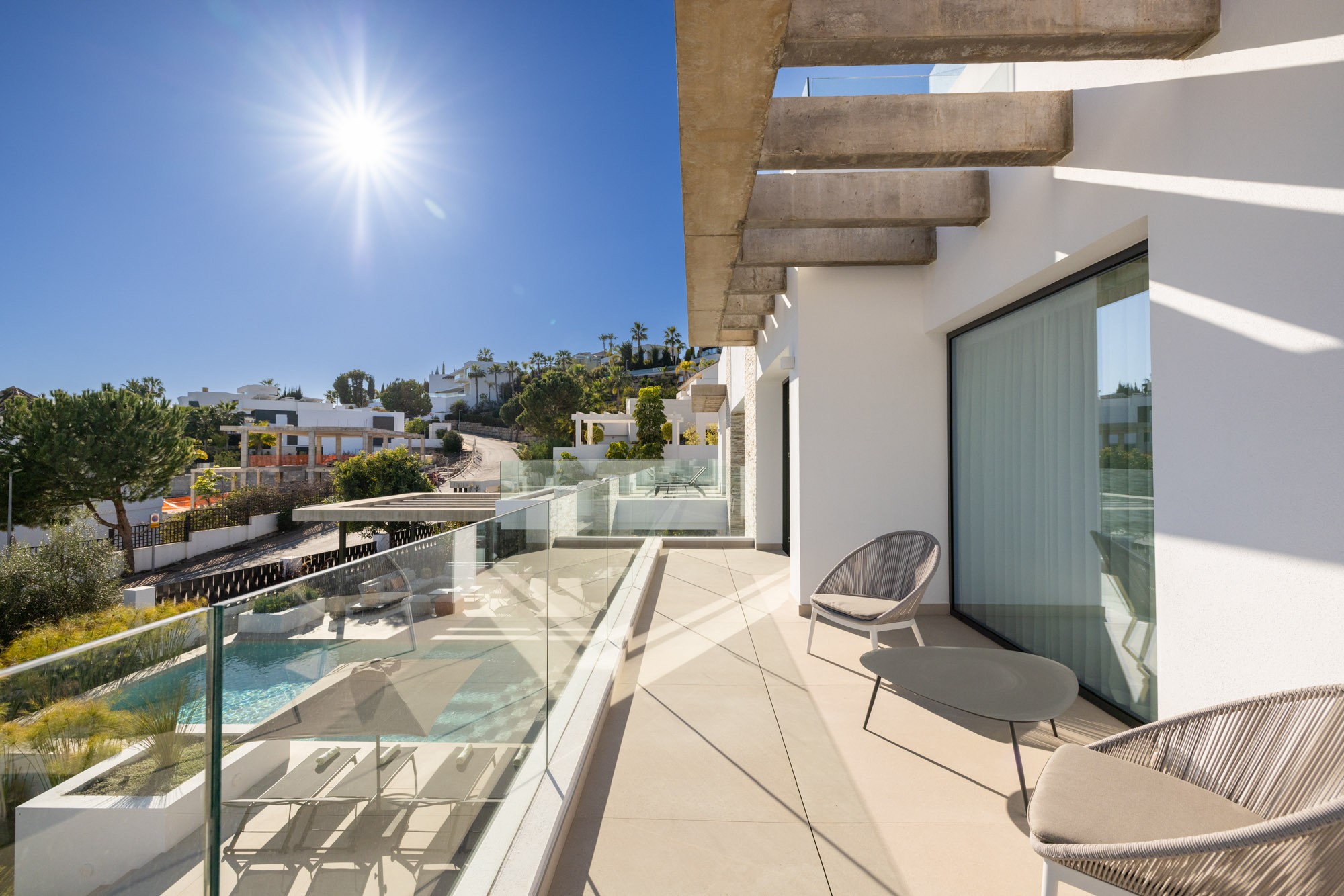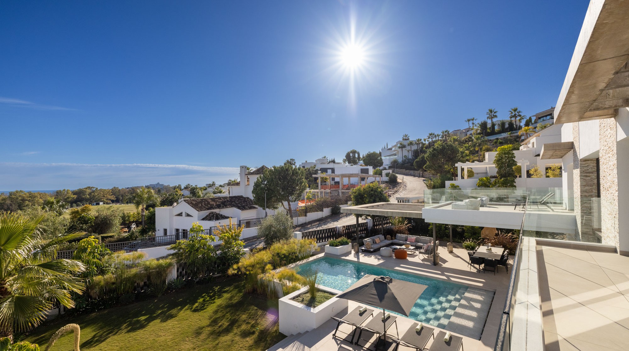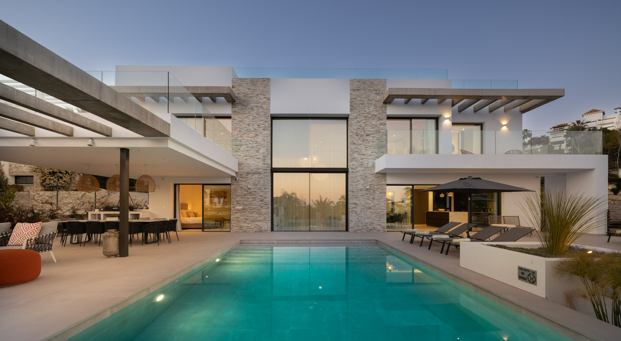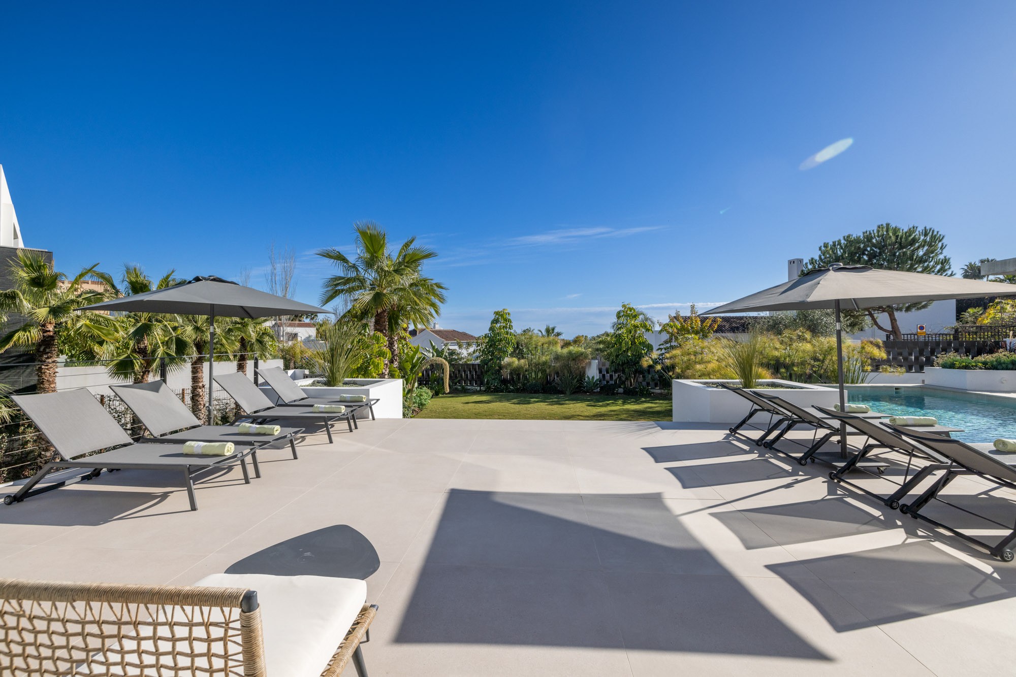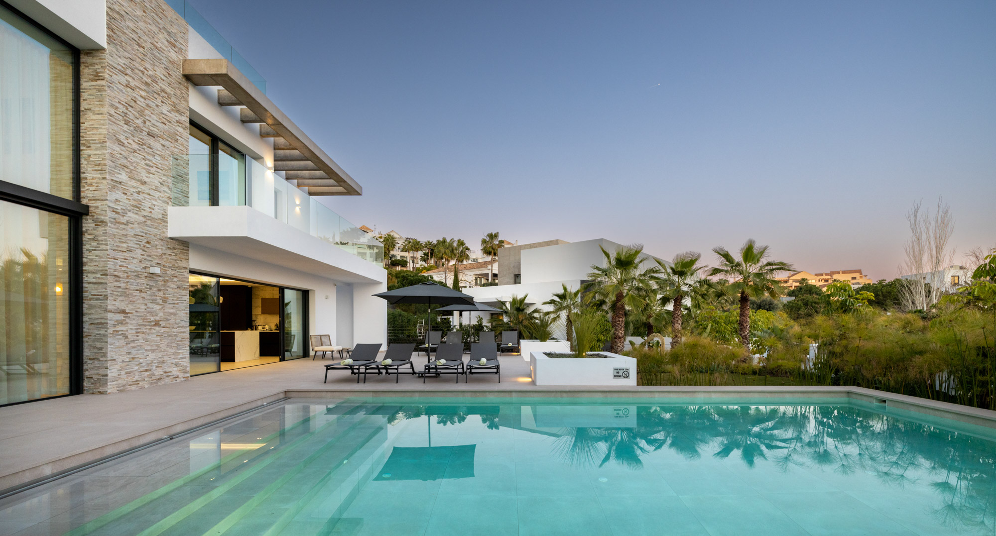 Additional living space is located outdoors on the terraces by the pool and on the huge roof terrace where you can relax watching the sunset with friends and family.