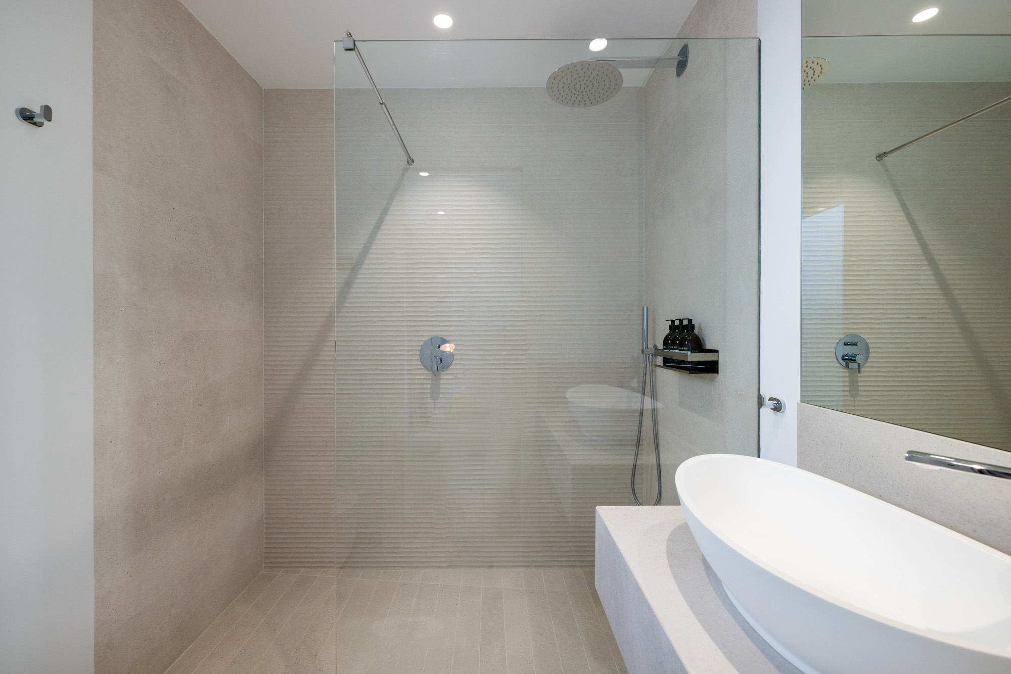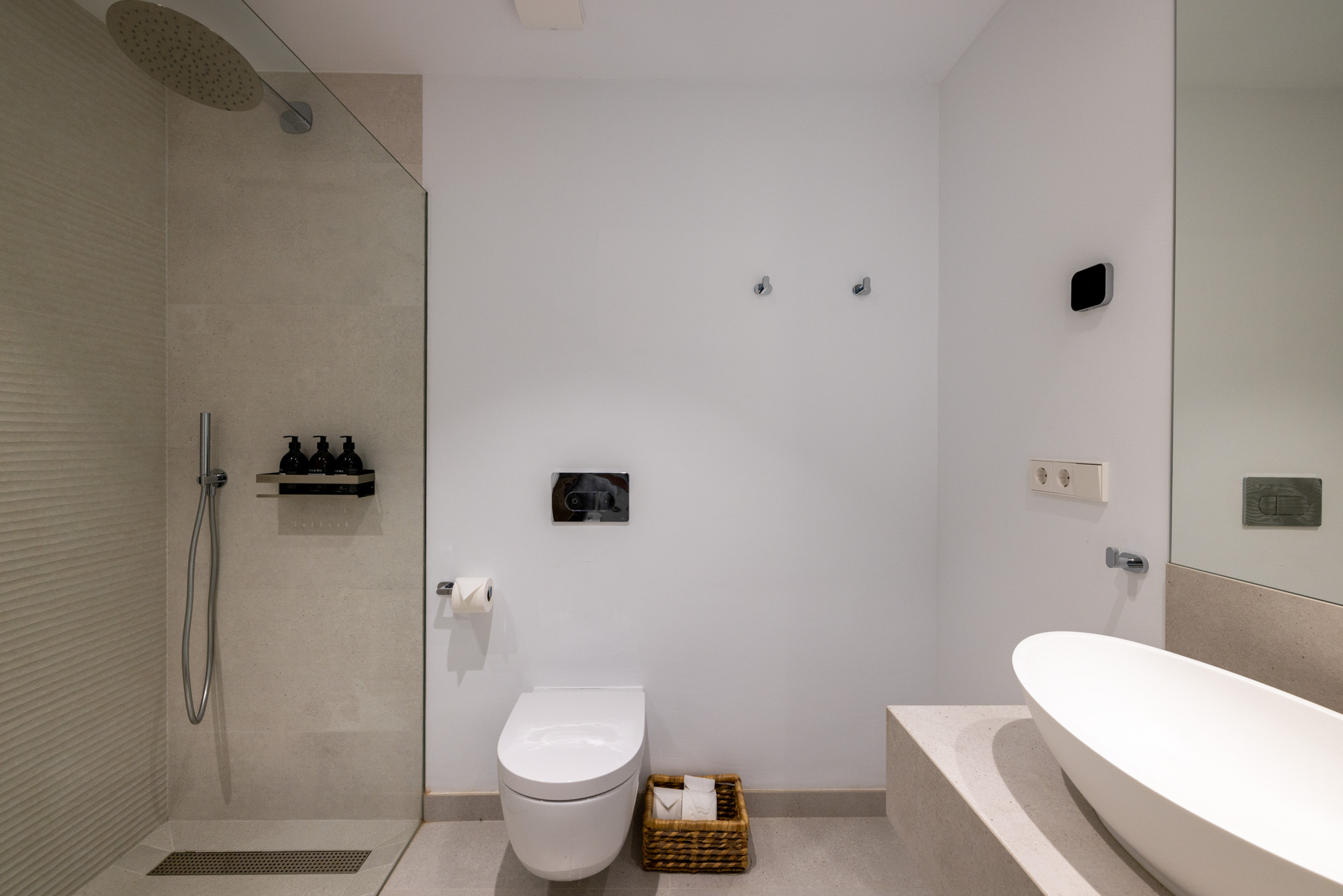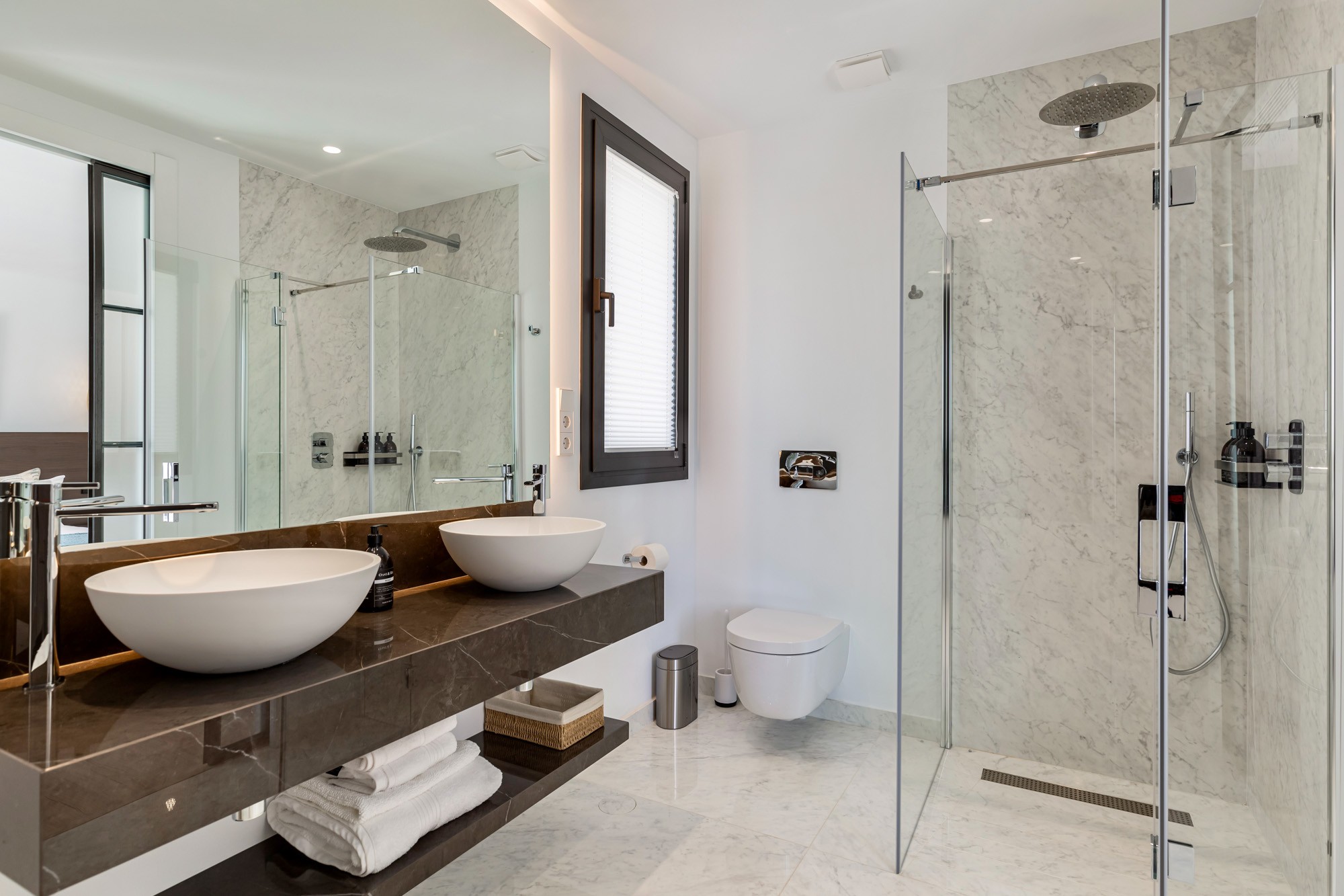 All of the bathrooms feature handmade marble units and Porcelanosa floors, and each bedroom is equipped with a hairdryer and British-made Oast & Rye amenities.