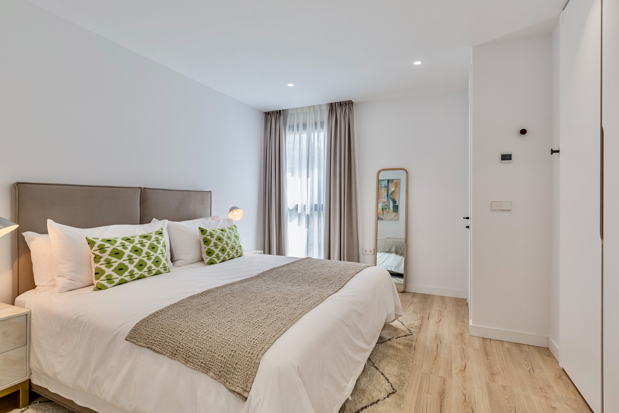 Guest Bedroom 4: Situated on the ground floor, this bedroom is wheelchair accessible with wider doors and offers direct access to the main terrace. Furnished with a king-size bed (160 cm) and a stand-up wardrobe (not fitted).