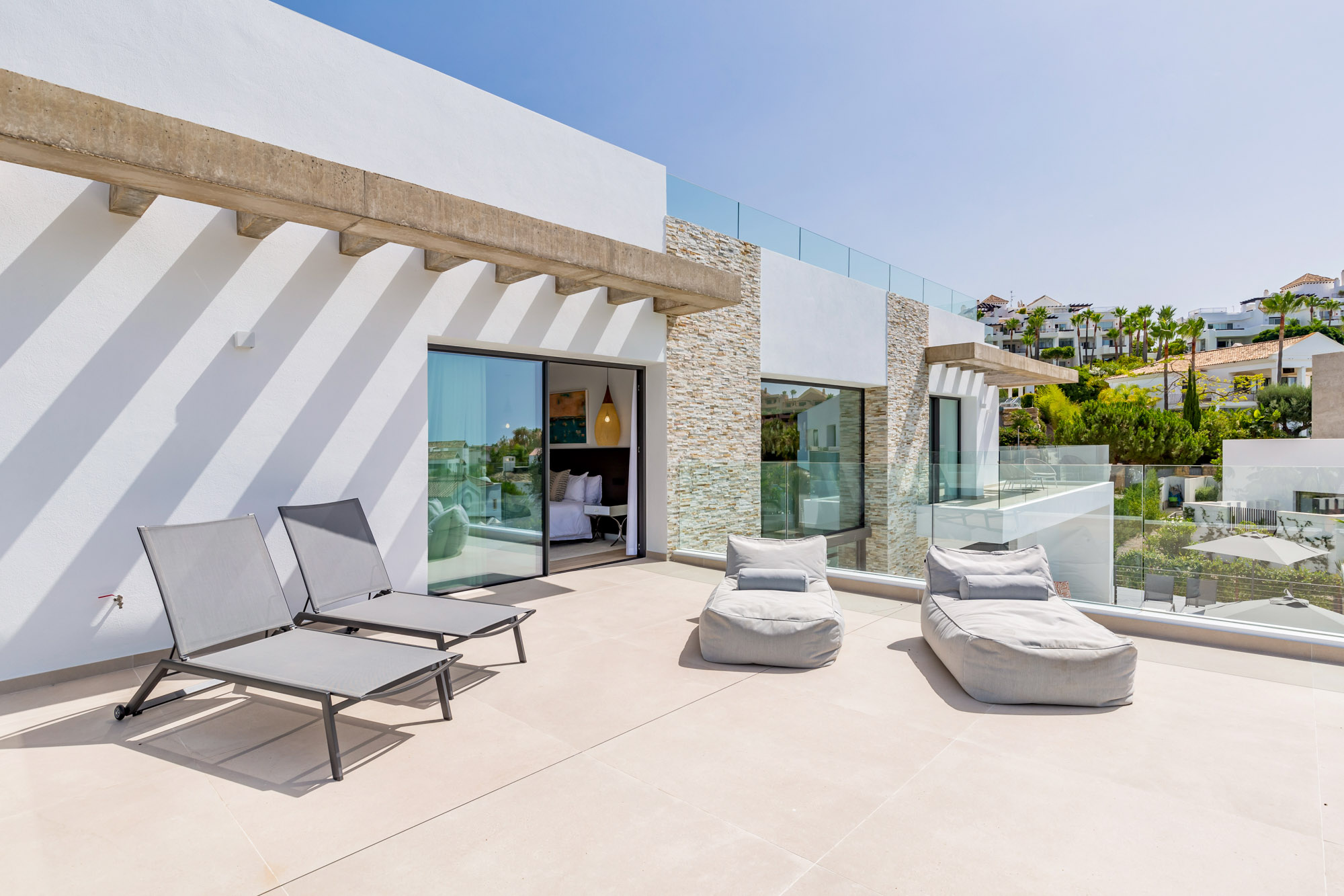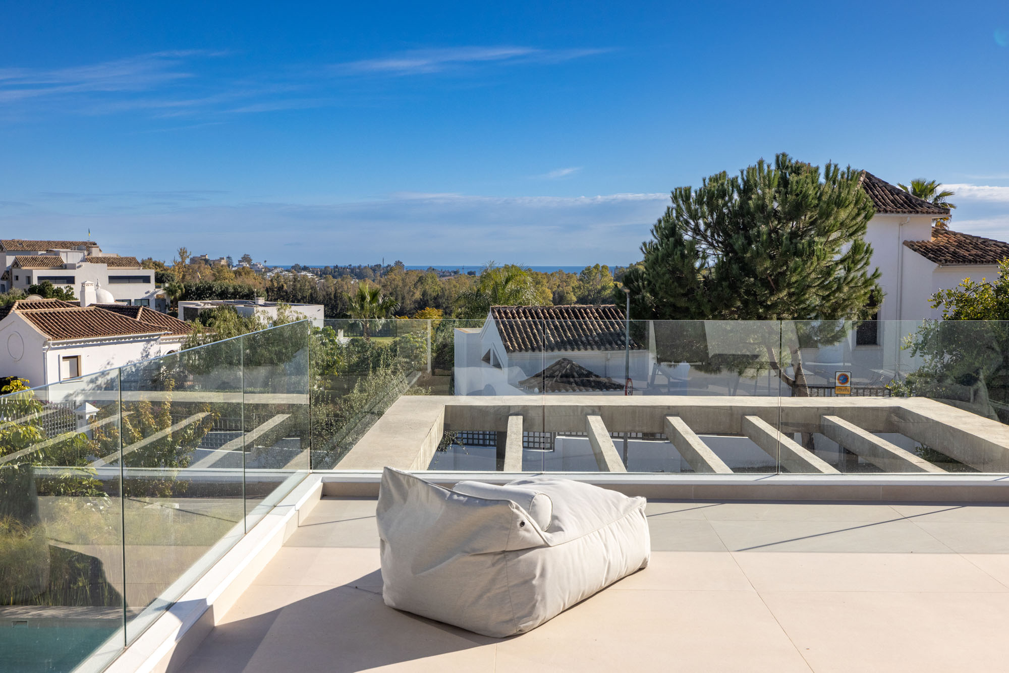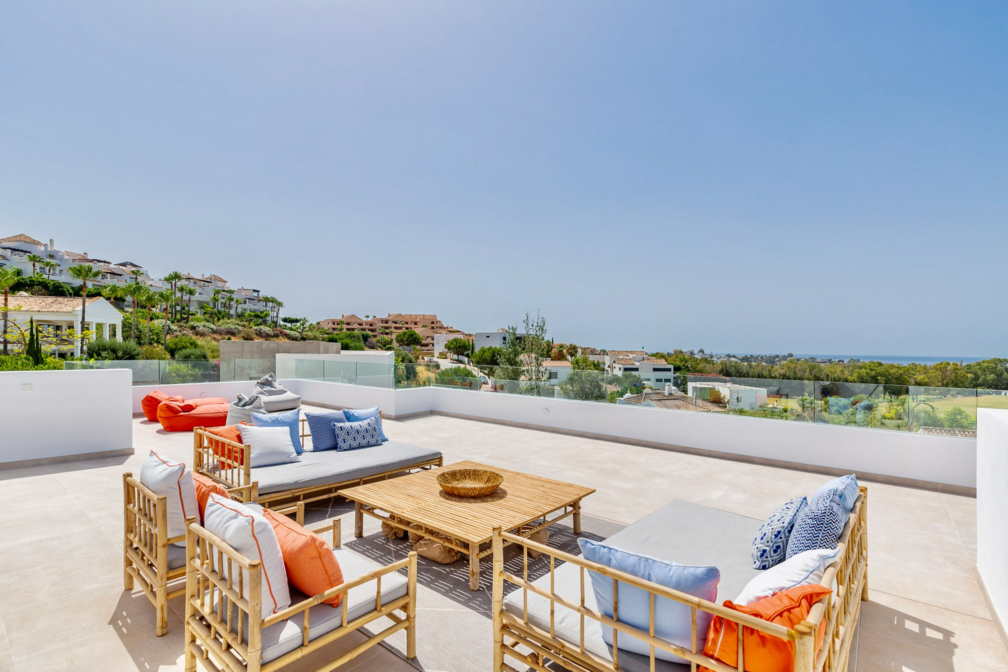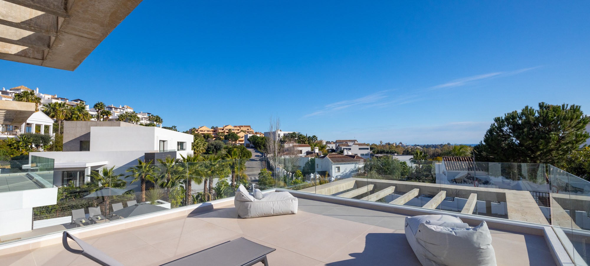 - Spacious roof terrace with 2 day beds, sofas and sea views