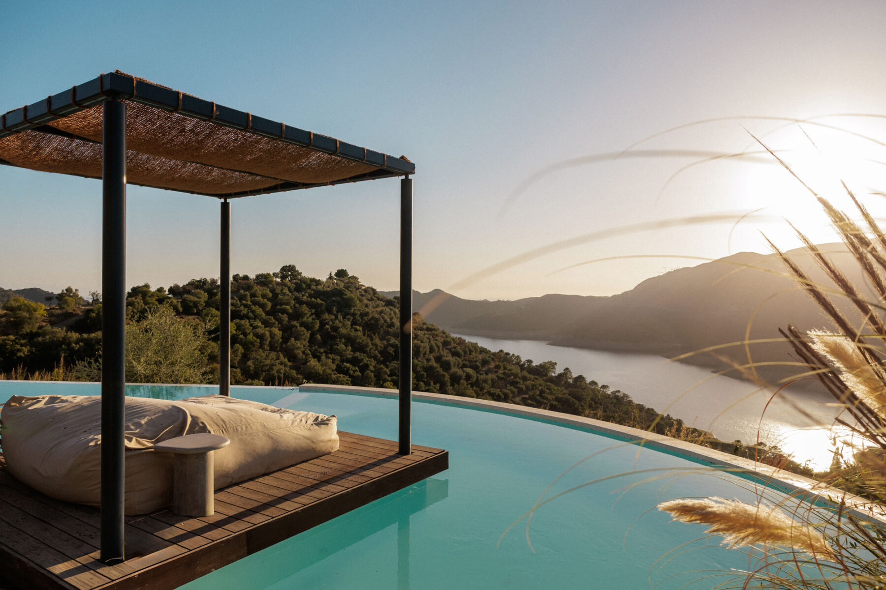 The outdoor terraces and infinity pool create multiple places to unwind throughout the day, whether lounging in the sun or relaxing on the daybed set over the water.