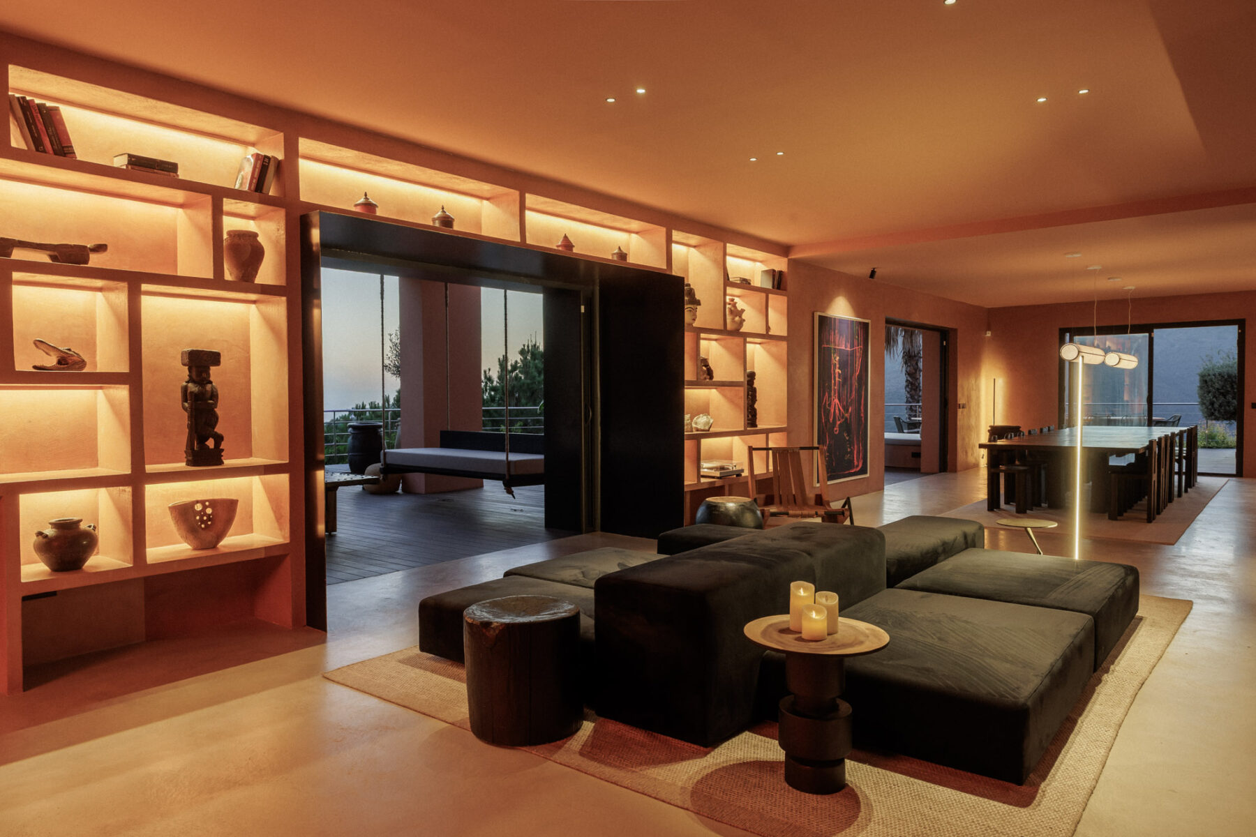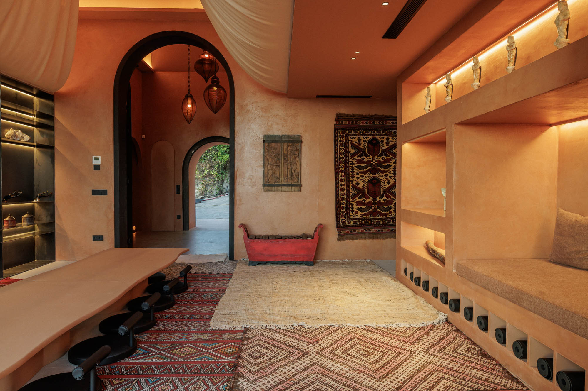 From relaxed living areas to the speakeasy-style club scattered with cushions, the interiors balance refined design with comfort and personality.